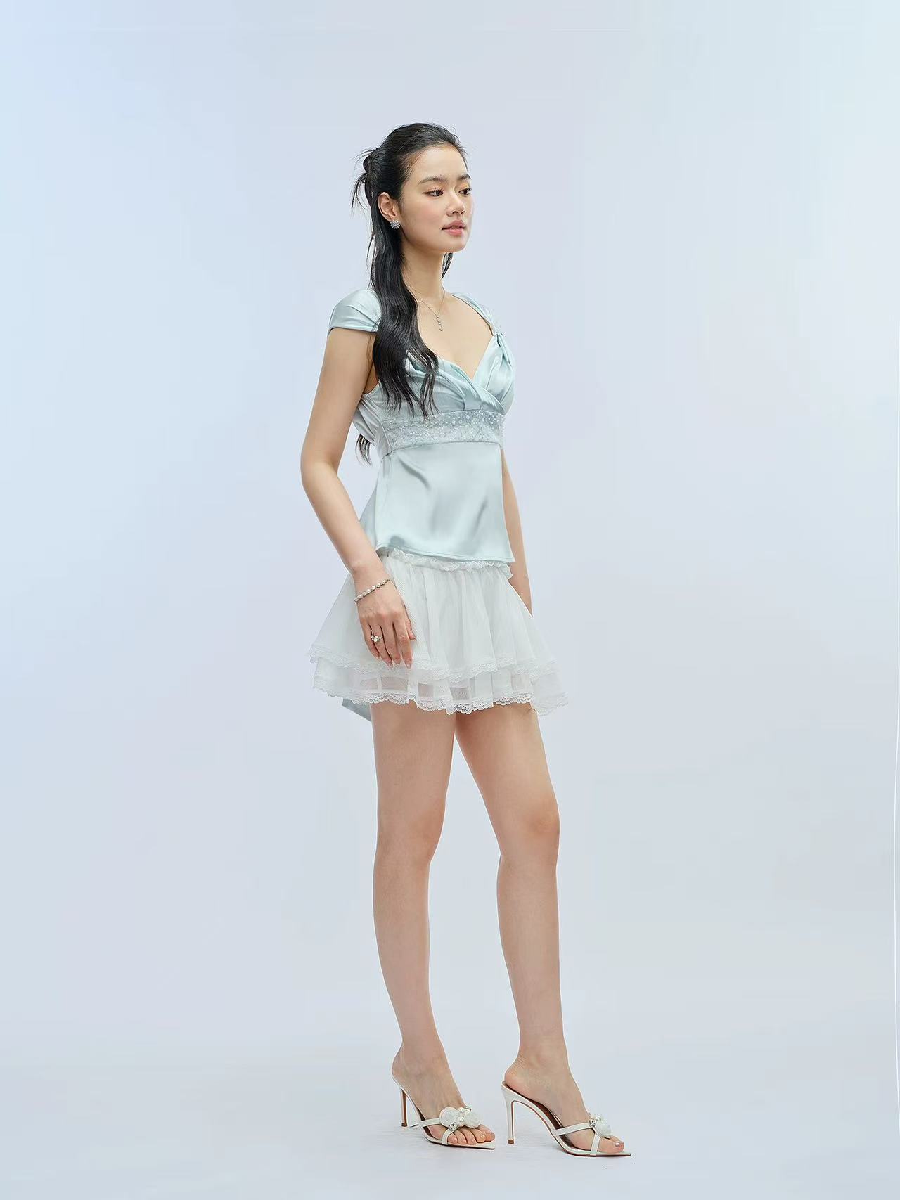 안개 블루 치엥 레이스 슬립 망사 치마 드레스 요정 가스 발레 바람 품격 하늘색