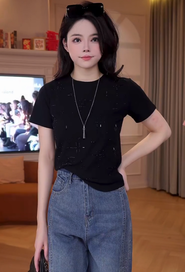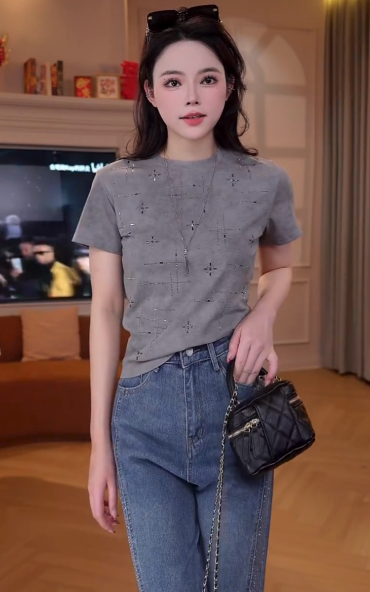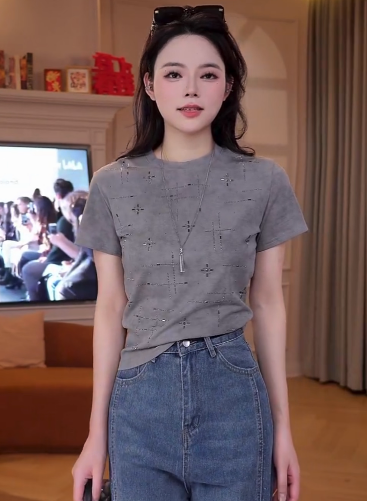 디자인 센스 무거운 작업 핫픽스 반팔 티셔츠 여성 2026 년 여름 새로운 패션 다용도 캐주얼 슬림해 보이는 맨위 여성