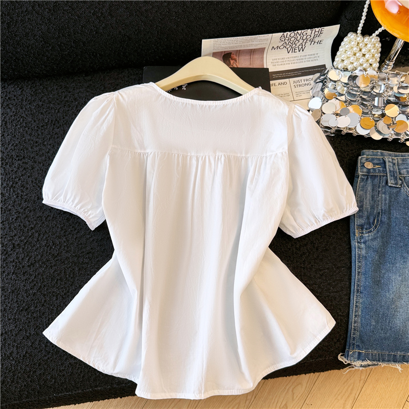 프랑스식 프릴 페이크 레이어드 여성 셔츠 여름 2026 새로운 프릴 연령 감소 루즈핏 Feifei 소매 인형 셔츠