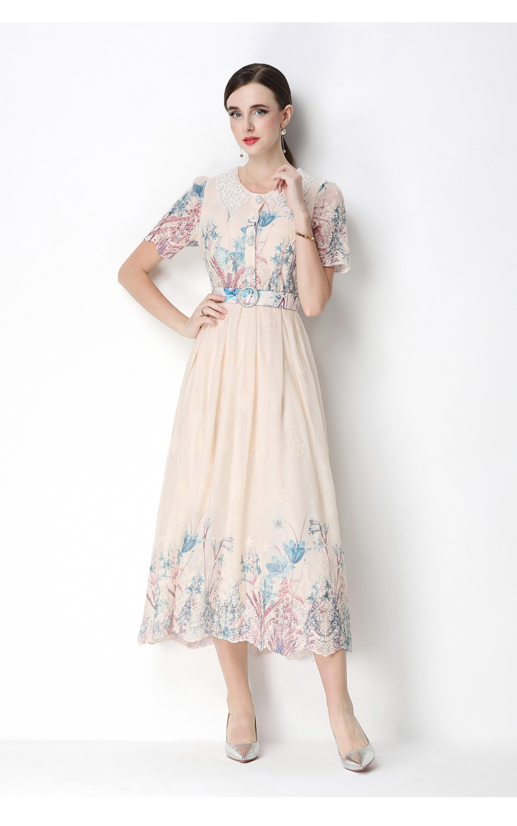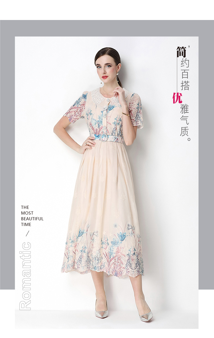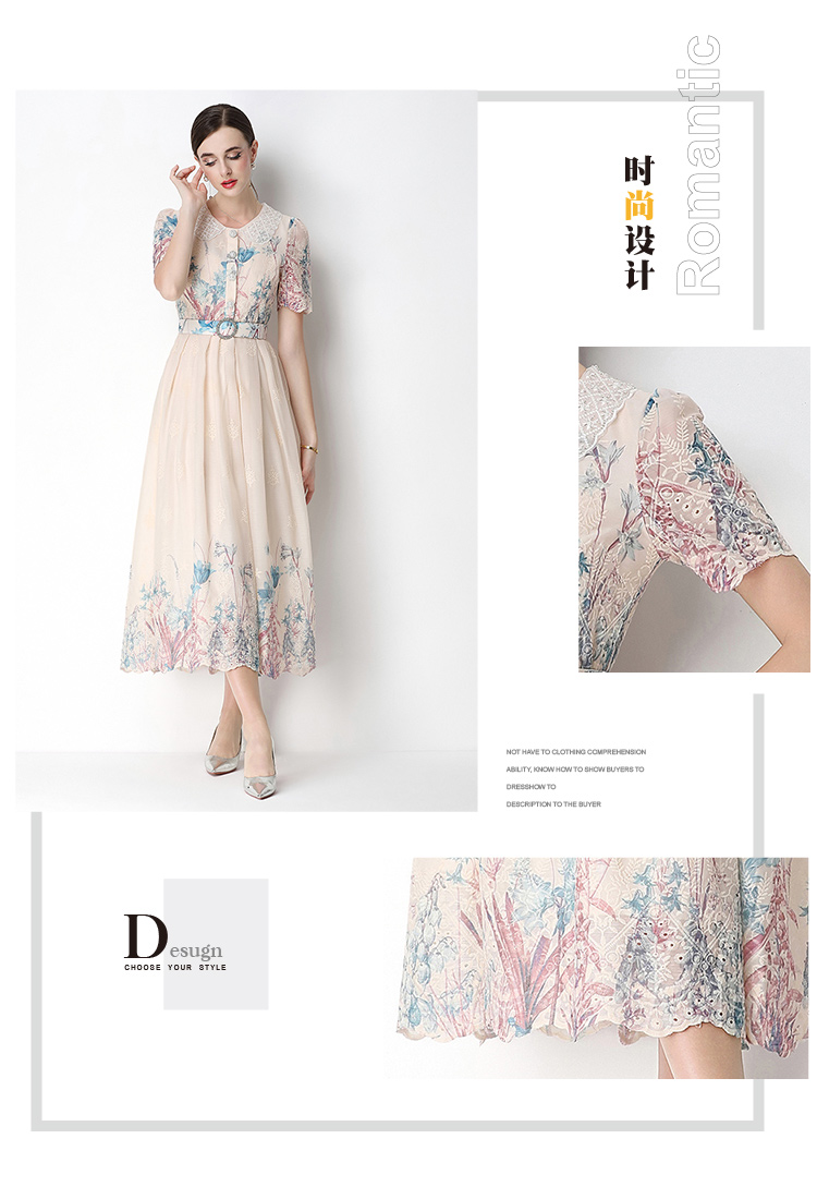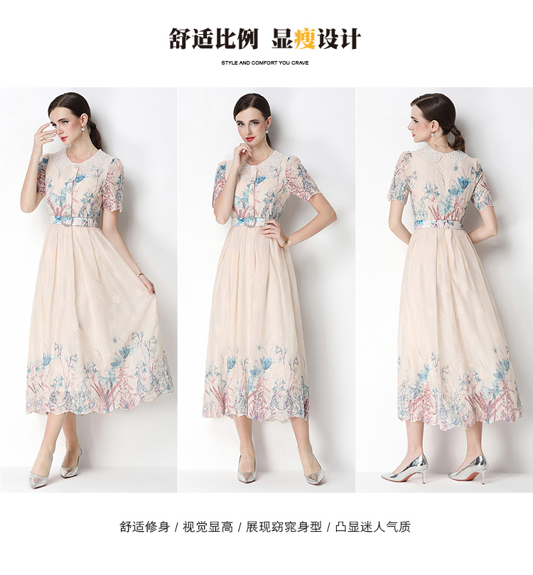 실사 오리지널 반팔 패션 슬림해 보이는 자수 프린트 포지셔닝 롱 코트 드레스