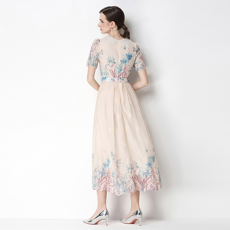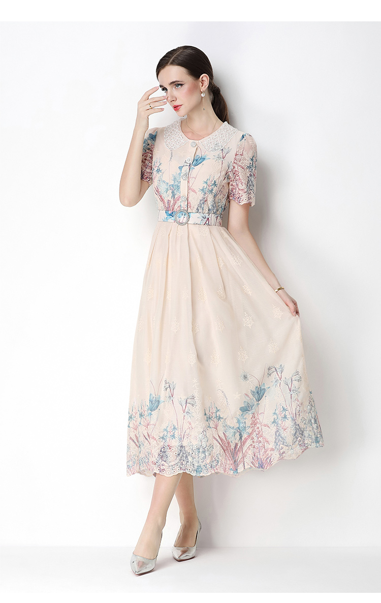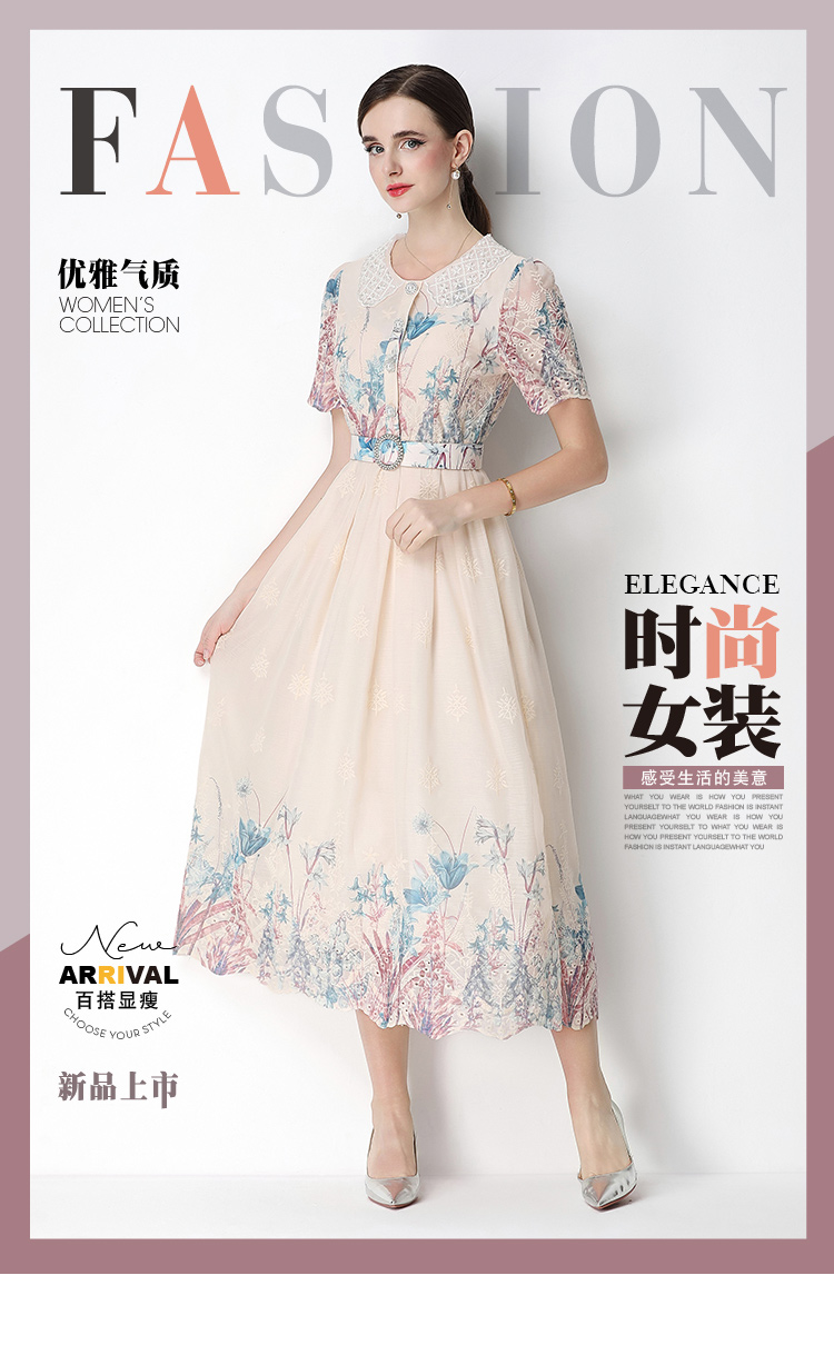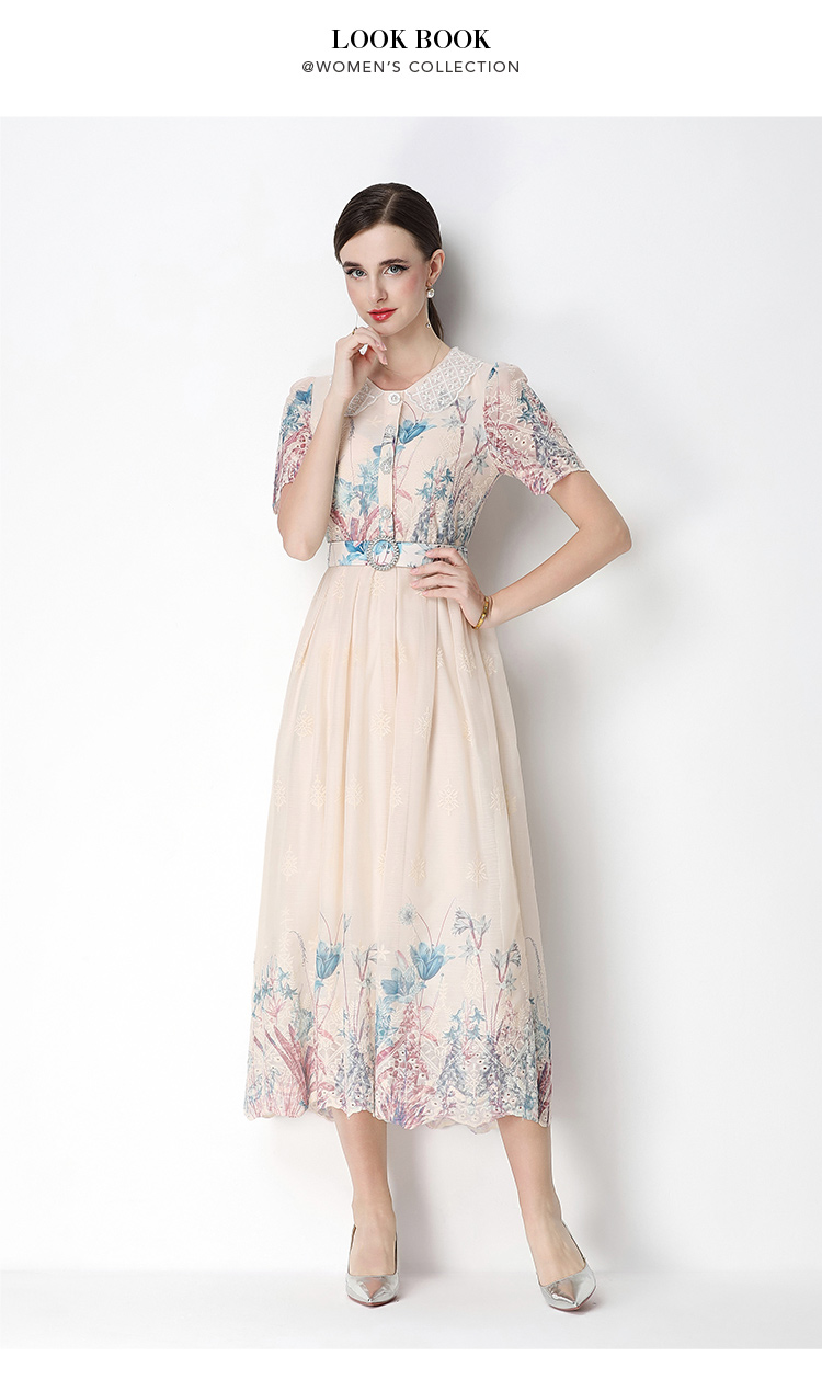 실사 오리지널 반팔 패션 슬림해 보이는 자수 프린트 포지셔닝 롱 코트 드레스