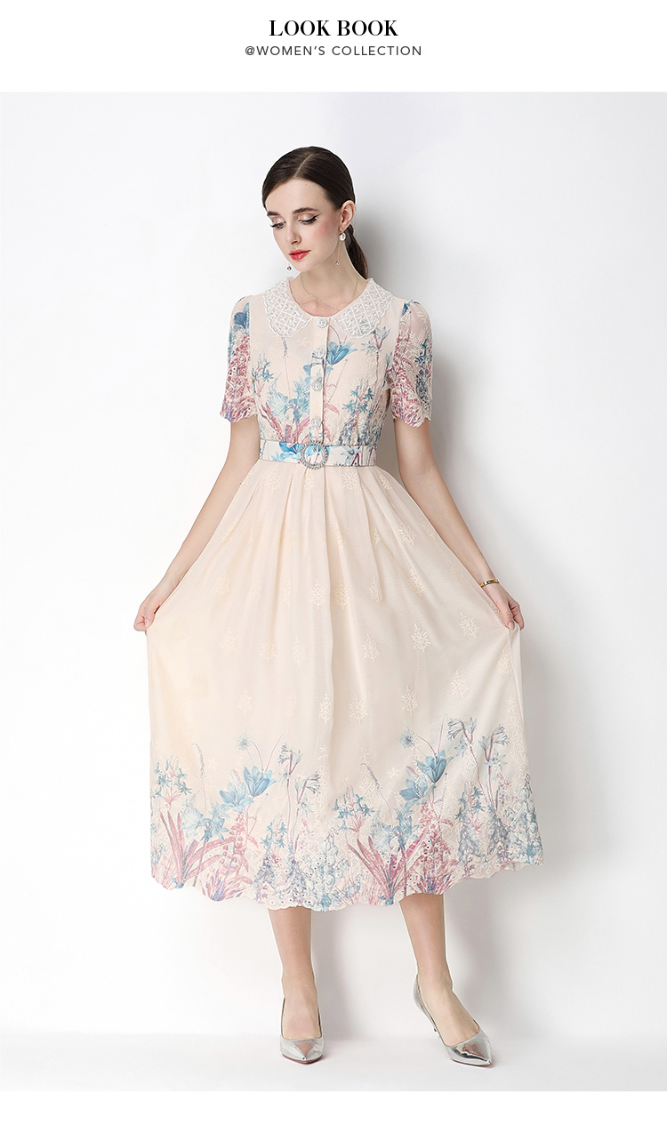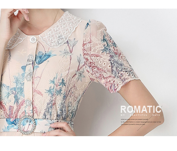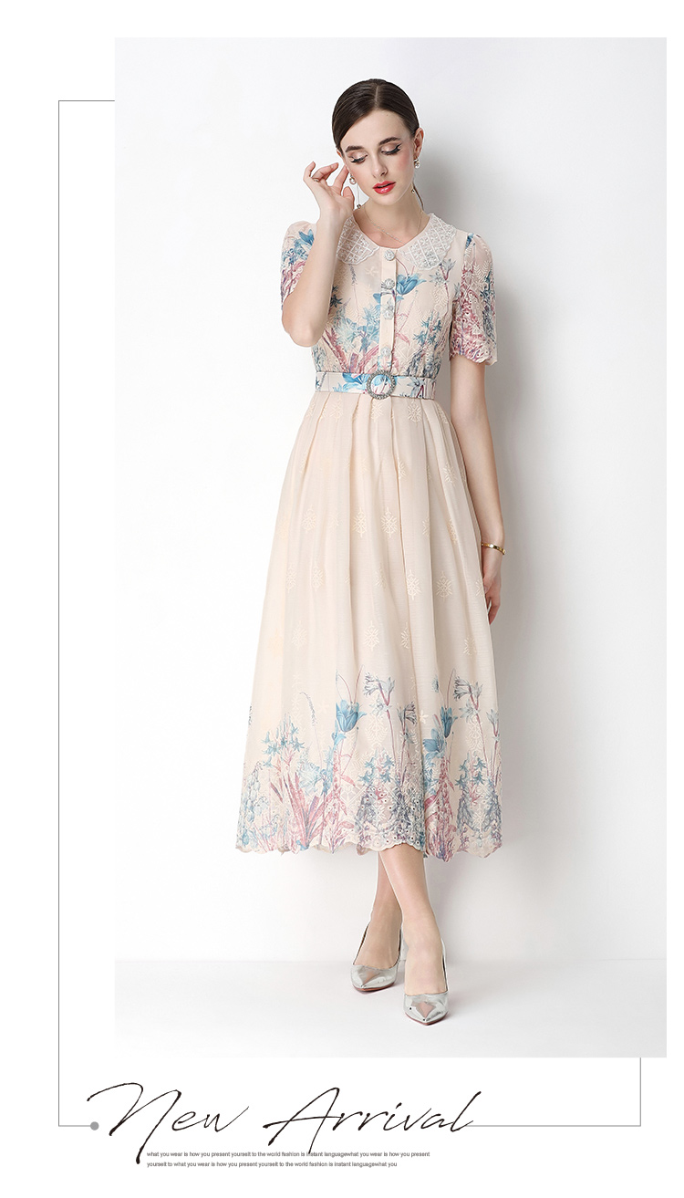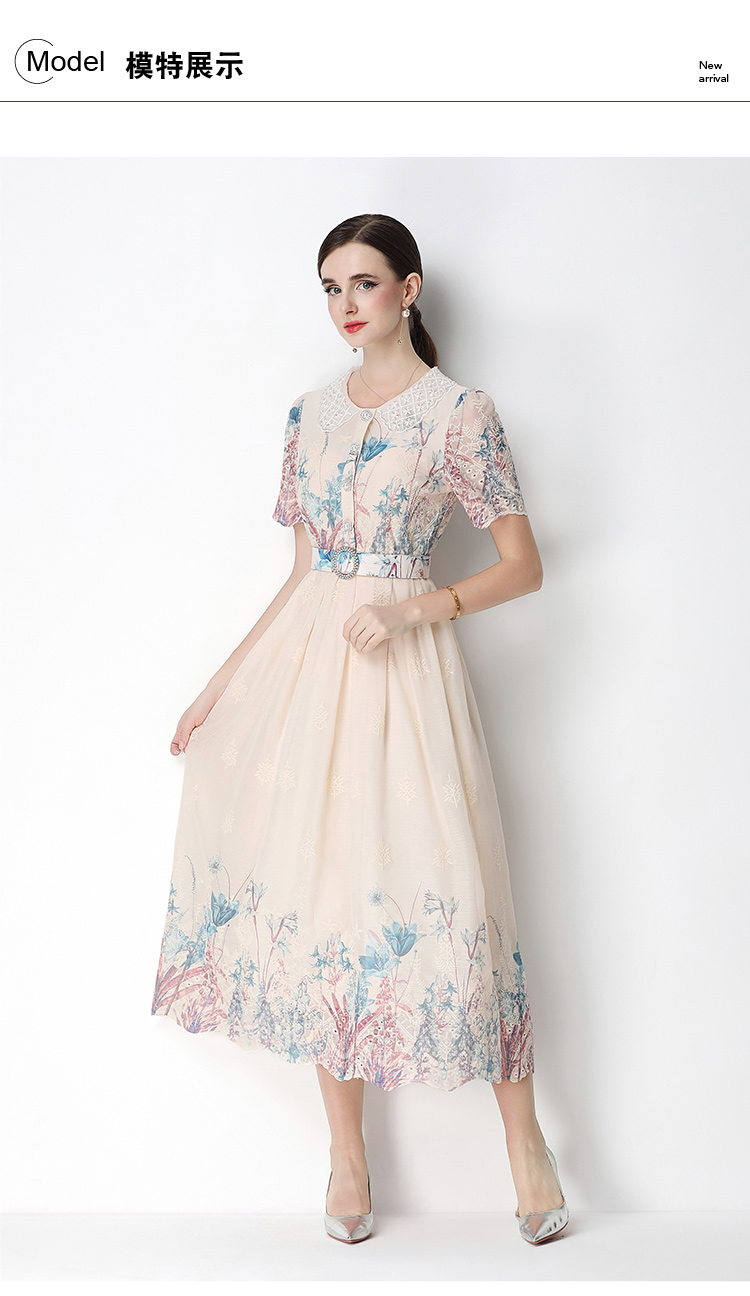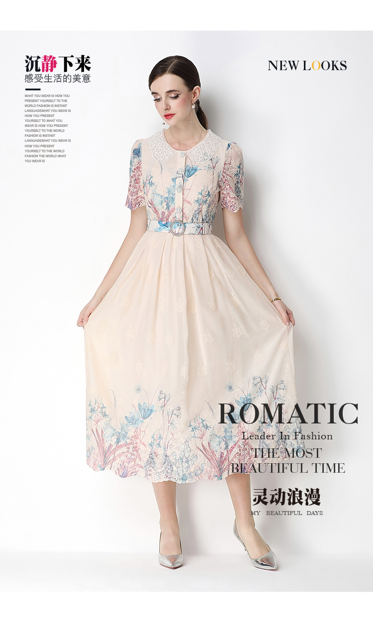 실사 오리지널 빛 럭셔리 고급 센스 패션 슬림해 보이는 자수 포지셔닝 프린트 드레스