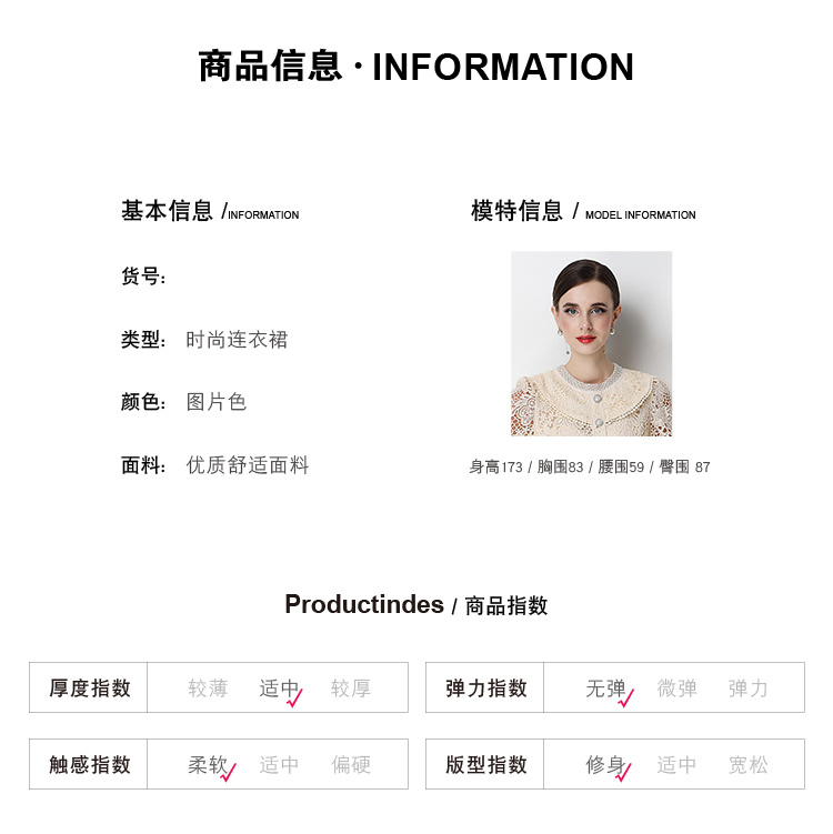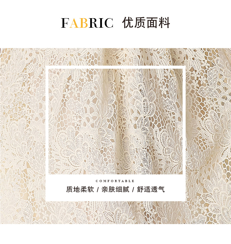 실사 오리지널 V넥 패션 슬림해 보이는 홀로우 아웃 물 용해 레이스 포지셔닝 중간 길이 드레스