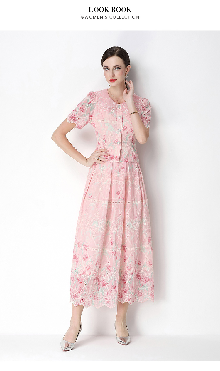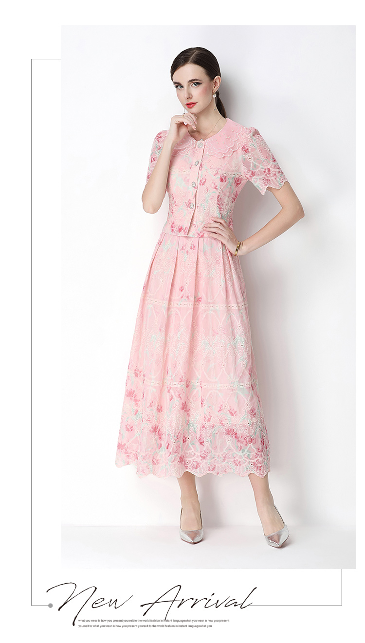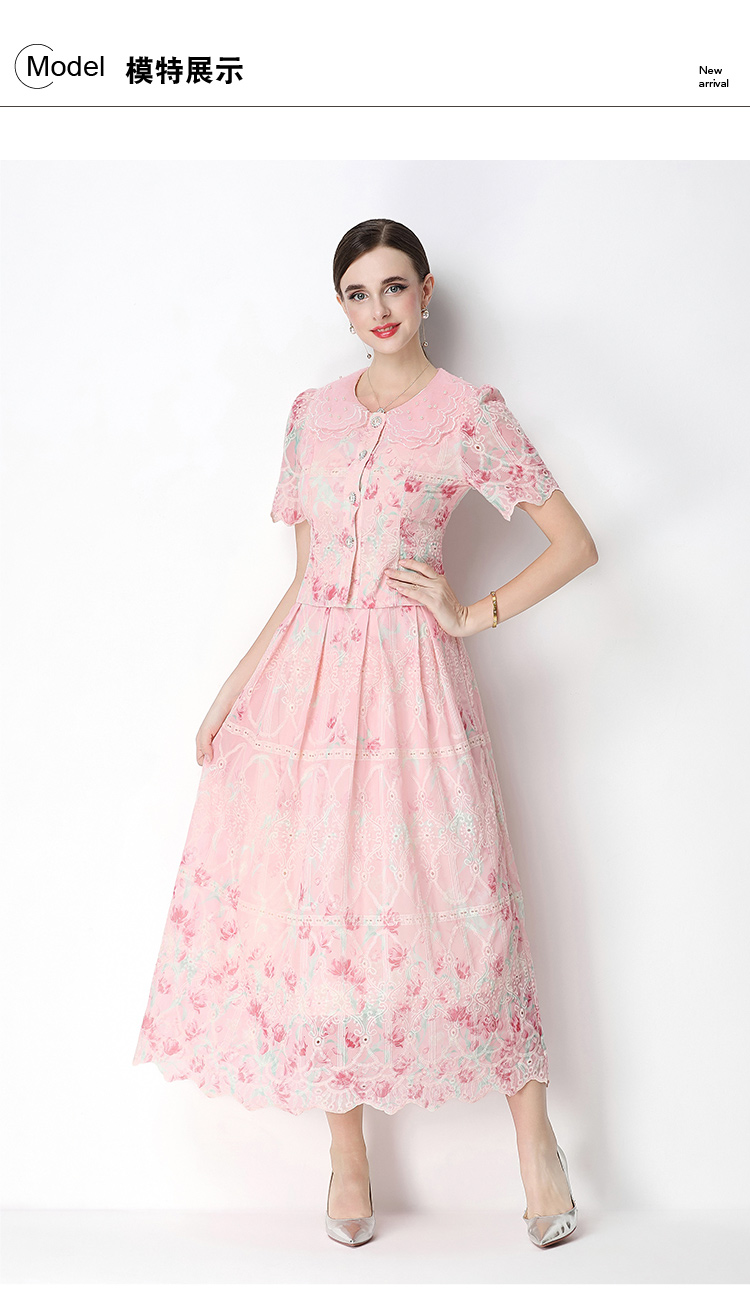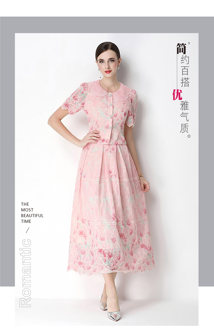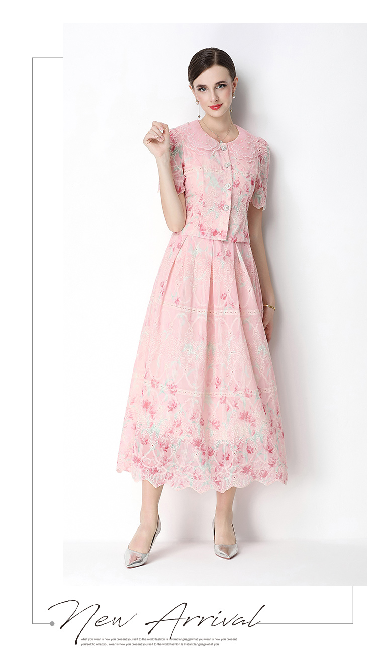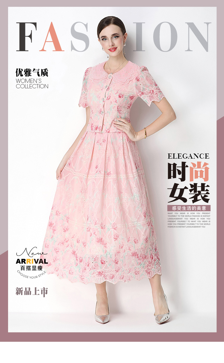 실사 오리지널 반팔 패션 슬림해 보이는 자수 프린트 포지셔닝 롱 코트 드레스
