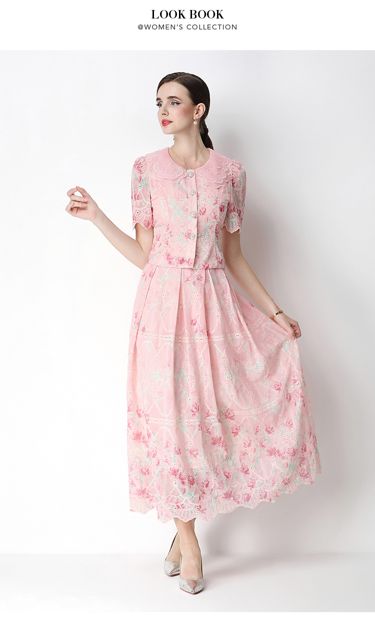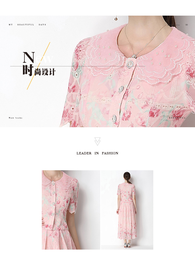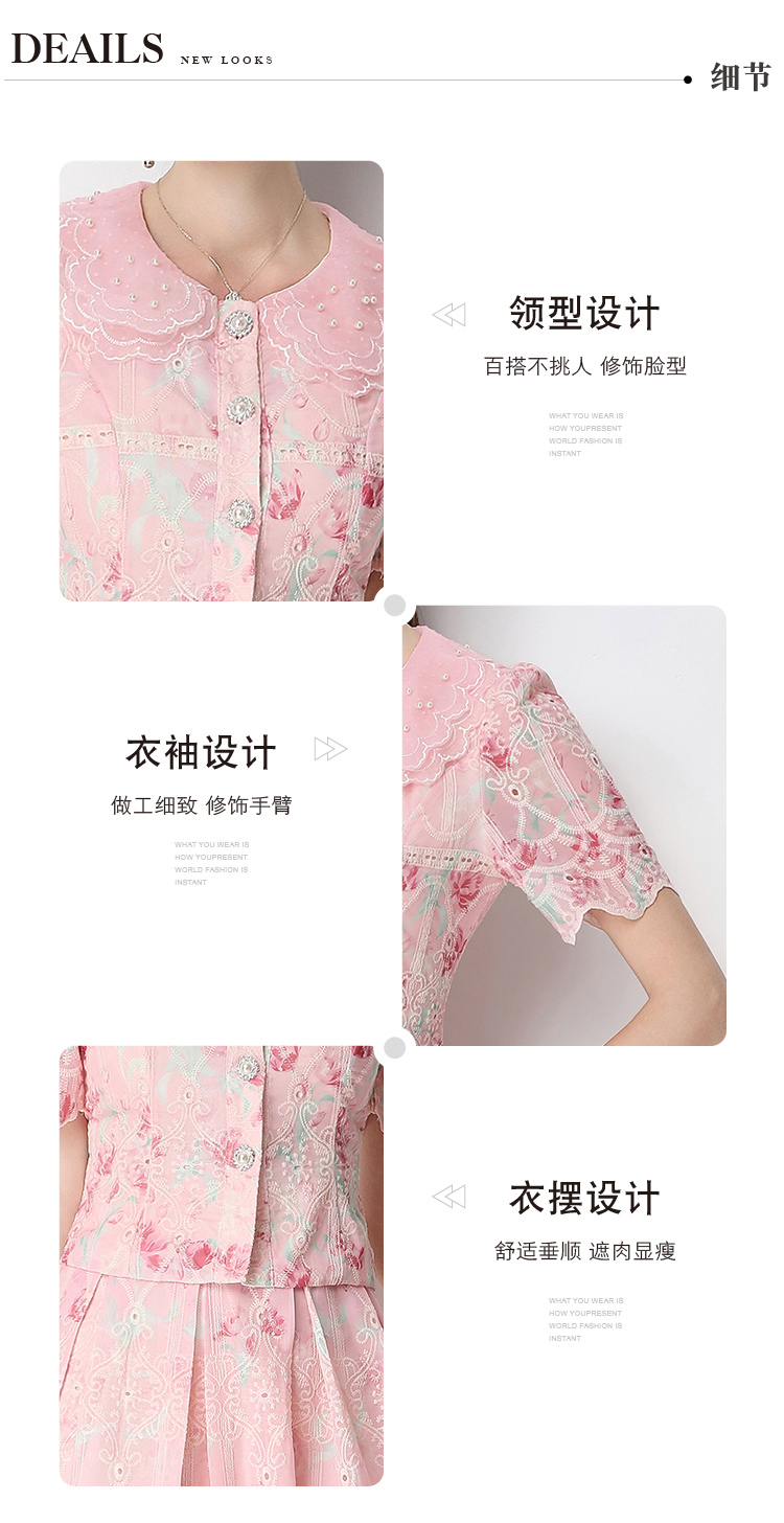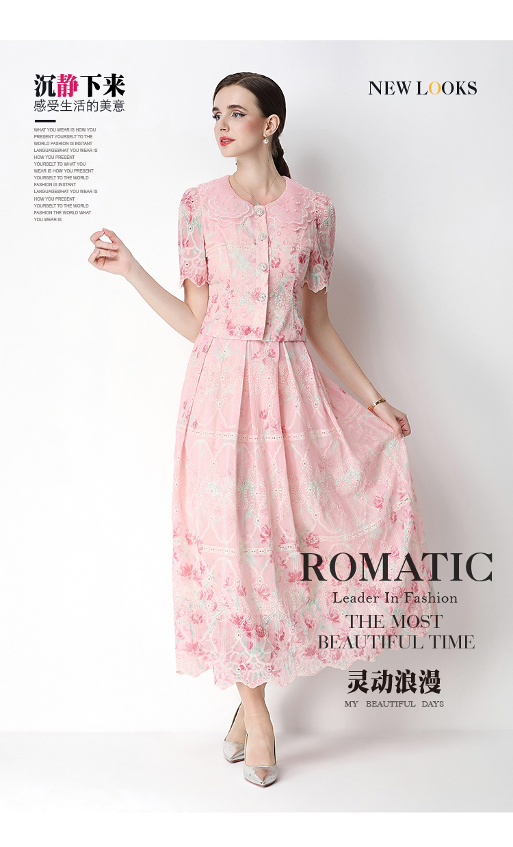 실사 오리지널 빛 럭셔리 고급 센스 패션 슬림해 보이는 자수 포지셔닝 프린트 세트 드레스