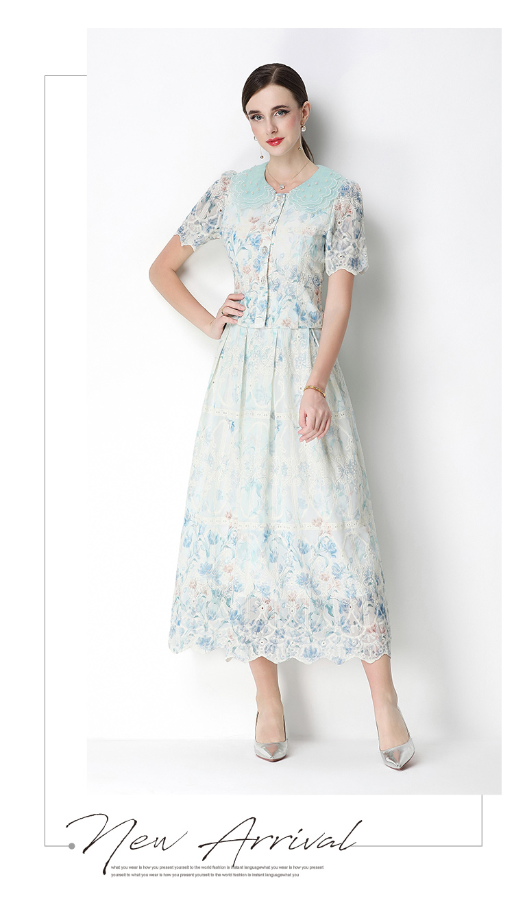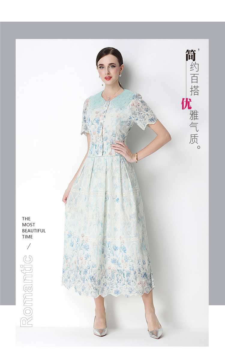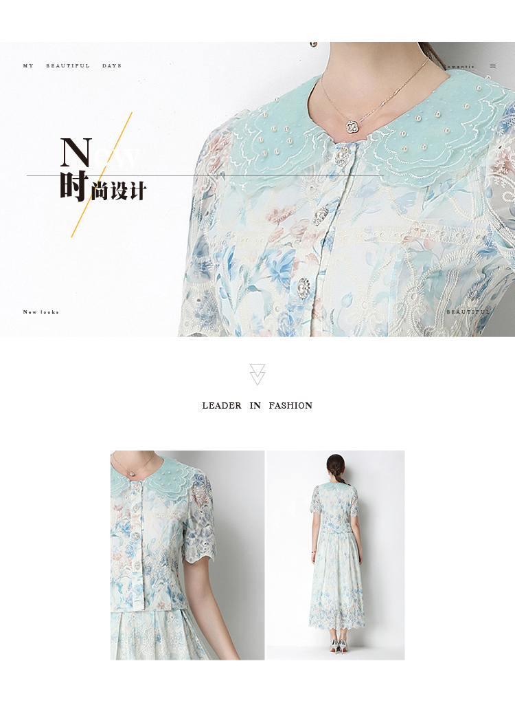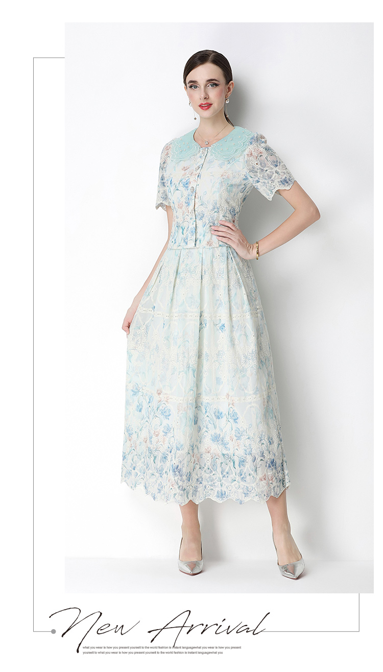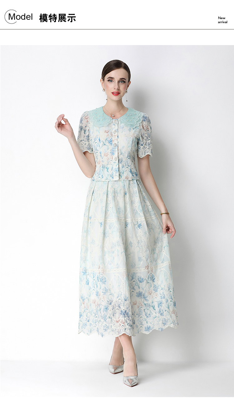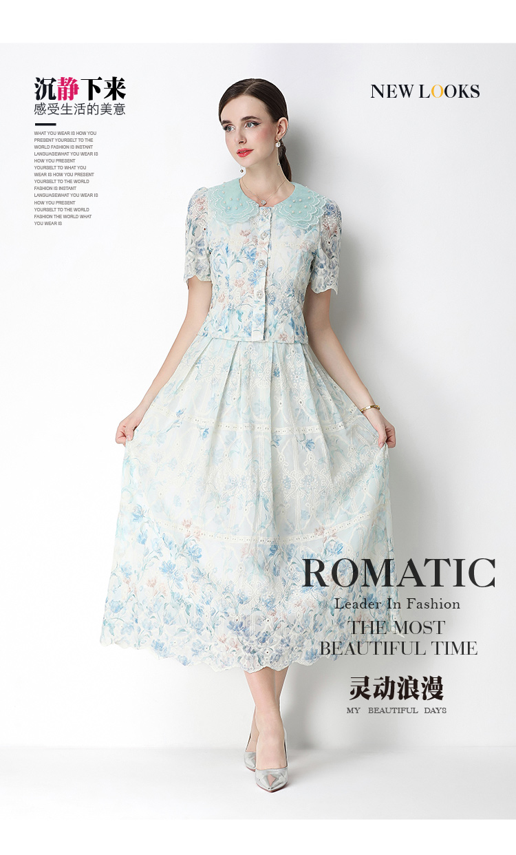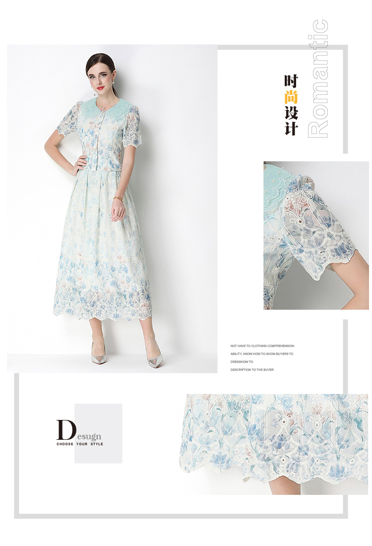 실사 오리지널 빛 럭셔리 고급 센스 패션 슬림해 보이는 자수 포지셔닝 프린트 세트 드레스