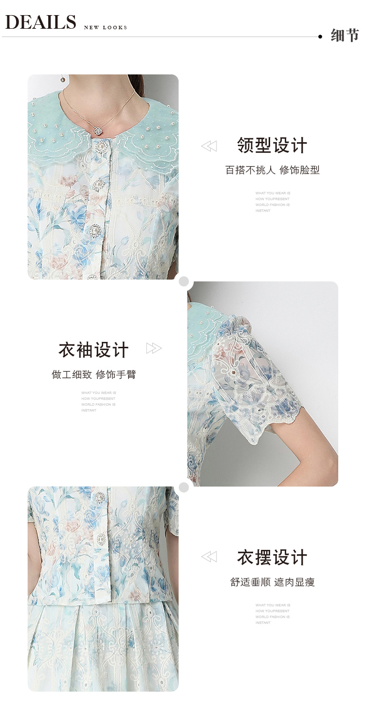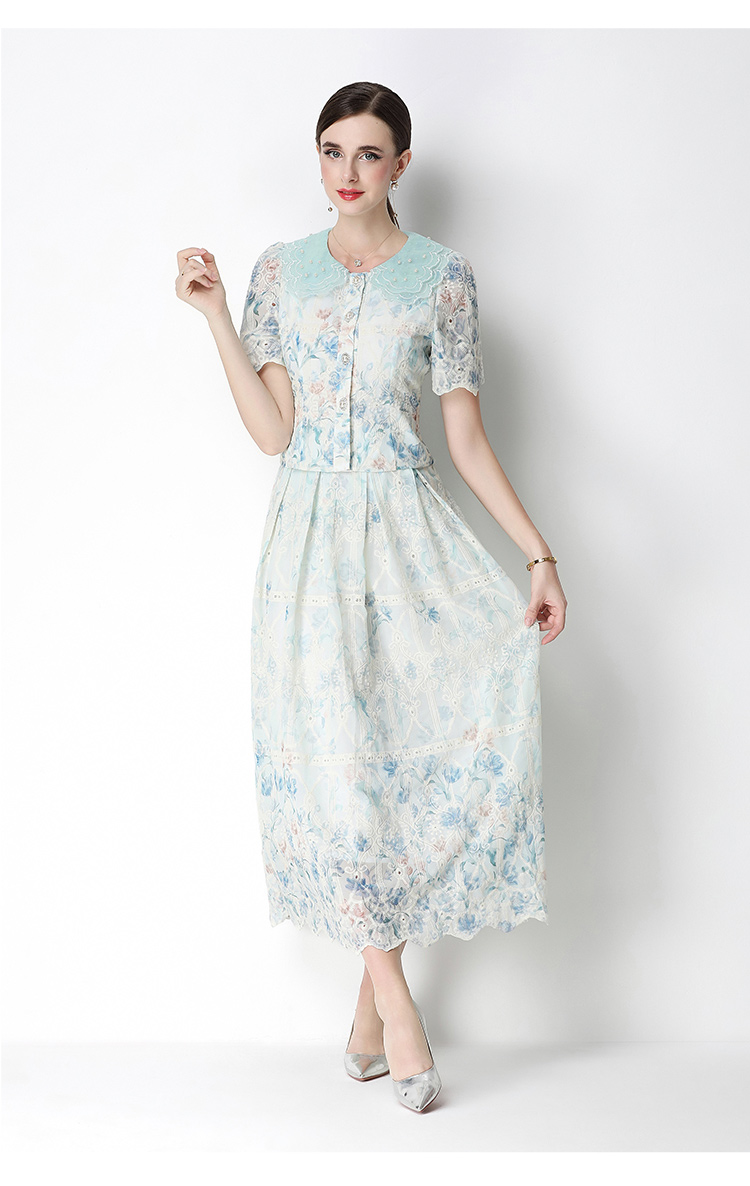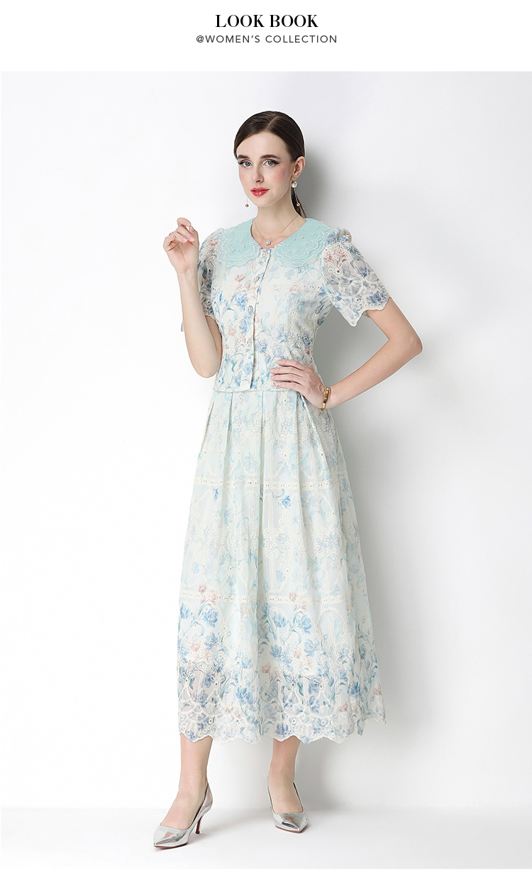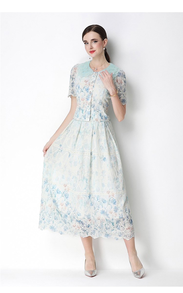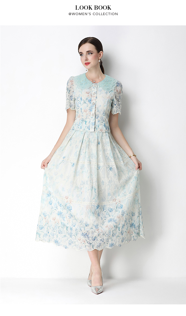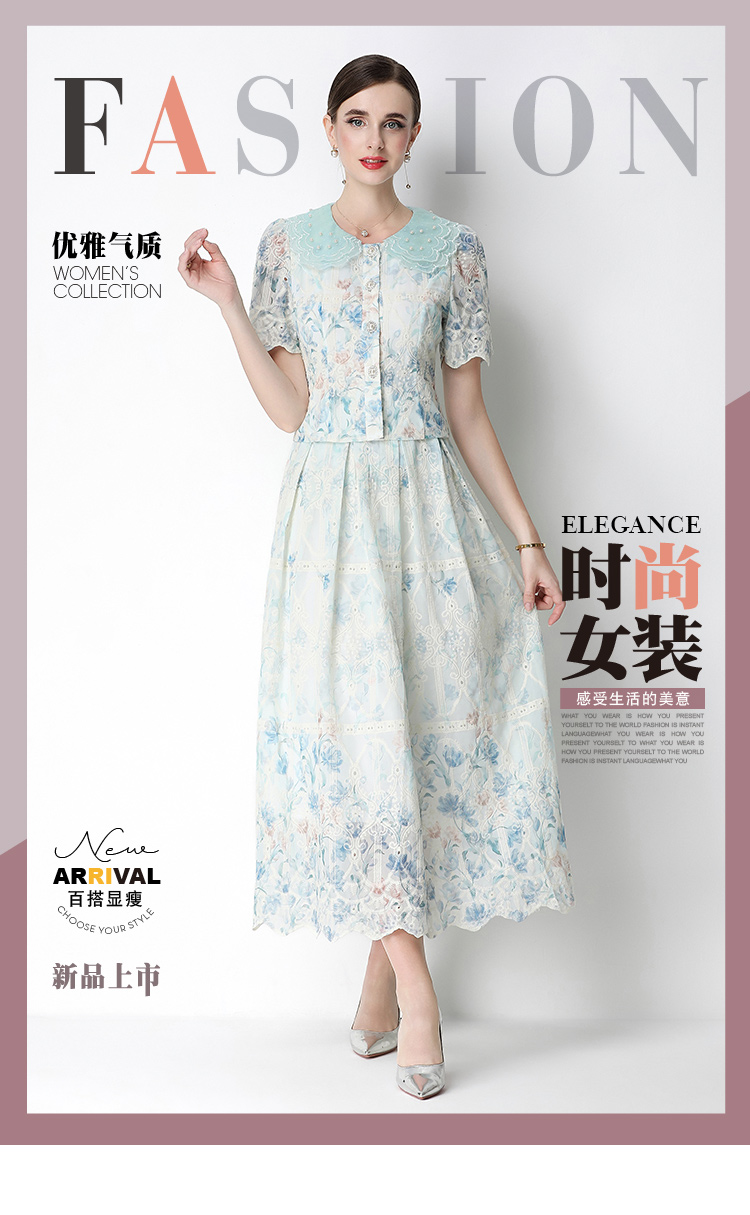 실사 오리지널 빛 럭셔리 고급 센스 패션 슬림해 보이는 자수 포지셔닝 프린트 세트 드레스