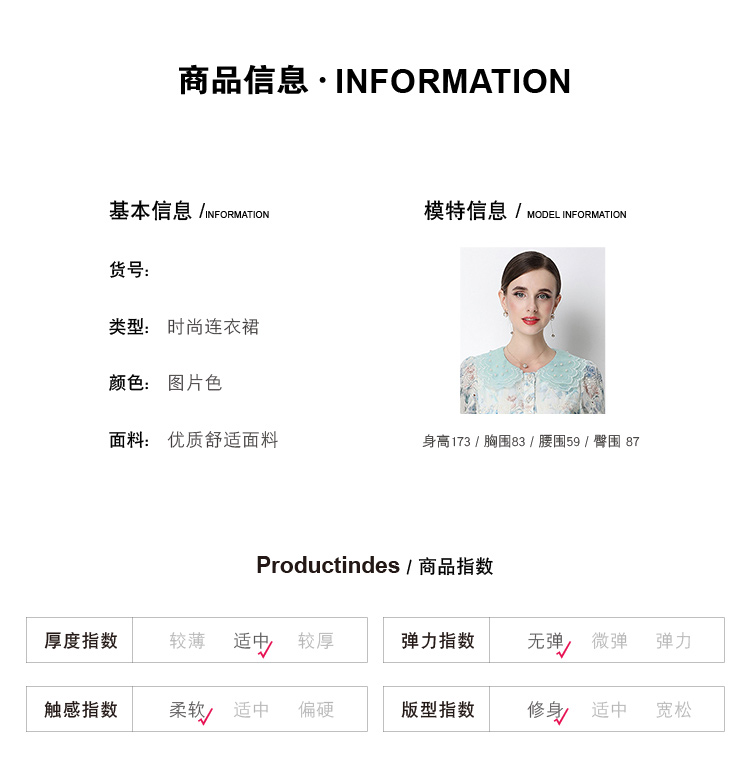 실사 오리지널 V넥 패션 슬림해 보이는 홀로우 아웃 물 용해 레이스 포지셔닝 중간 길이 드레스