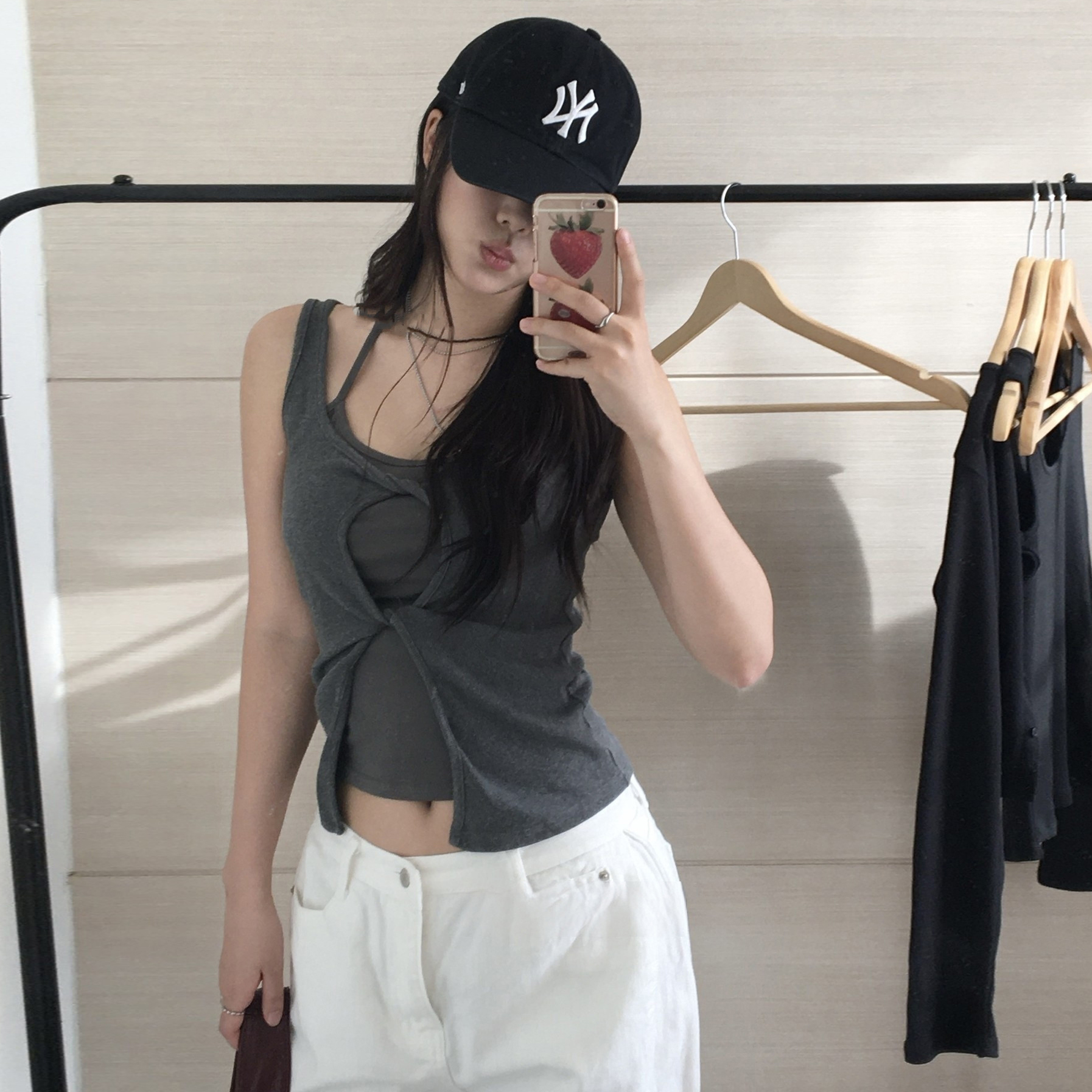 크기 있음 업데이트 실사 프랑스식 섹시함 무거운 작업 오프숄더 튜브탑 조끼 디자인 센스 작은 대중 품격 맨위