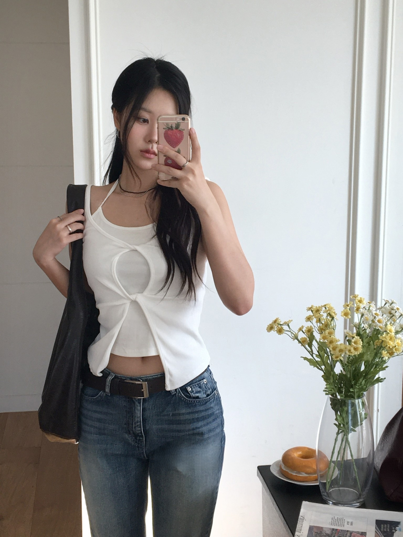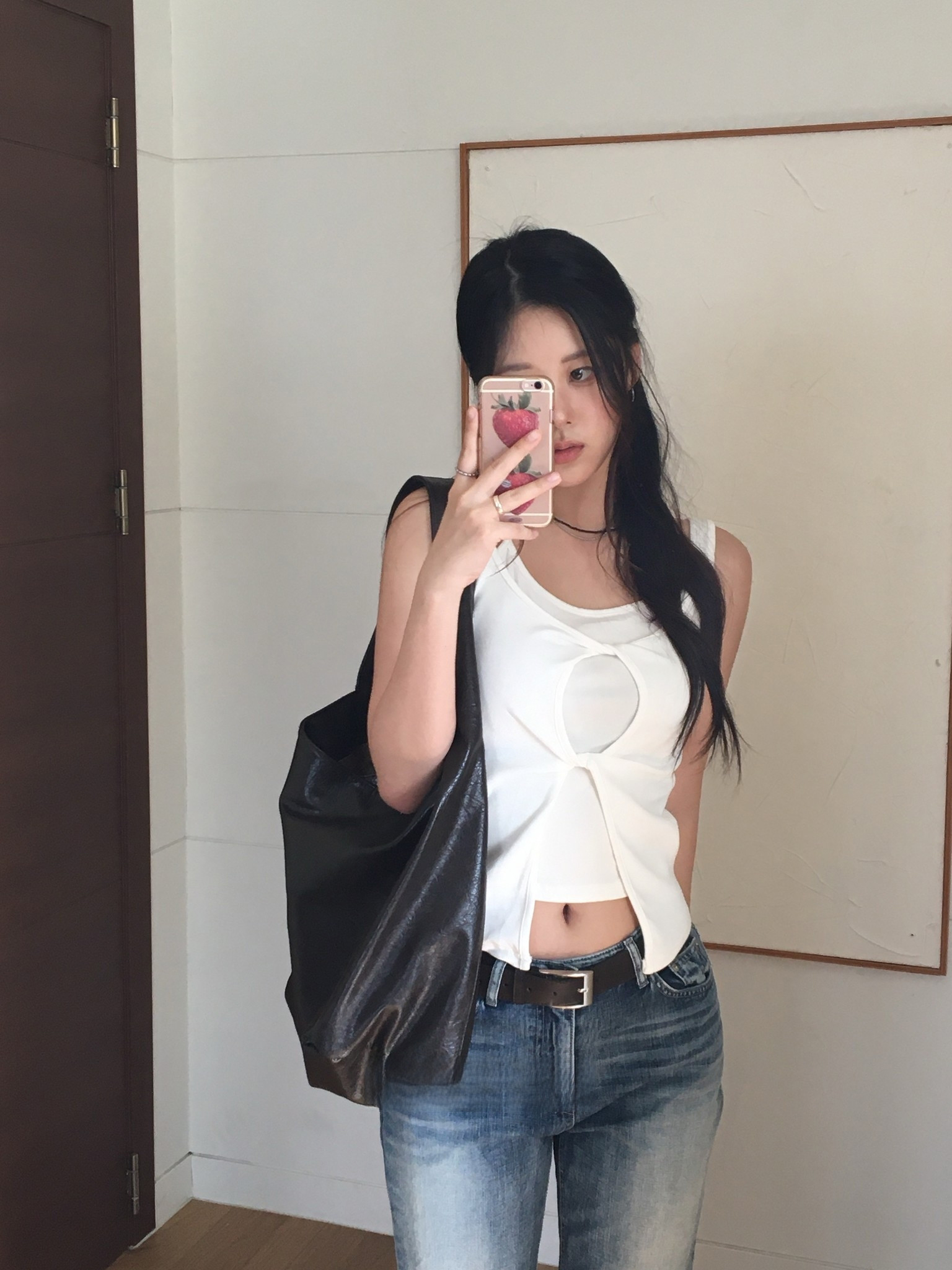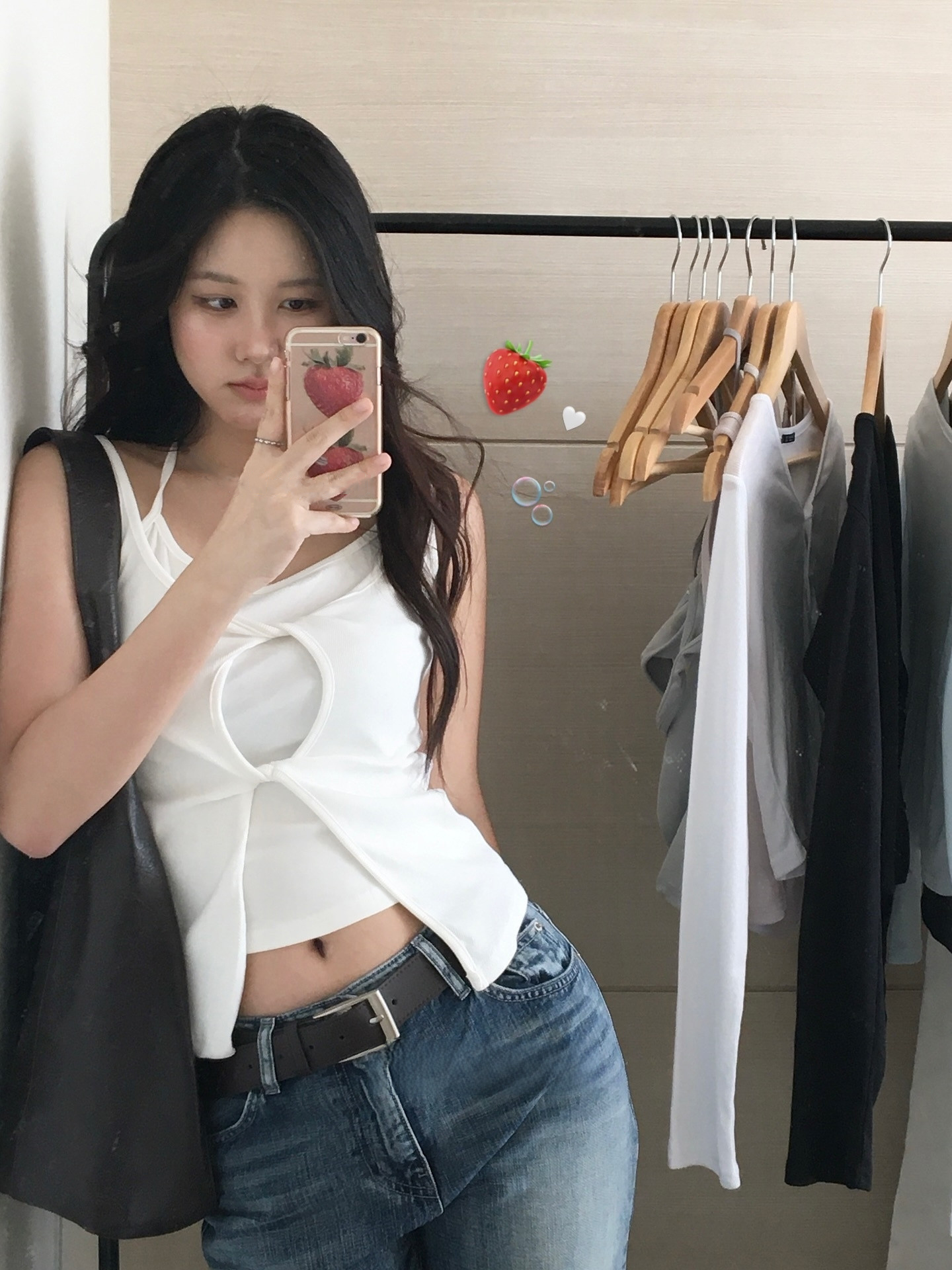 한국 chic 캐주얼 품격 우아함 섹시함 몸매 가꾸기 슬림해 보이는 라운드 넥 다용도 출퇴근 티셔츠 맨위