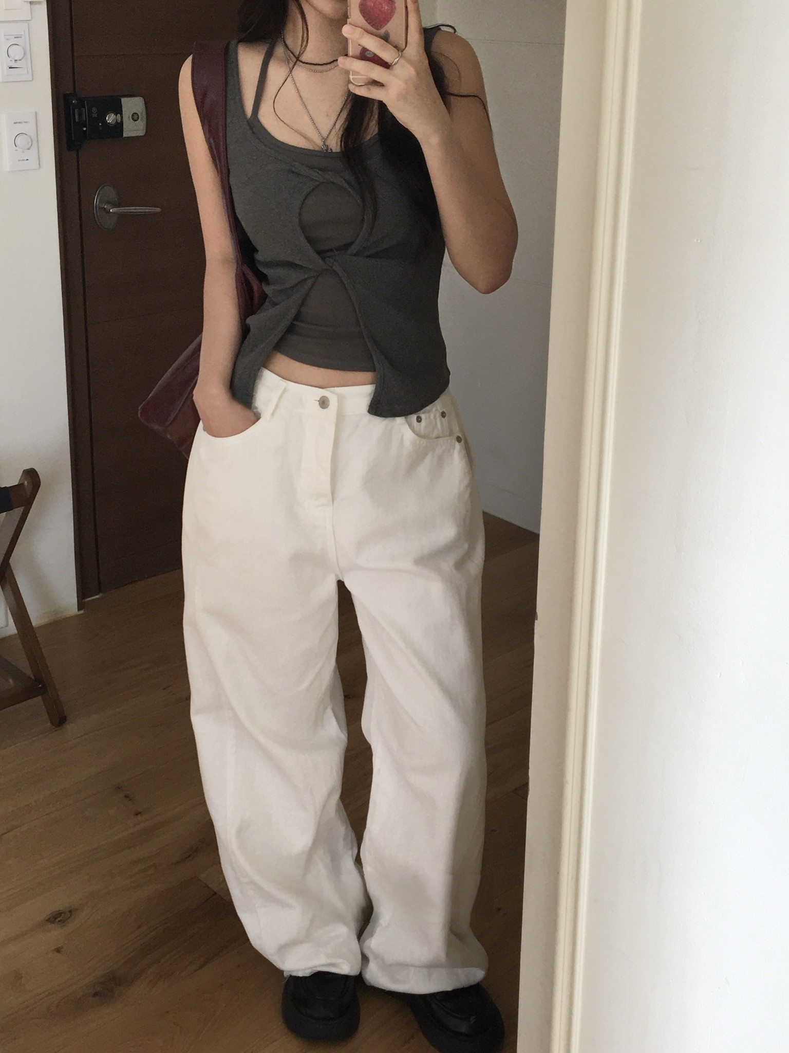 크기 있음 업데이트 작은 대중 미니멀리즘 하이웨이스트 플리츠 디자인 도루 센스 스트레이트 루즈핏 넓은 다리 바닥 청소 캐주얼 바지 긴 바지