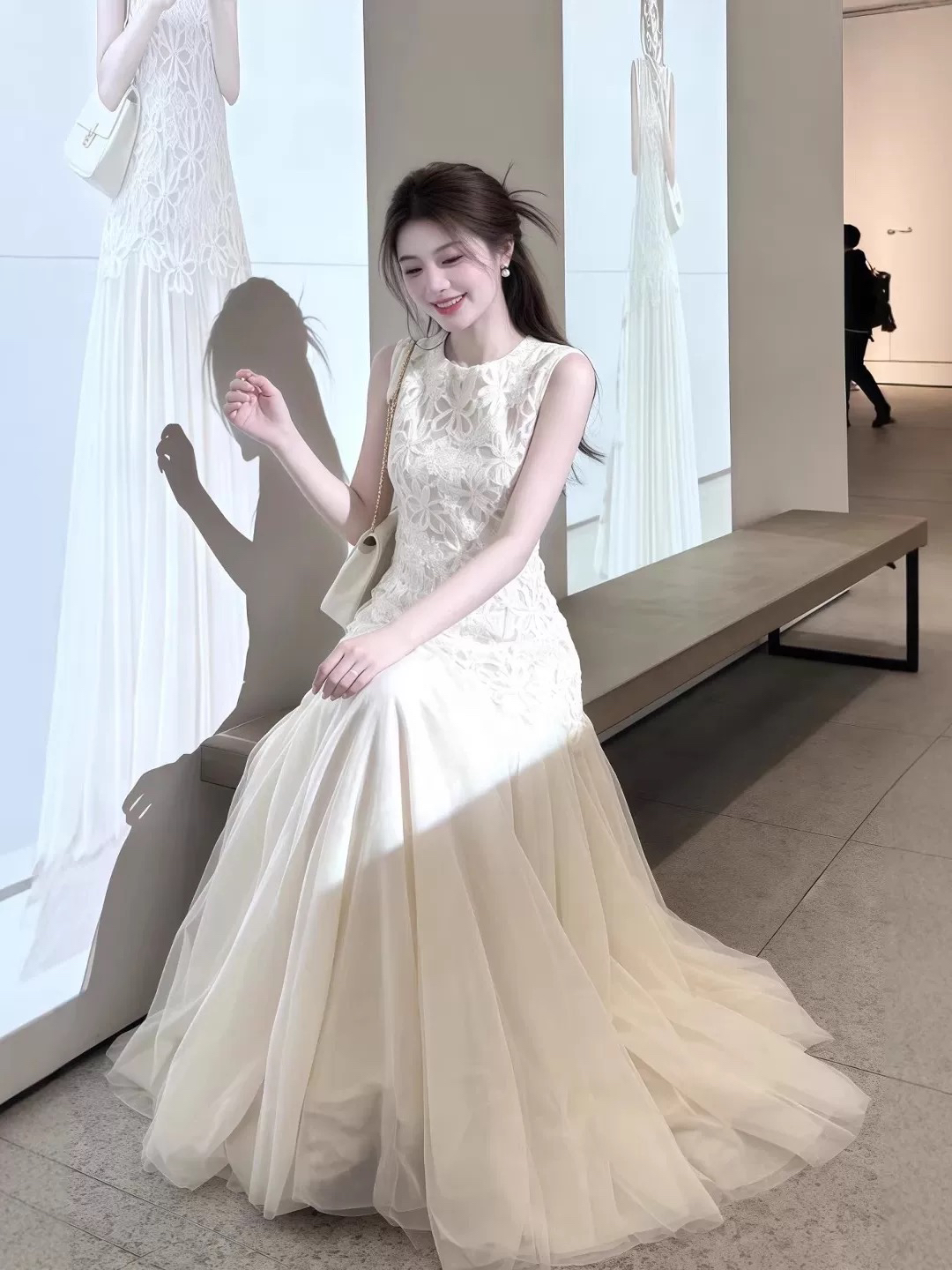 이른 봄 아름다운 여성 드레스 2026 봄 여름 새로운 민소매 부드러운 품격 패치워크 치마 화이트 조끼 치마