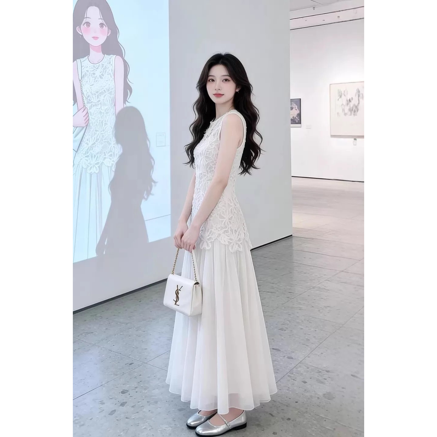 이른 봄 아름다운 여성 드레스 2026 새로운 민소매 패치워크 치마 화이트 조끼 스커트 여름