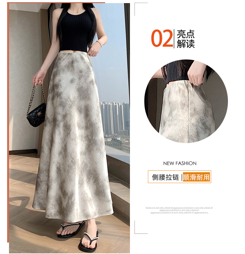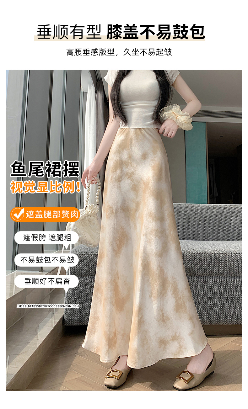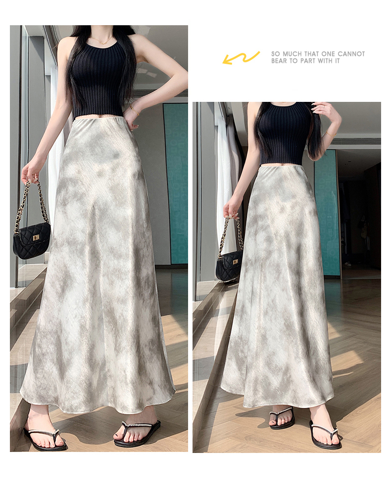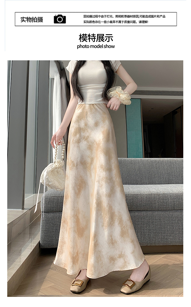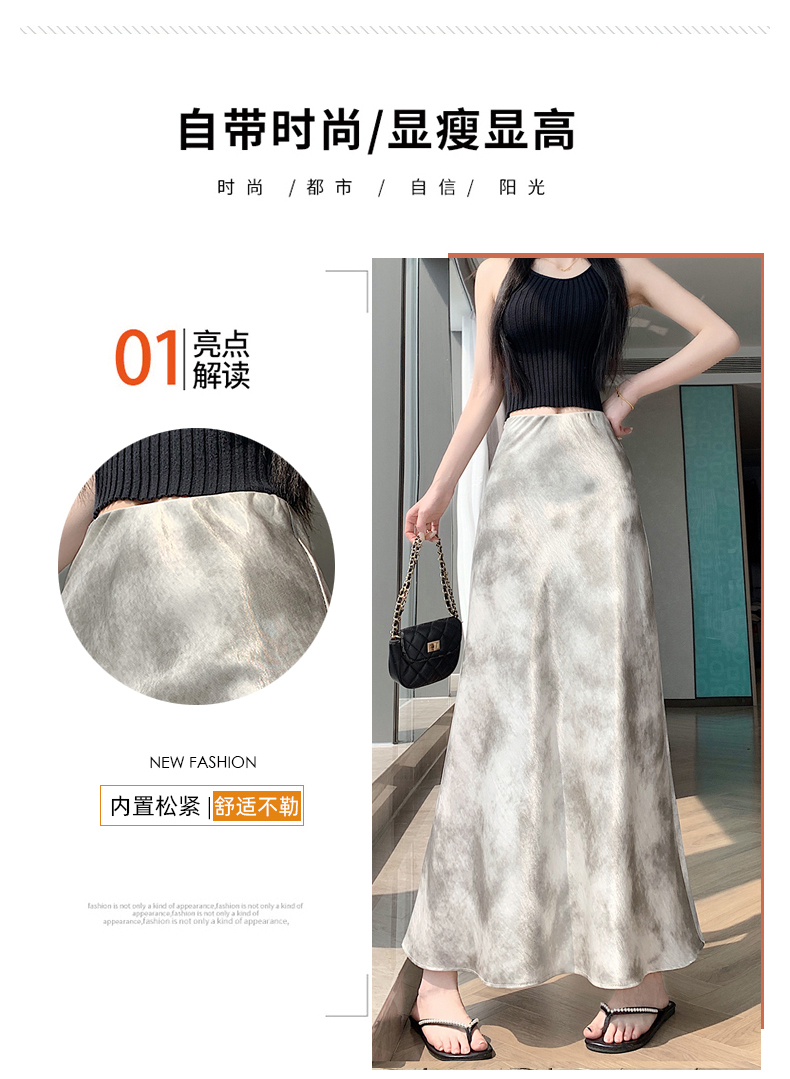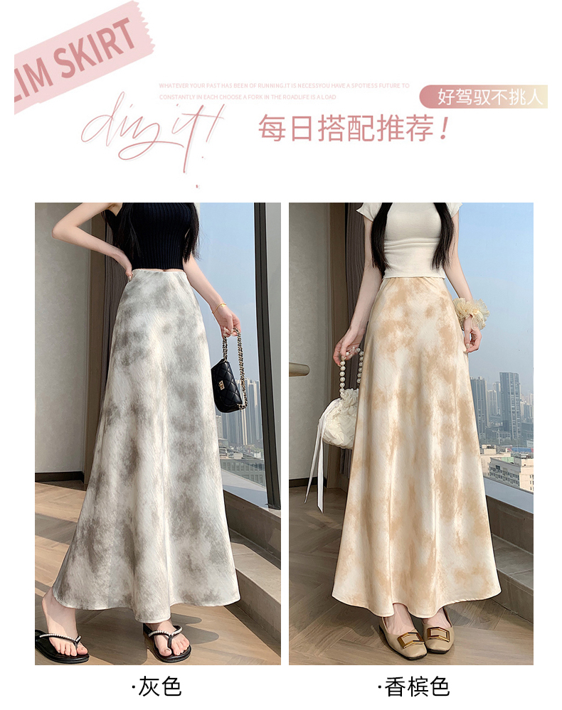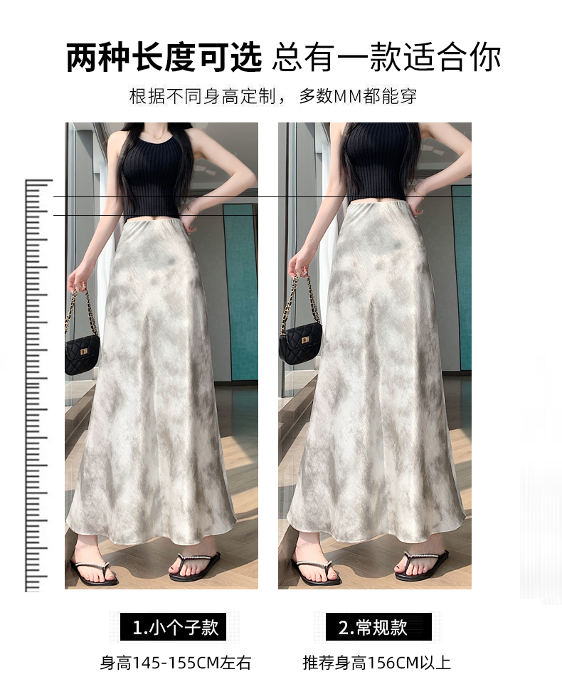 실사 길이 쇼트 스타일 아세트산 새틴 깃발 도트 무늬 반신 스커트 허리밴드 롱 스커트 트임 원사 한 마디 롱 스커트
