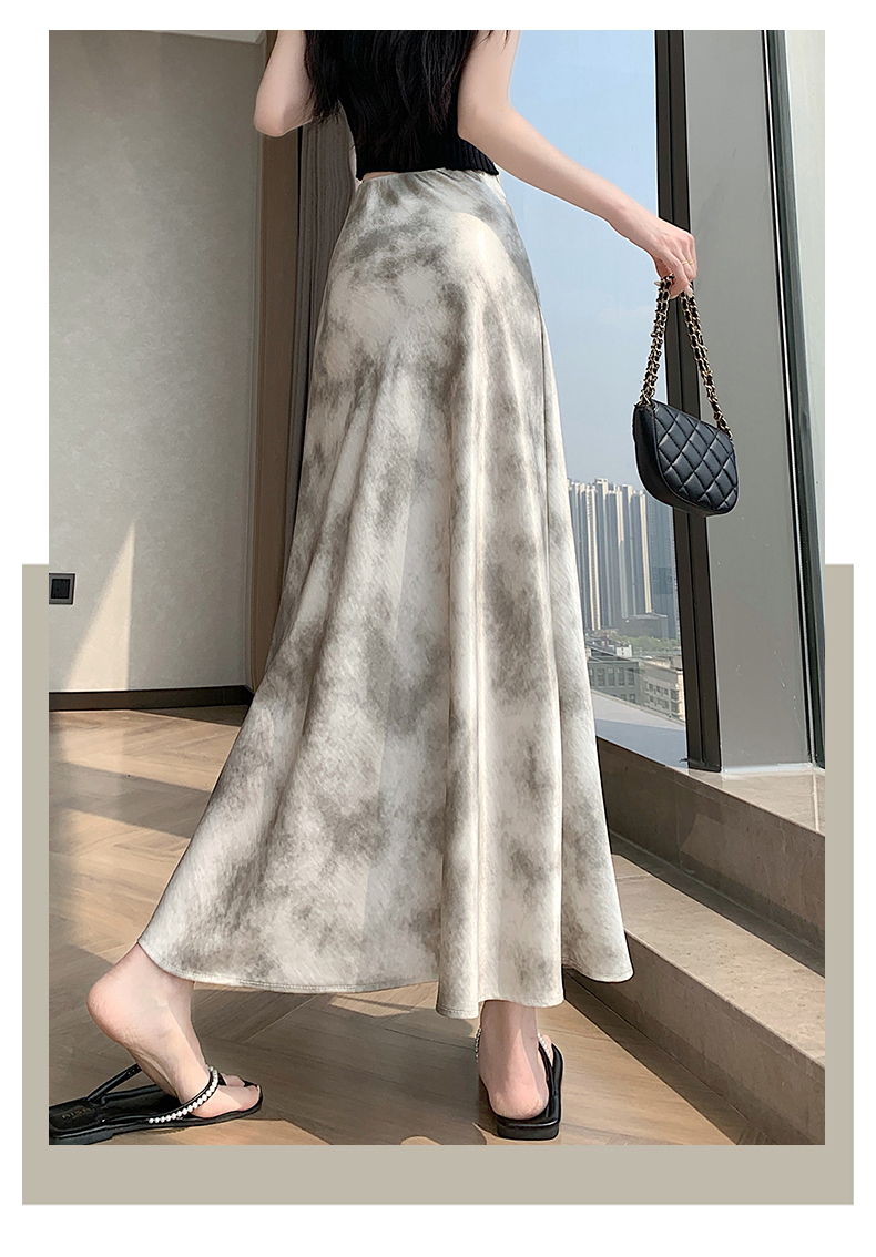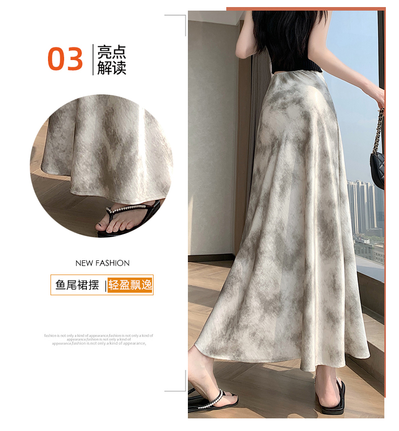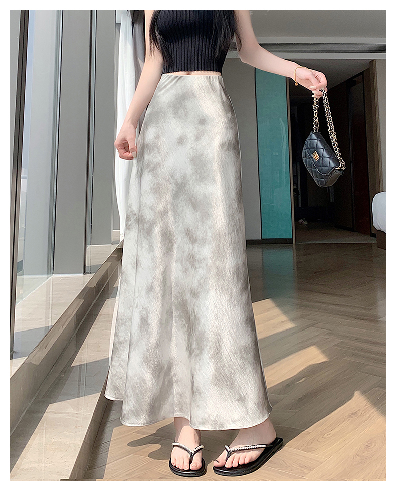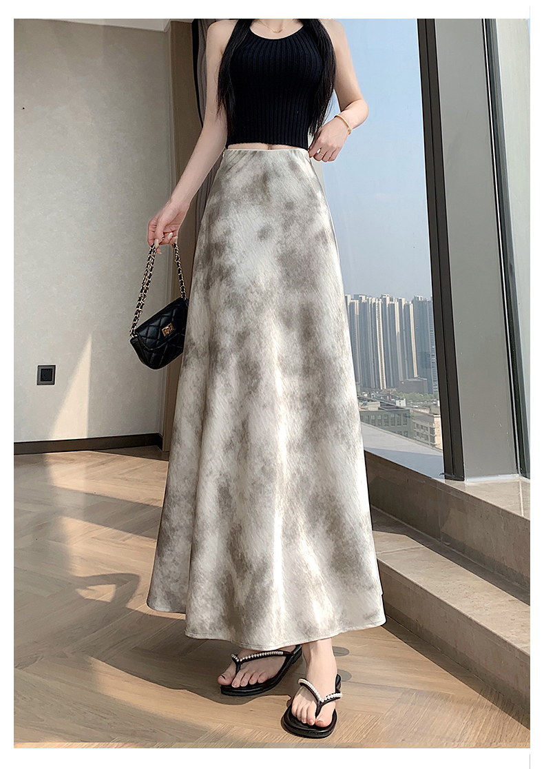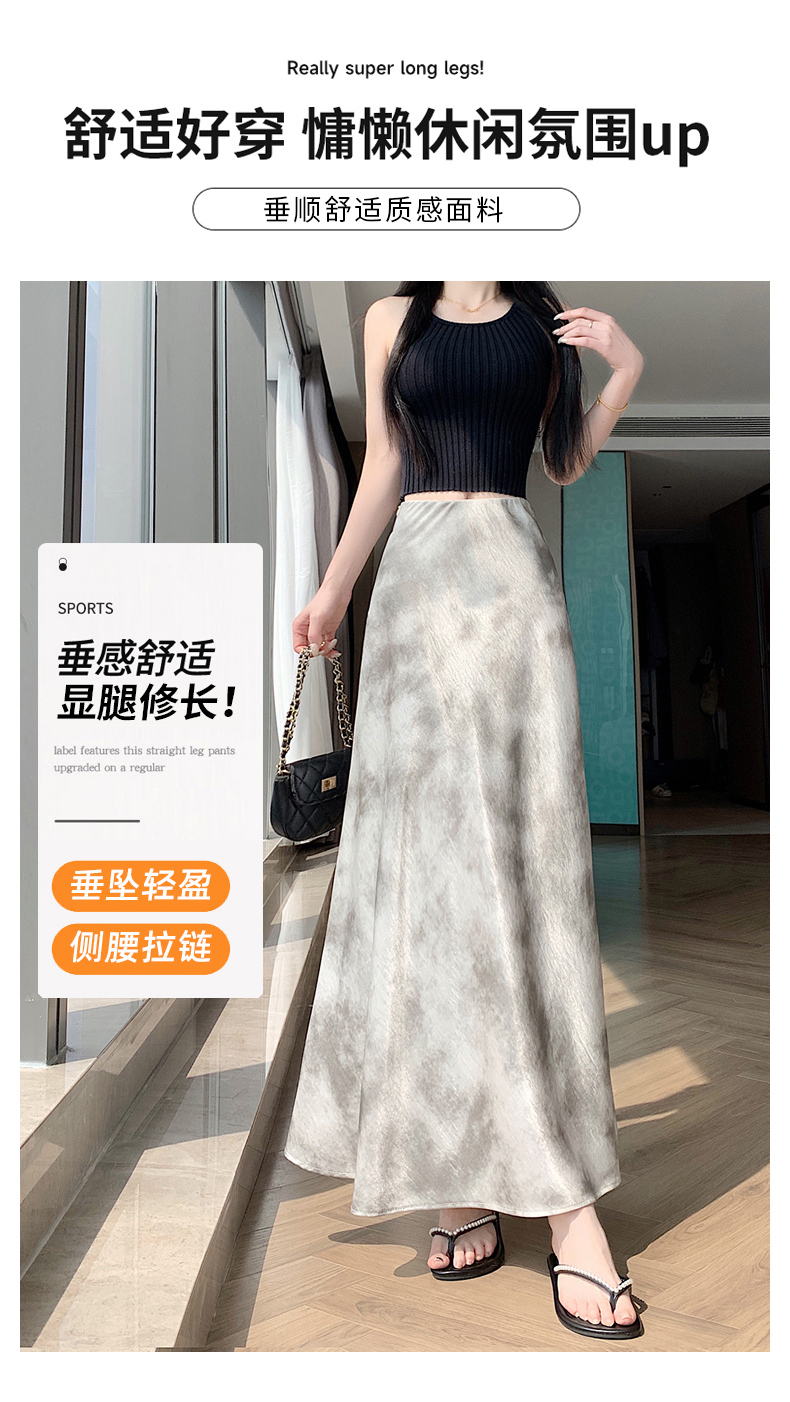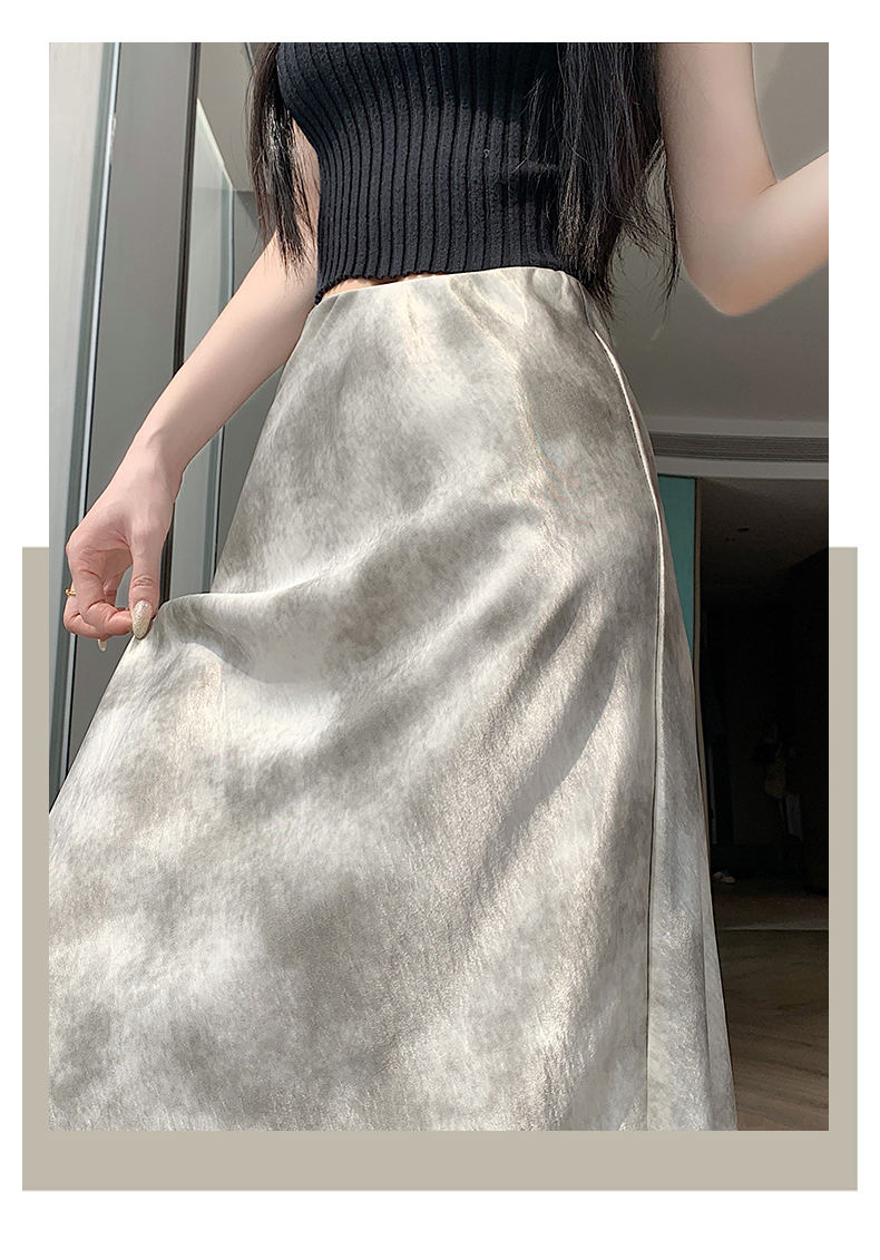 실사 길이 쇼트 스타일 아세트산 새틴 깃발 도트 무늬 반신 스커트 허리밴드 롱 스커트 트임 원사 한 마디 롱 스커트