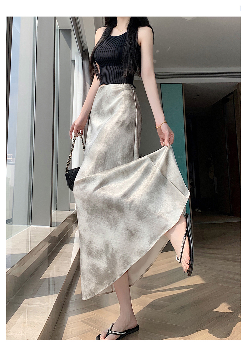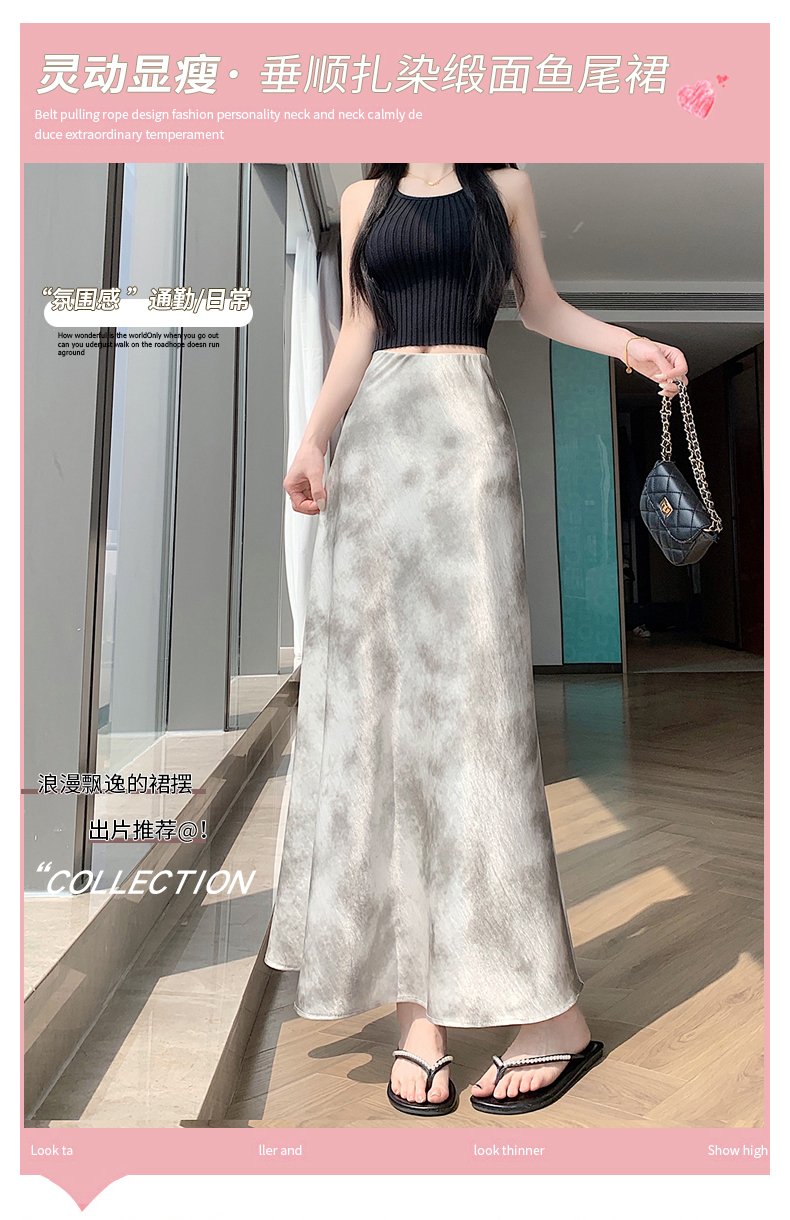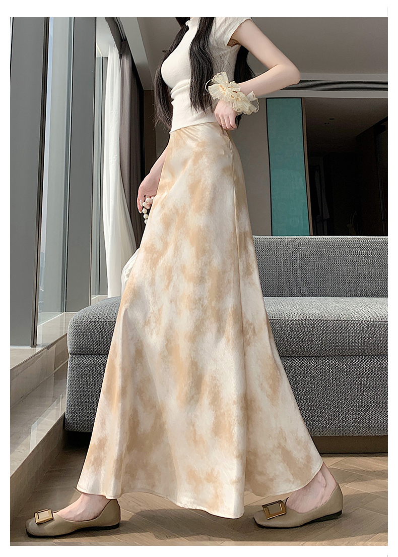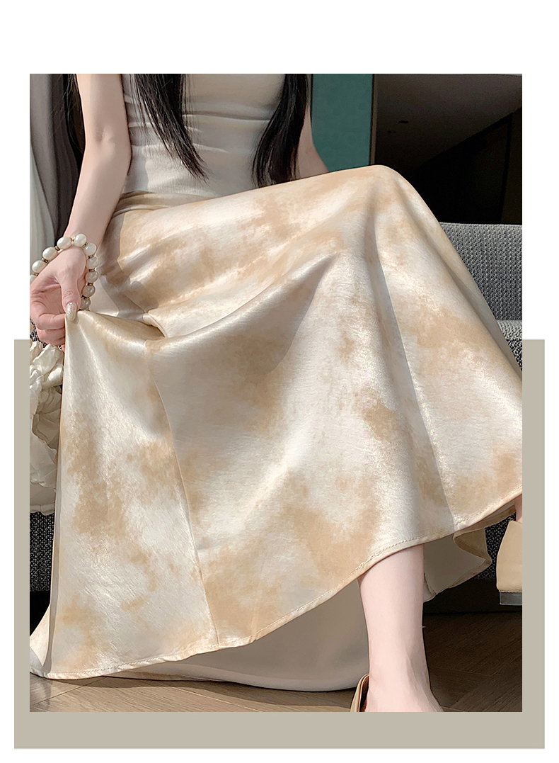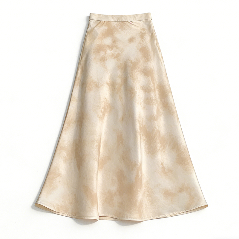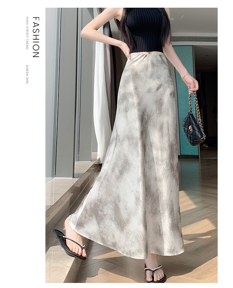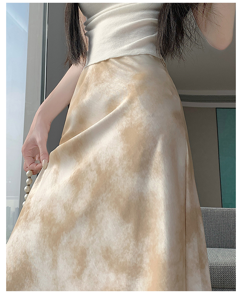 실사 길이 쇼트 스타일 아세트산 새틴 깃발 도트 무늬 반신 스커트 허리밴드 롱 스커트 트임 원사 한 마디 롱 스커트