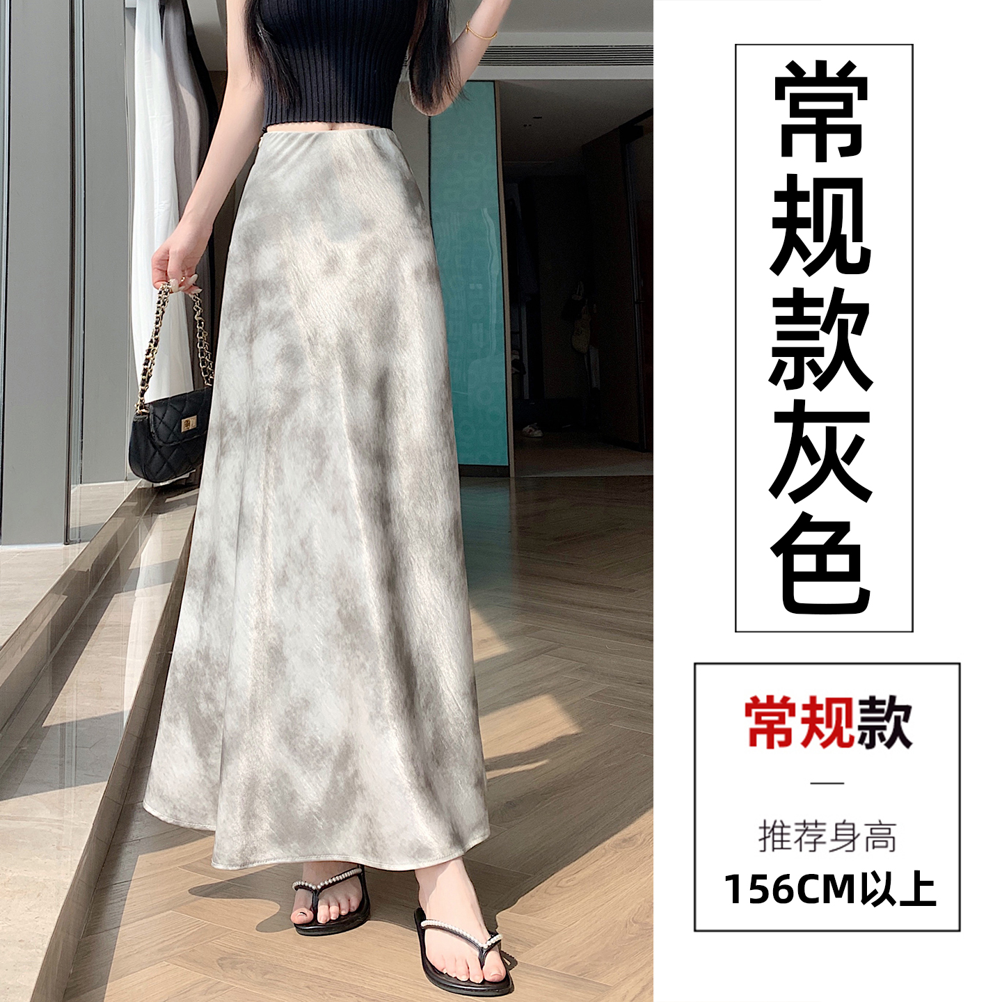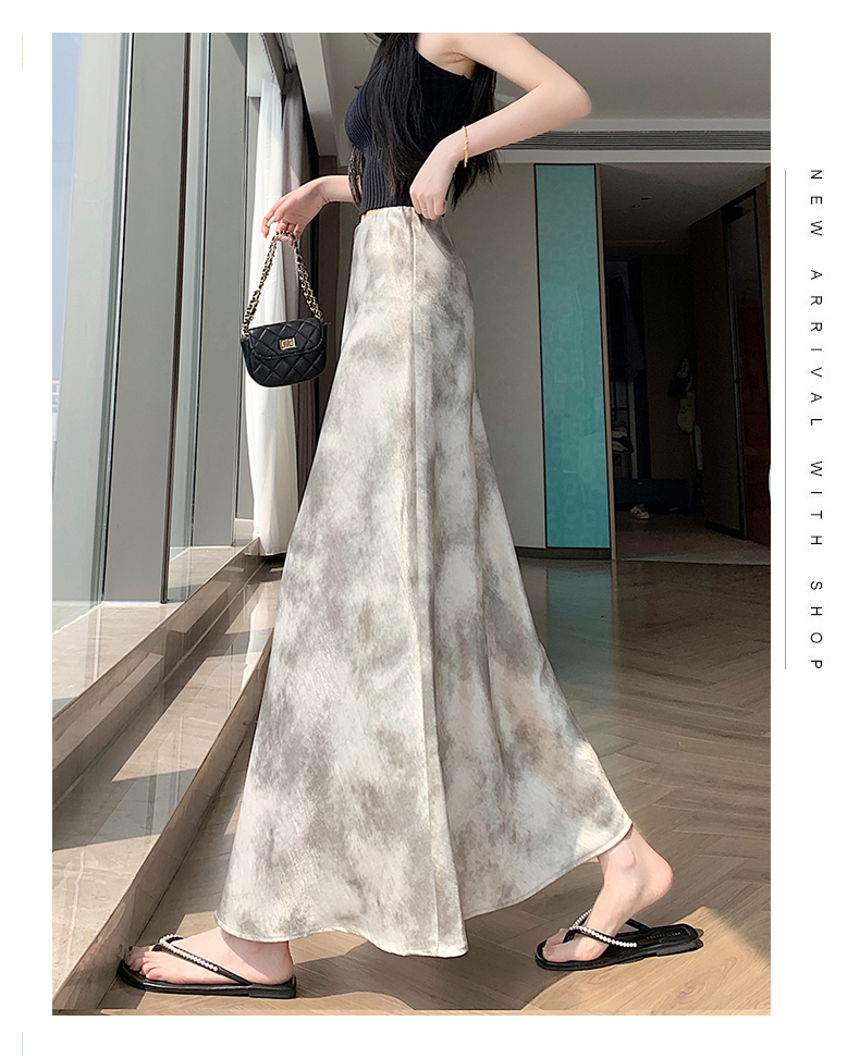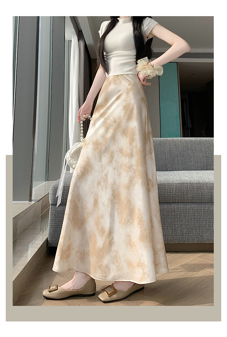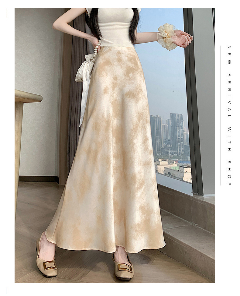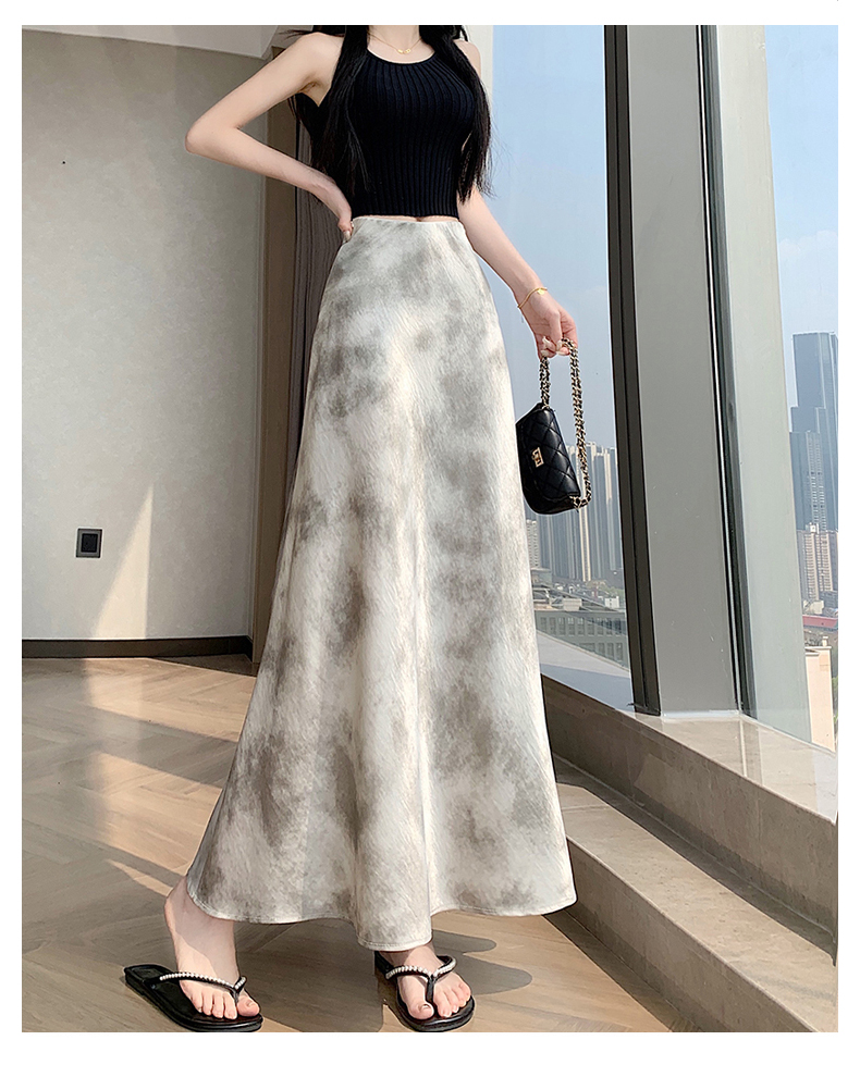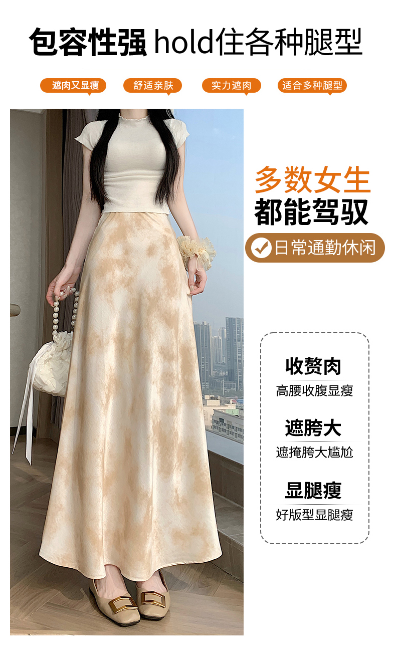 실사 길이 쇼트 스타일 아세트산 새틴 깃발 도트 무늬 반신 스커트 허리밴드 롱 스커트 트임 원사 한 마디 롱 스커트