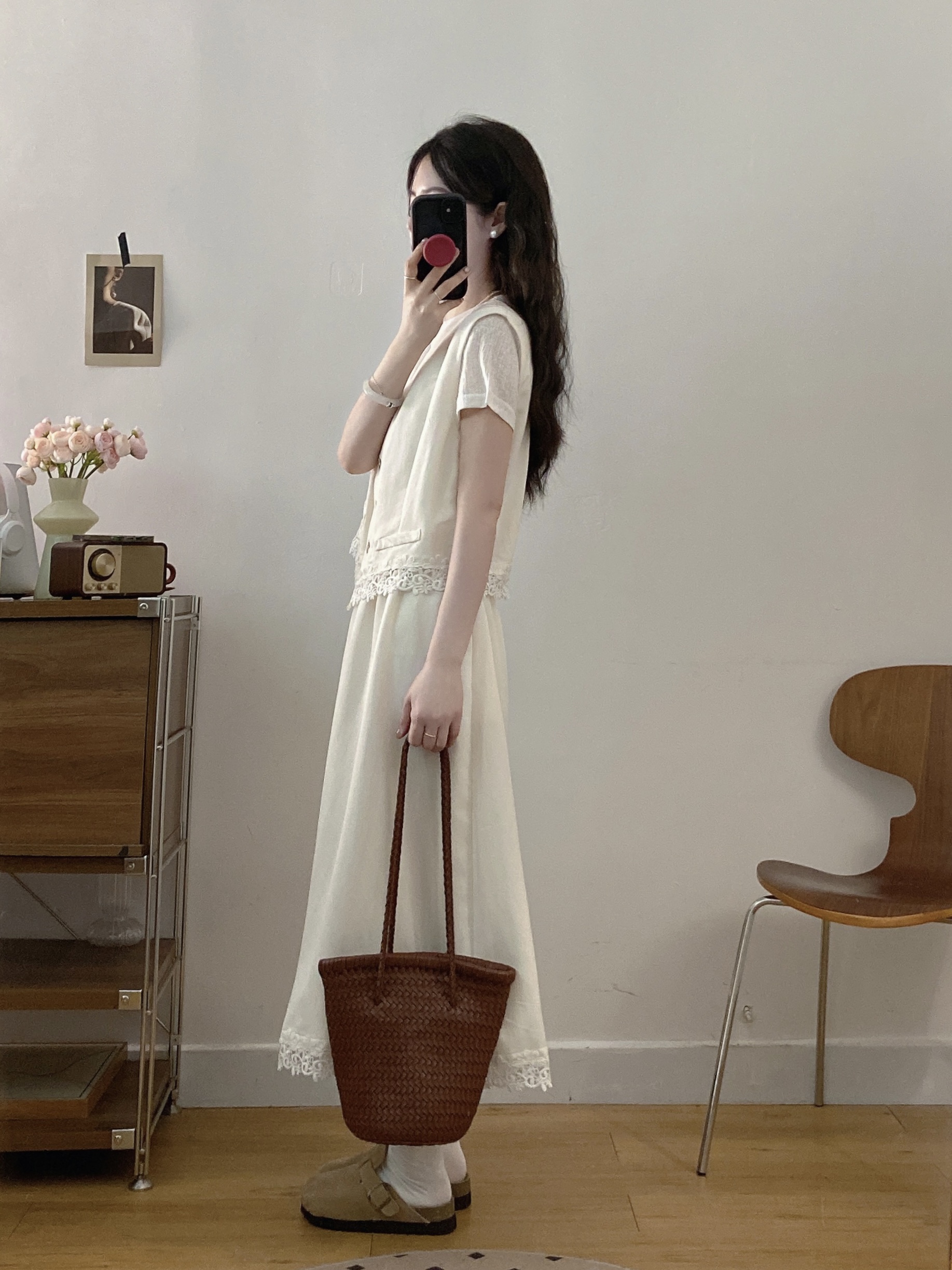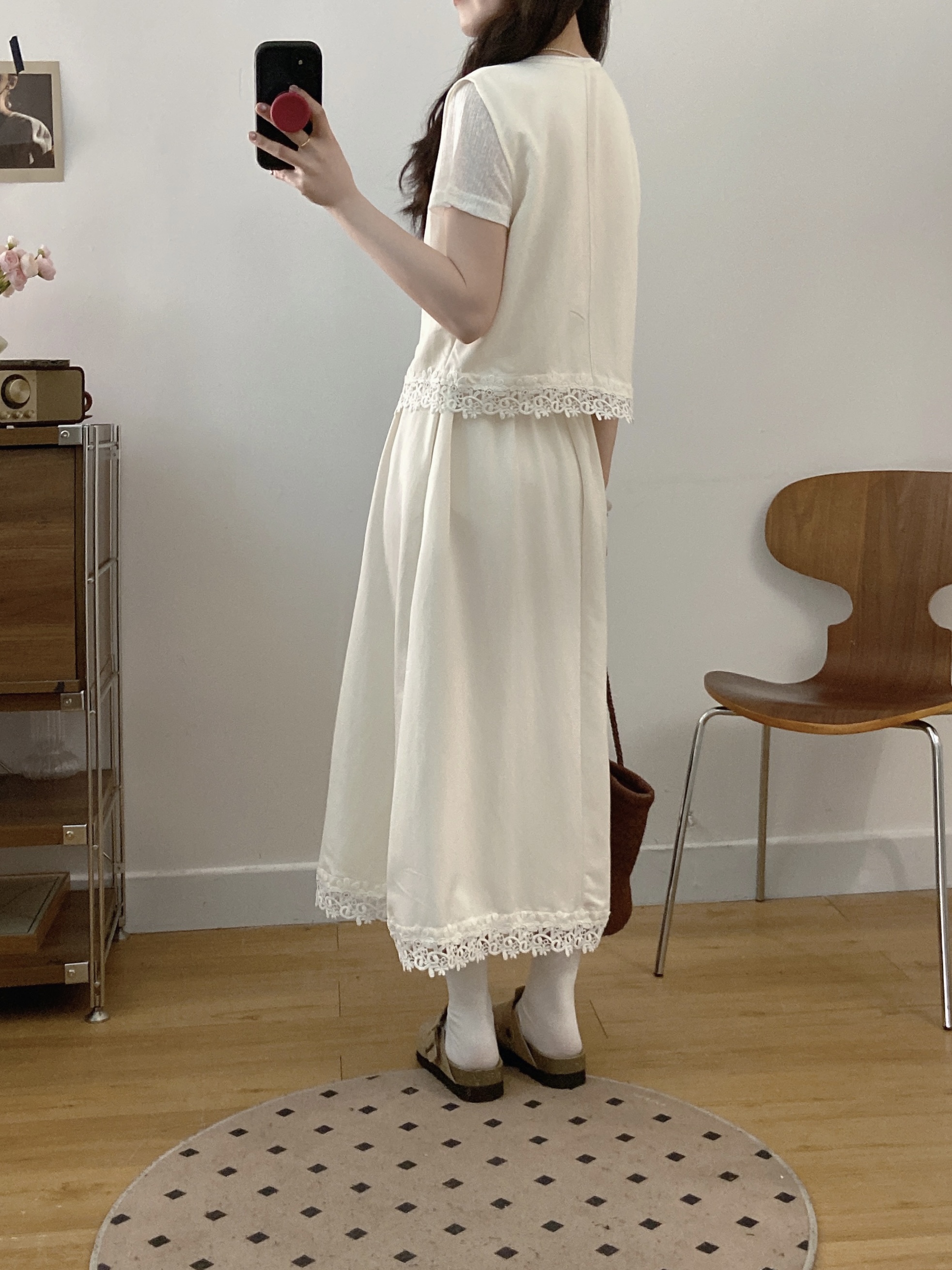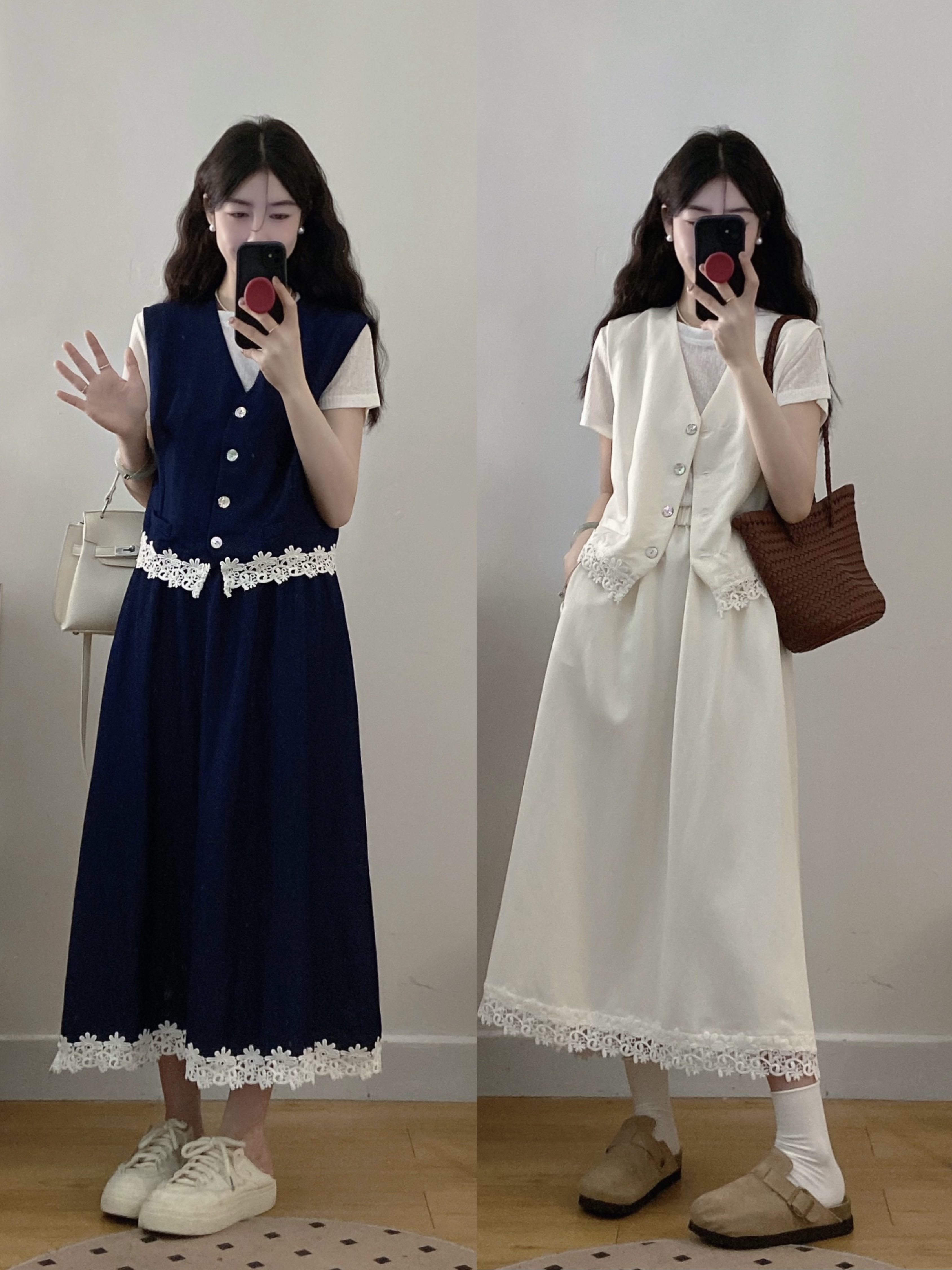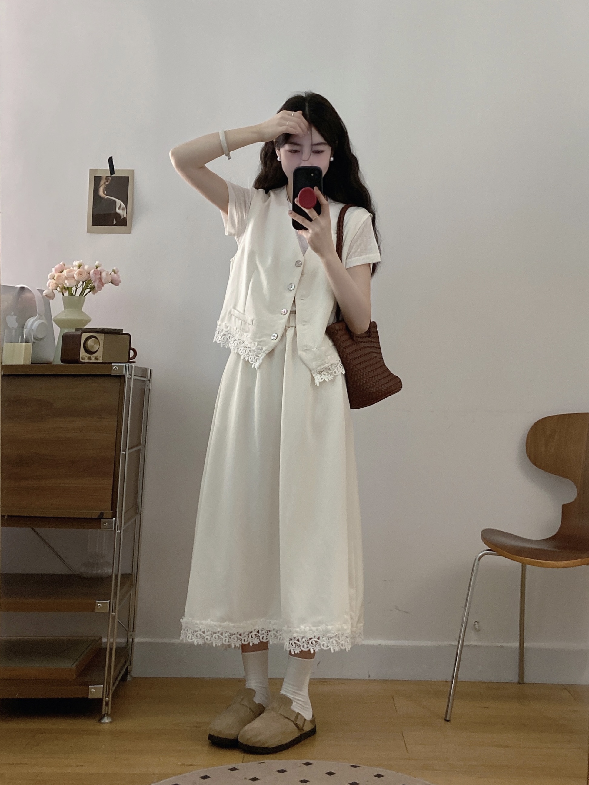 실사 빅 사이즈 세트 여성 2026 년 여름 한국 스타일 라운드 넥 캐주얼 조끼 스커트 화이트 반팔 티셔츠 투피스 슈트