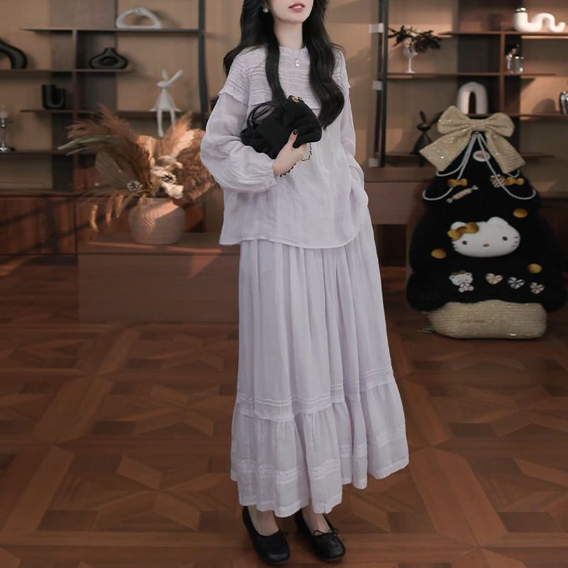 보라색 맨위 2026 봄 가을 품격 고급 센스 고유 한 아름다운 디자인 센스 경기 치마 외부 가져 가라. 얇은 스타일 맨위 여성