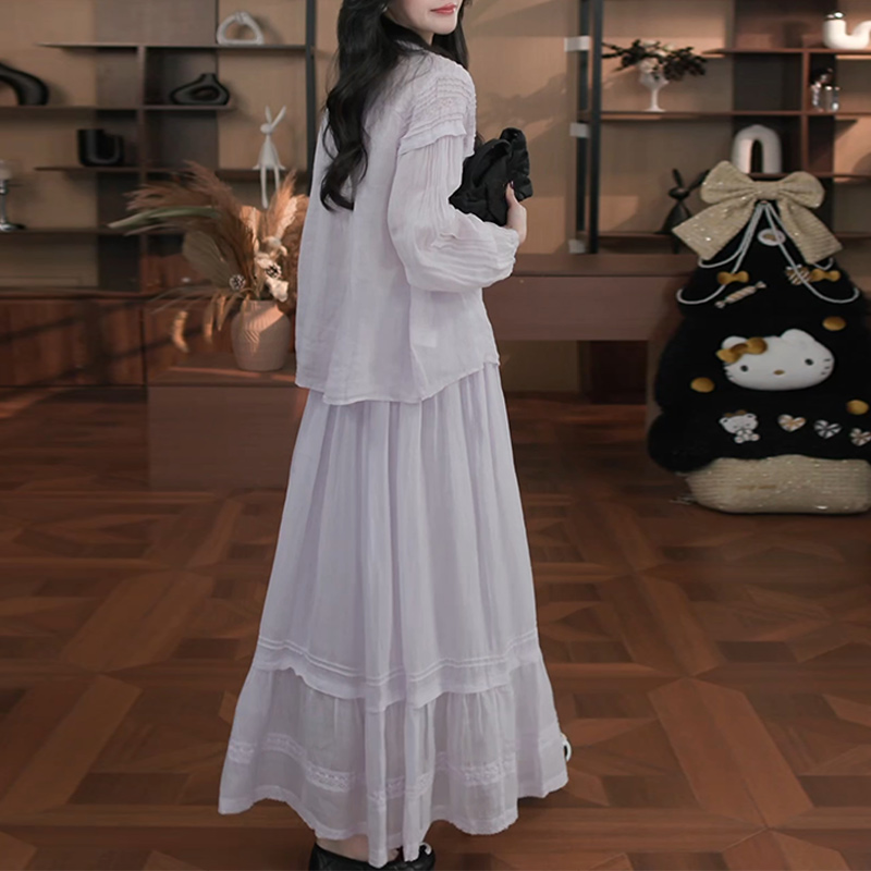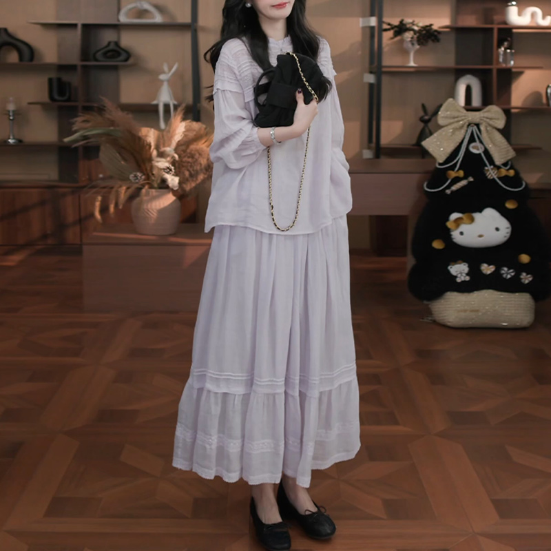 프릴 반신 스커트 플리츠 세트 여성 2026 봄 여름 셔츠 디자인 일상 미니멀리즘 바람 부드러운 센스 착용 가져 가라.