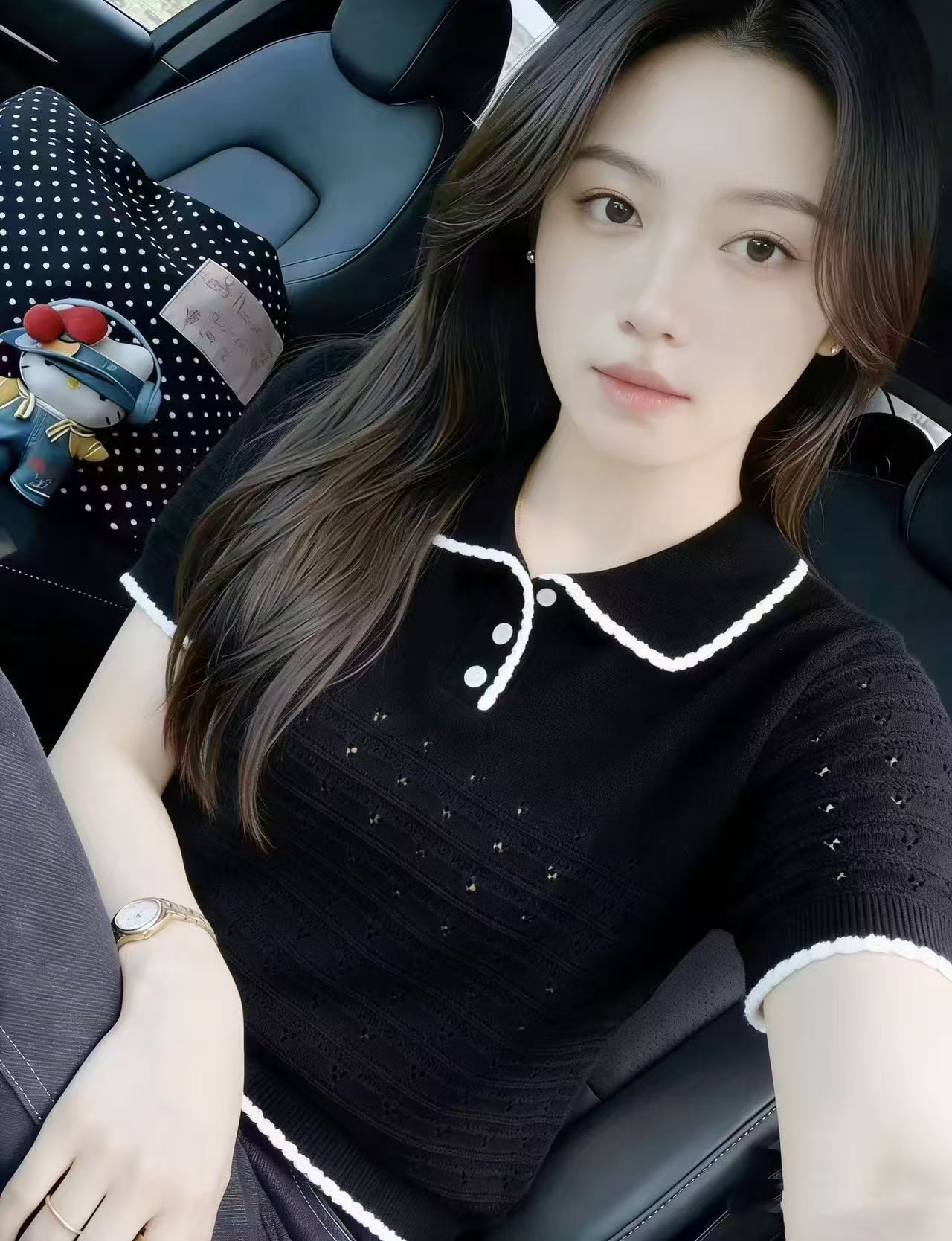 여름 흑백 줄무늬 POLO 칼라 얼음 실크 니트 반팔 티셔츠 여성 2026 새로운 얇은 스타일 Feifei 소매 맨위
