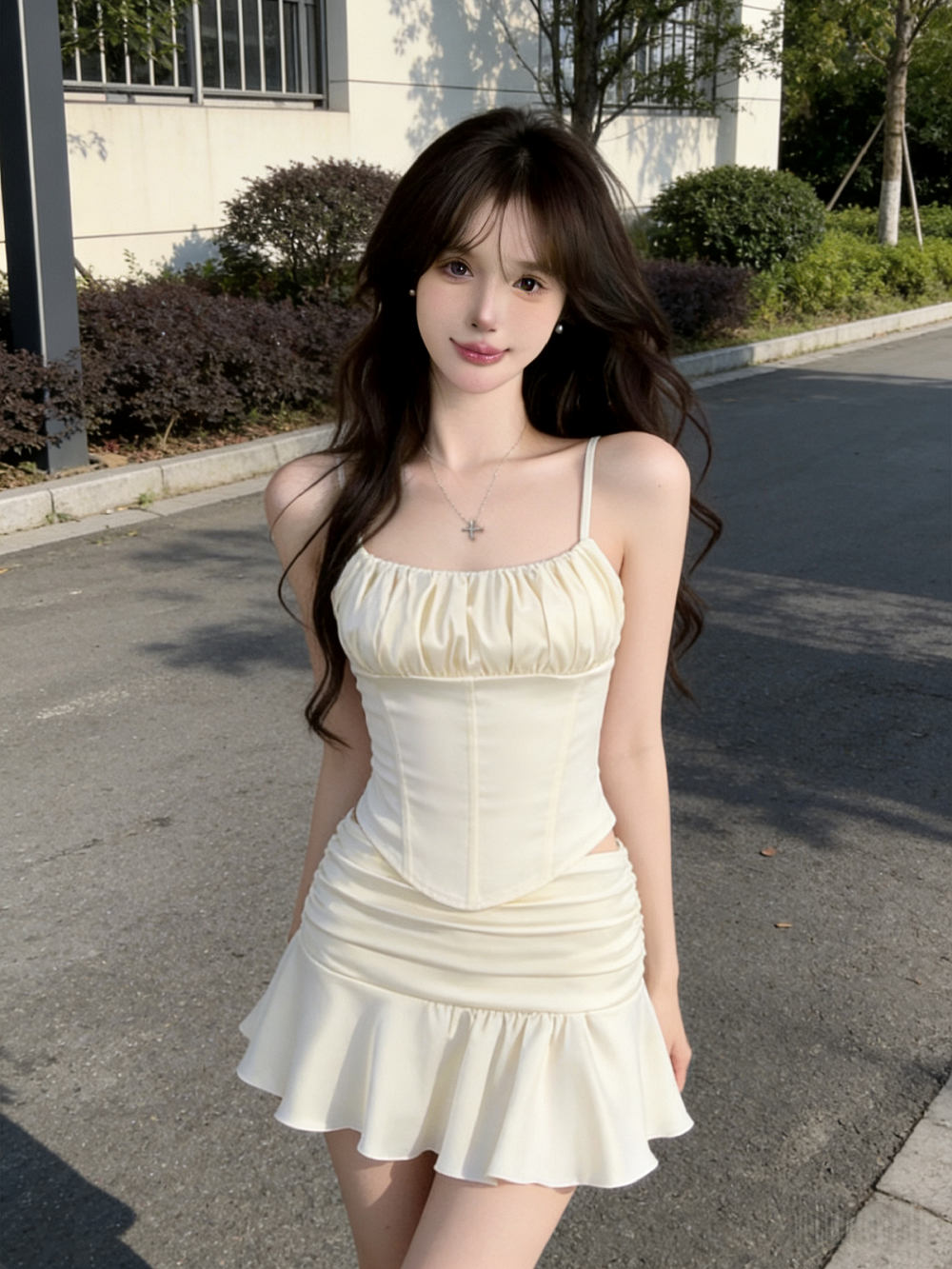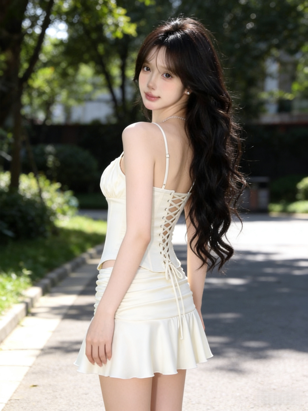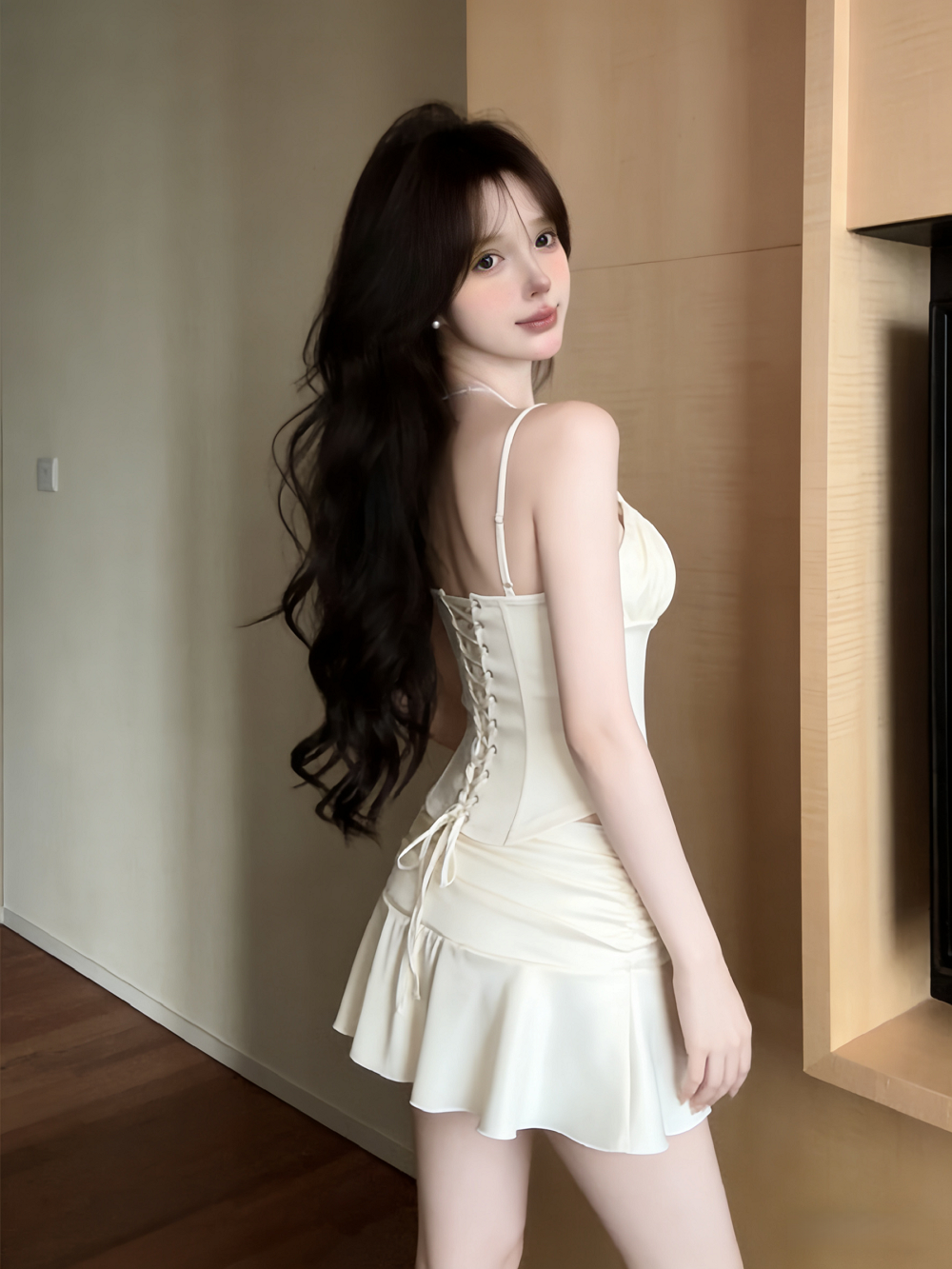 실사 정가 섹시함 슬립 허리 수축 조끼 맨위 프릴 인어 꼬리 하이웨이스트 반신 스커트 투피스 세트