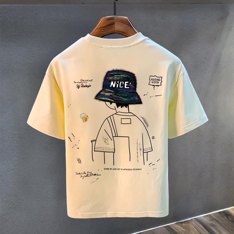 순면 반팔 티셔츠 남자 라운드 넥 여름 남성 트렌드 카드 루즈핏 반소매 t 동정 알파벳 프린트 맨위