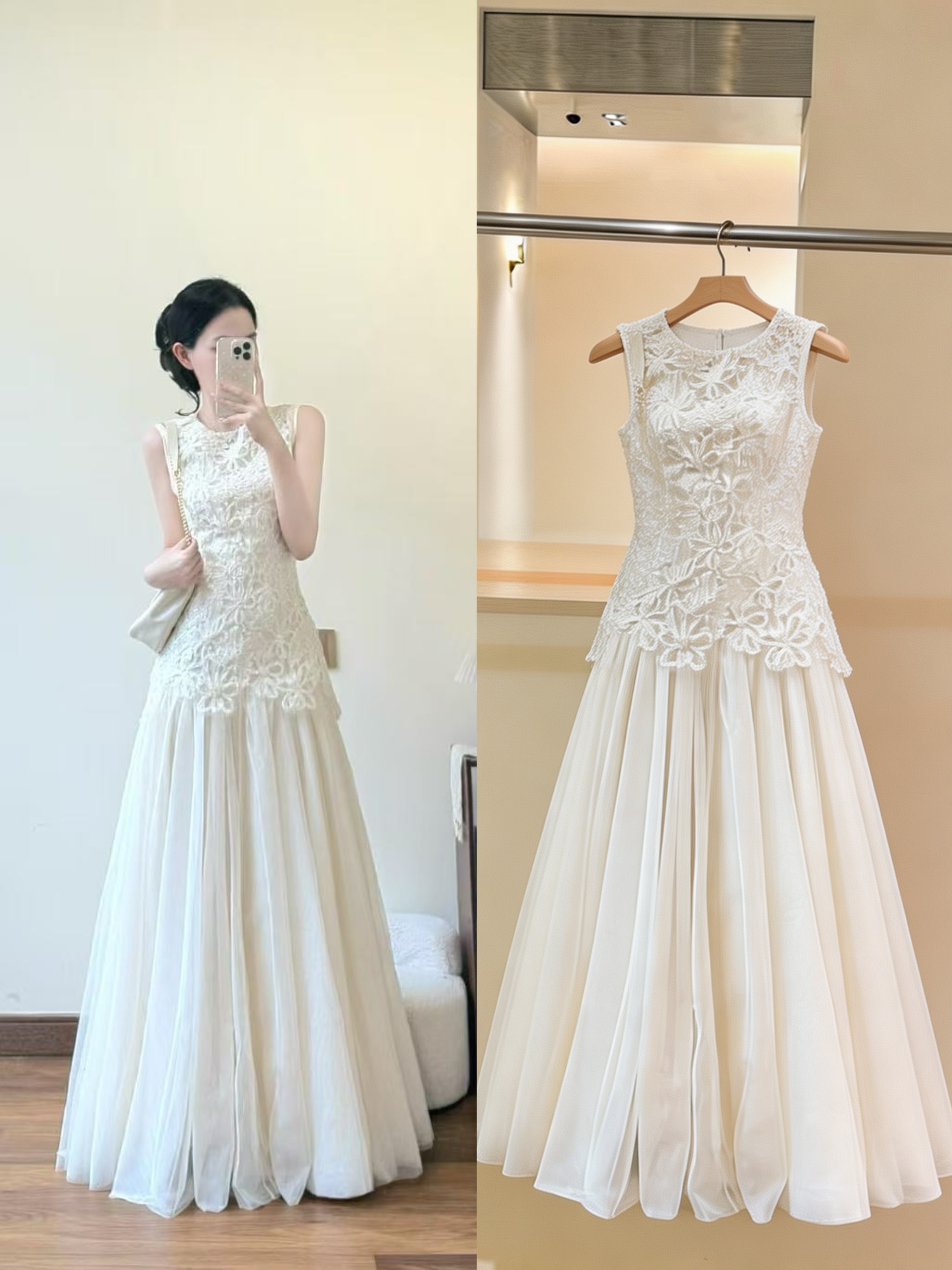 이른 봄 아름다운 여성 드레스 2026 새로운 민소매 패치워크 치마 화이트 조끼 스커트 여름