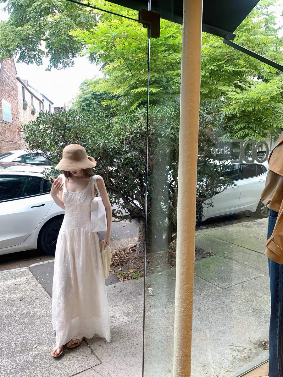 하나부터 순간 시리아 여름 무거운 작업 자수 레이스 홀로우 아웃 면 소재 레이스 드레스 부드러운 분위기 센스 롱 스커트