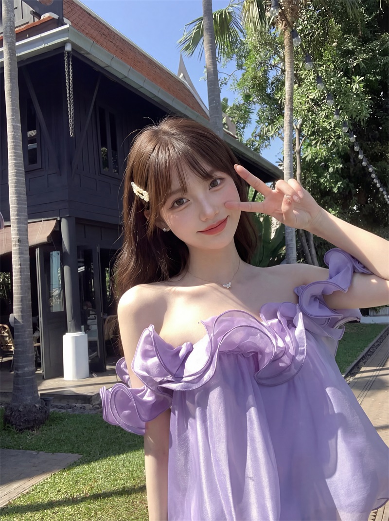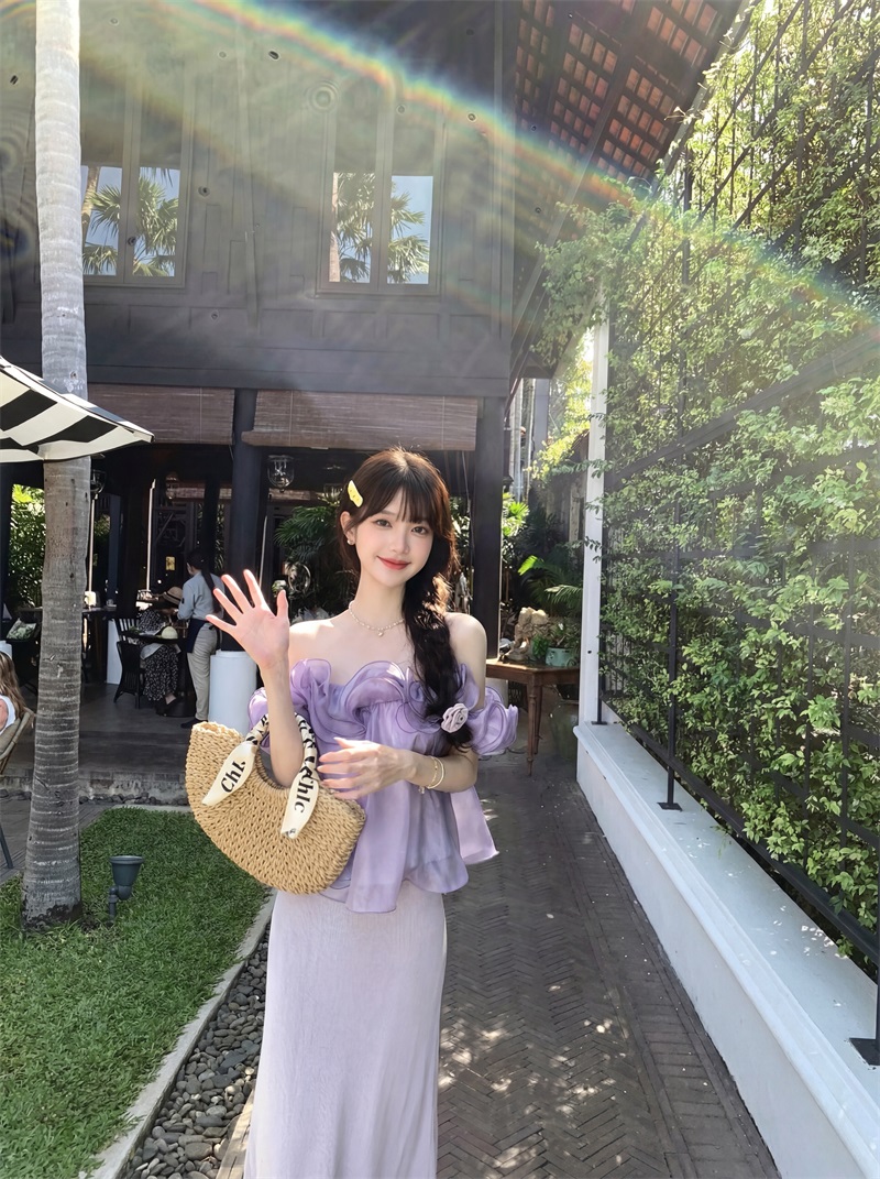 실사 정가 보라색 안개 요정 순수한 욕망 요정 가스 달콤함 3 차원 꽃 생선뼈 허리 수축 한 마디 퍼프 스커트