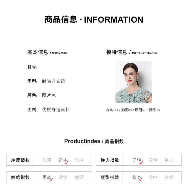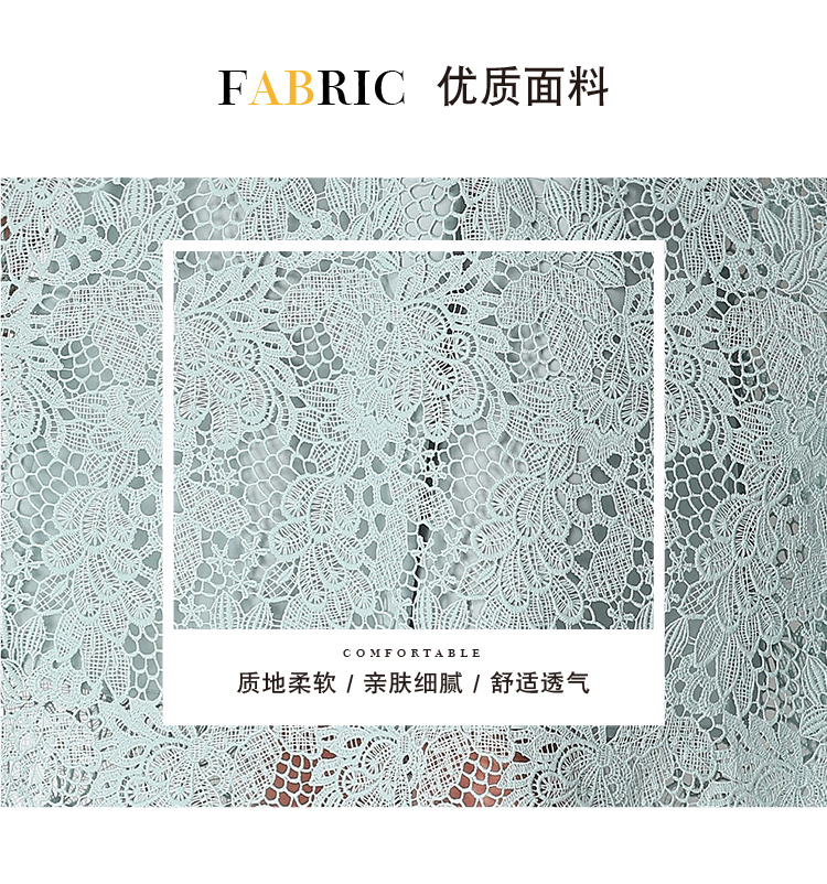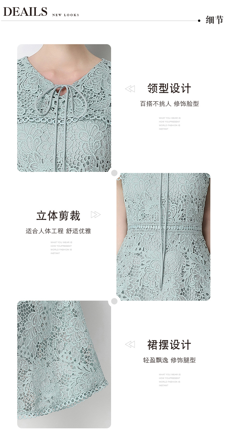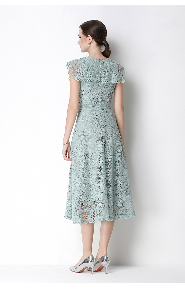 실사 오리지널 V넥 패션 슬림해 보이는 홀로우 아웃 물 용해 레이스 포지셔닝 중간 길이 드레스