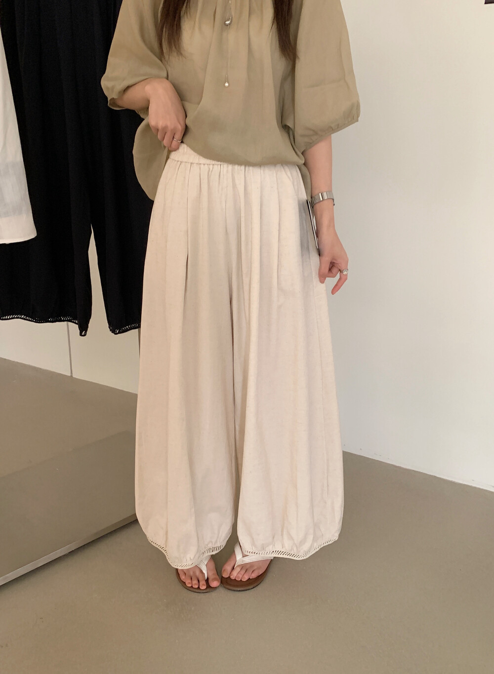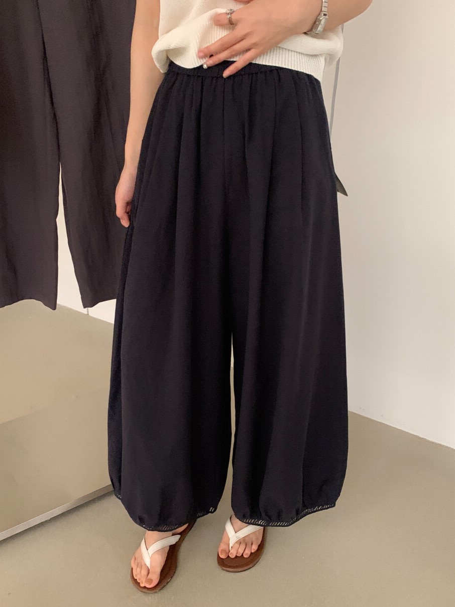 한 부서 미니멀리즘 고급 센스 레이스 레이스 랜턴 와이드 레깅스 바지 새로운 자외선 차단 캐주얼 바지