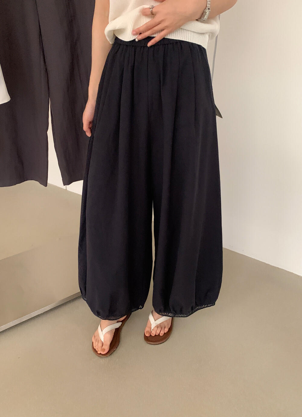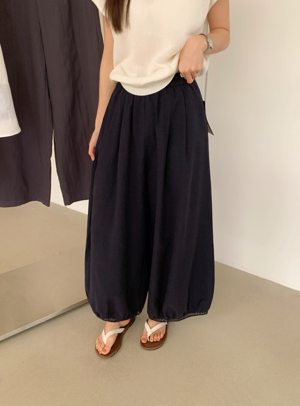 여름 섹션 새로운 느긋한 바람 슬림해 보이는 대 와이드 다리 캐주얼 바지 여성