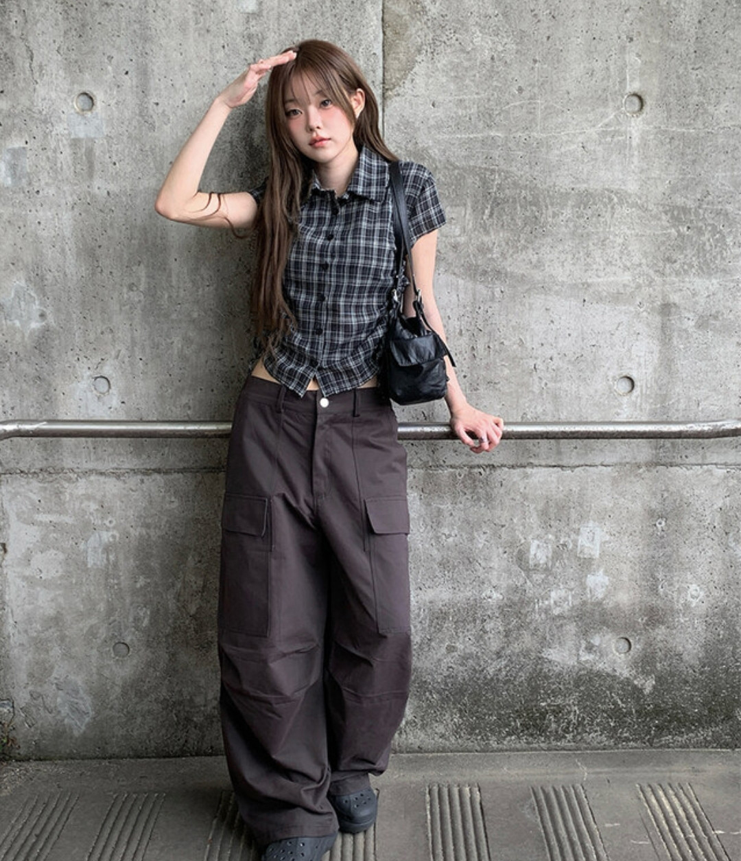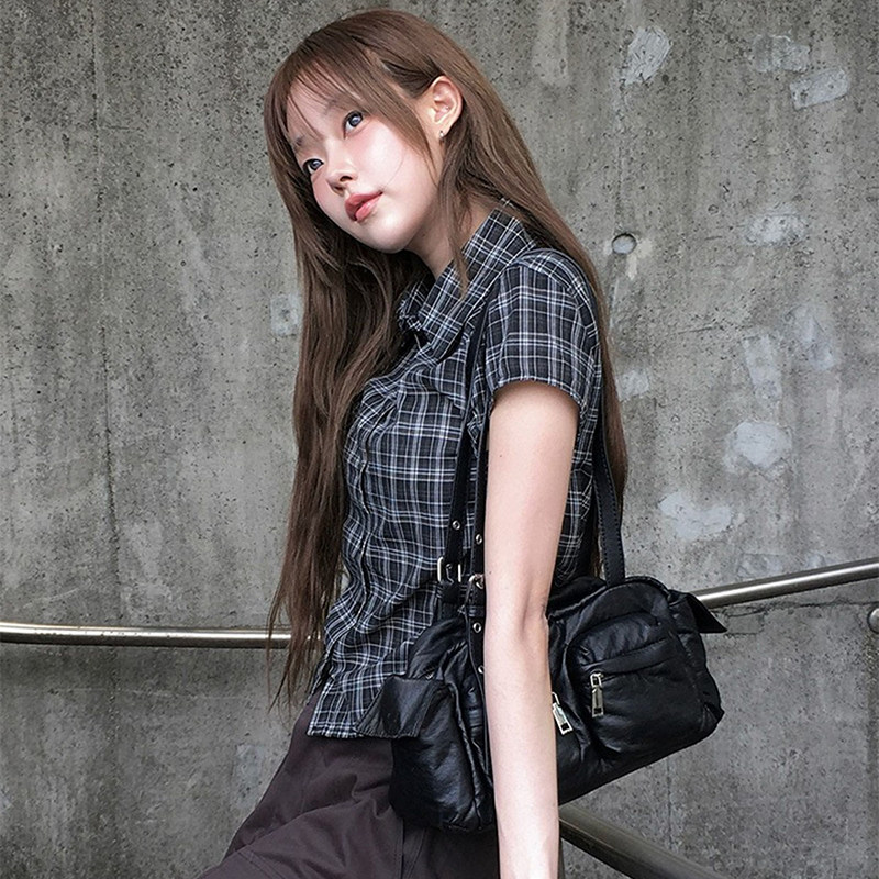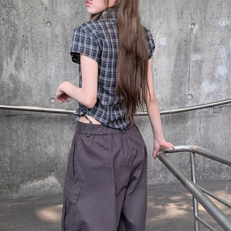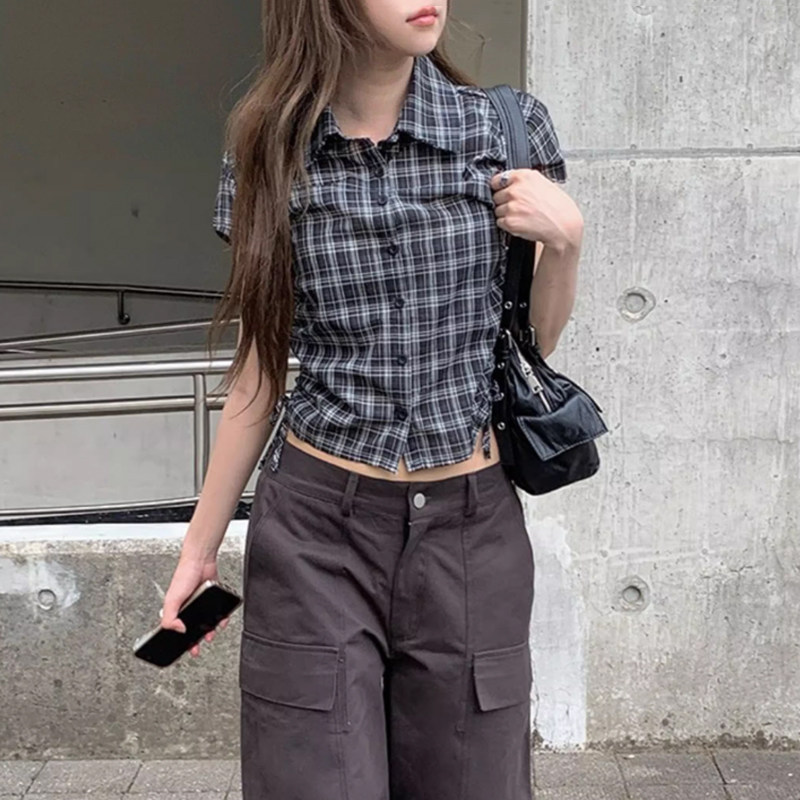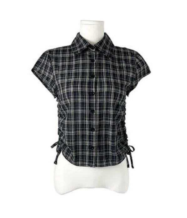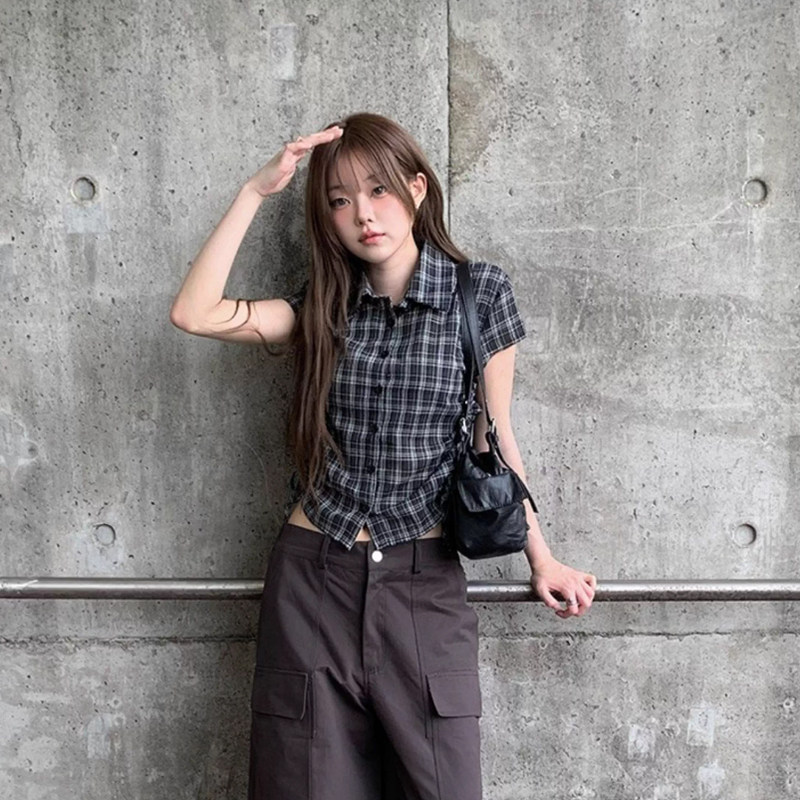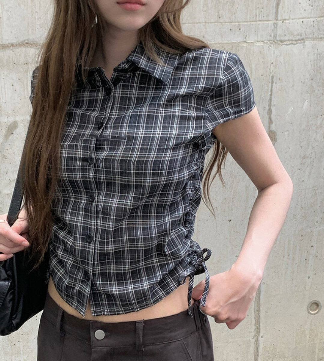 ins 보 주님 섹션 프랑스식 레트로 체크무늬 품격 다용도 민소매 맨위 쇼트 스타일 작은 셔츠