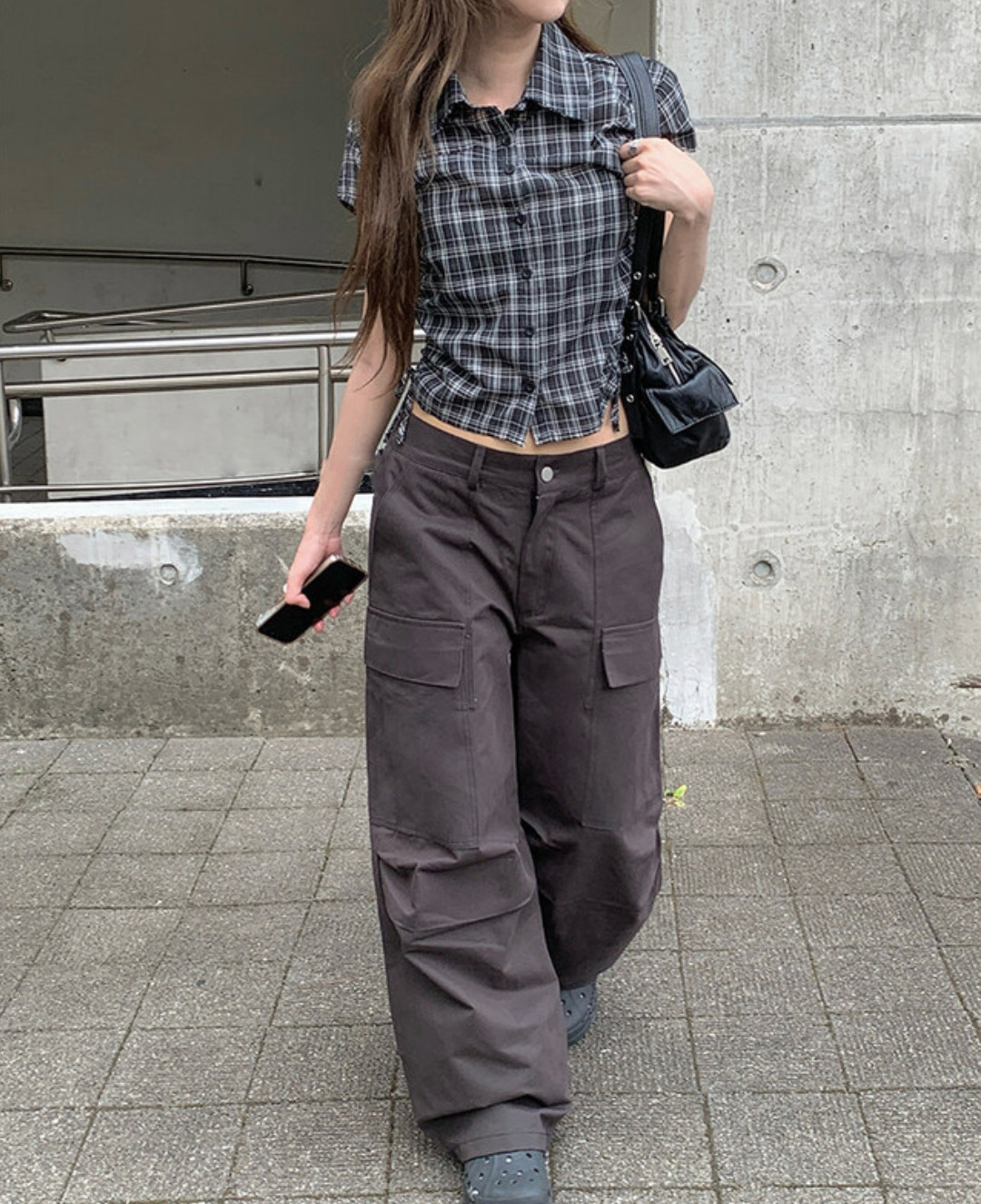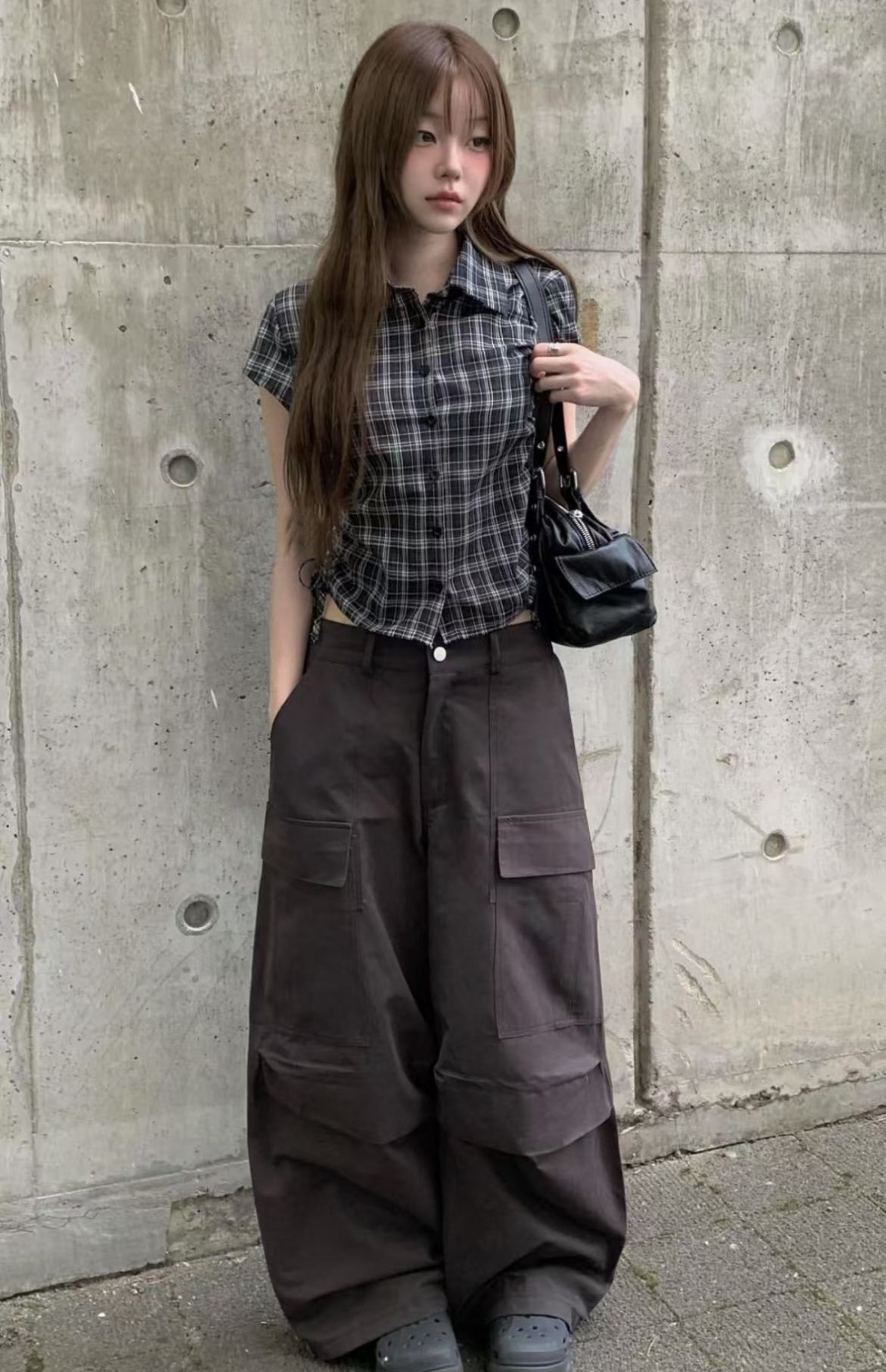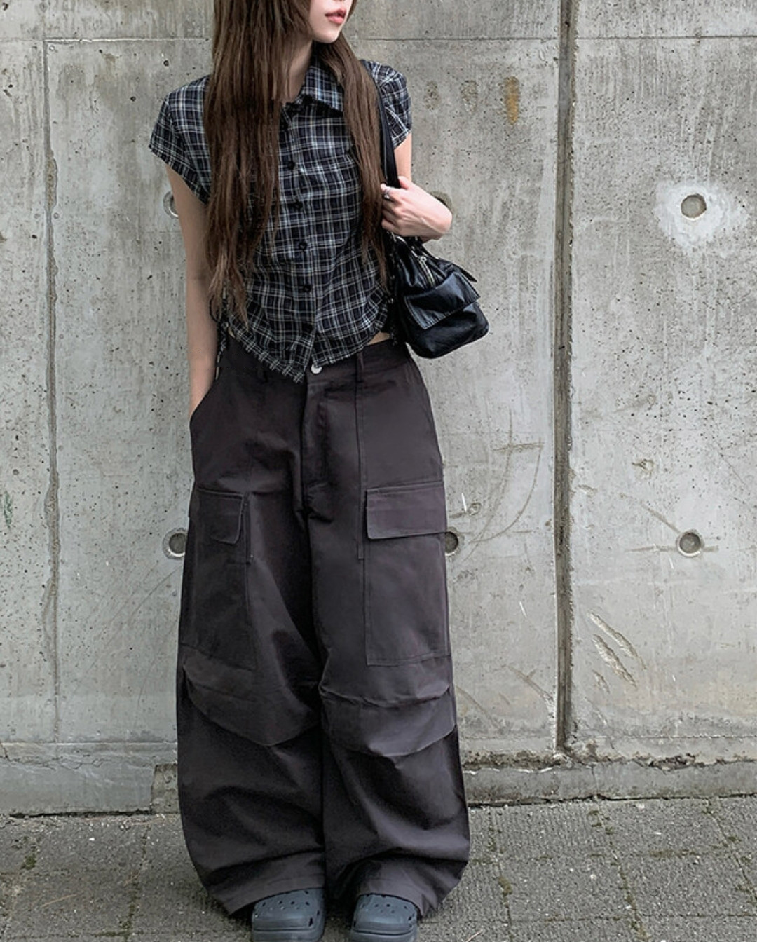 크기 있음 업데이트 작은 대중 미니멀리즘 하이웨이스트 플리츠 디자인 도루 센스 스트레이트 루즈핏 넓은 다리 바닥 청소 캐주얼 바지 긴 바지