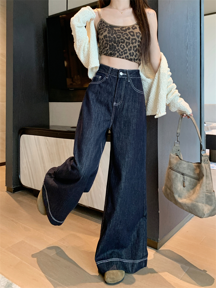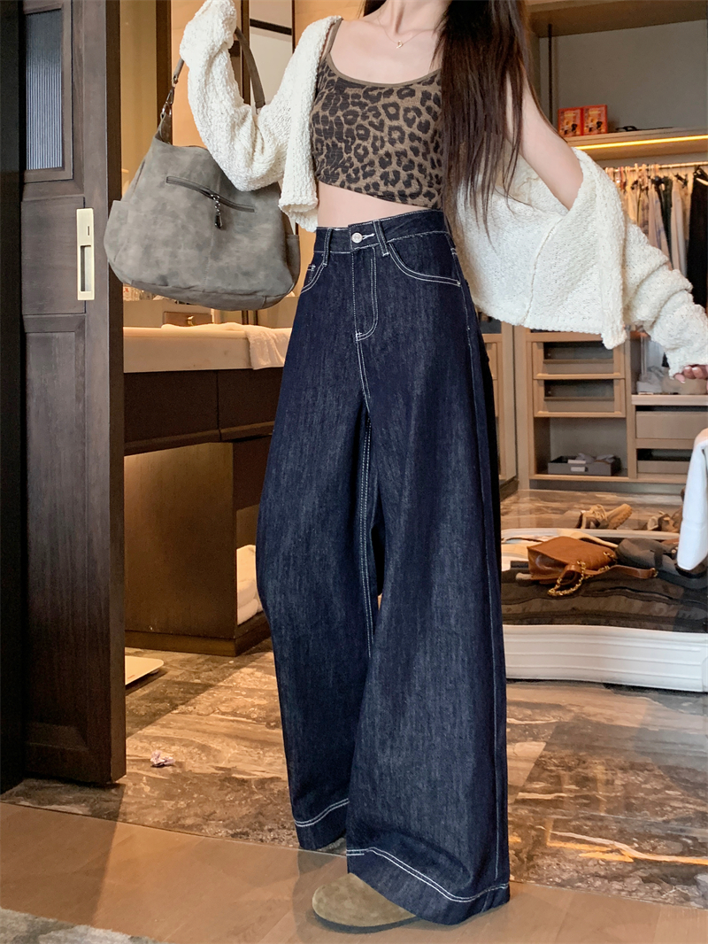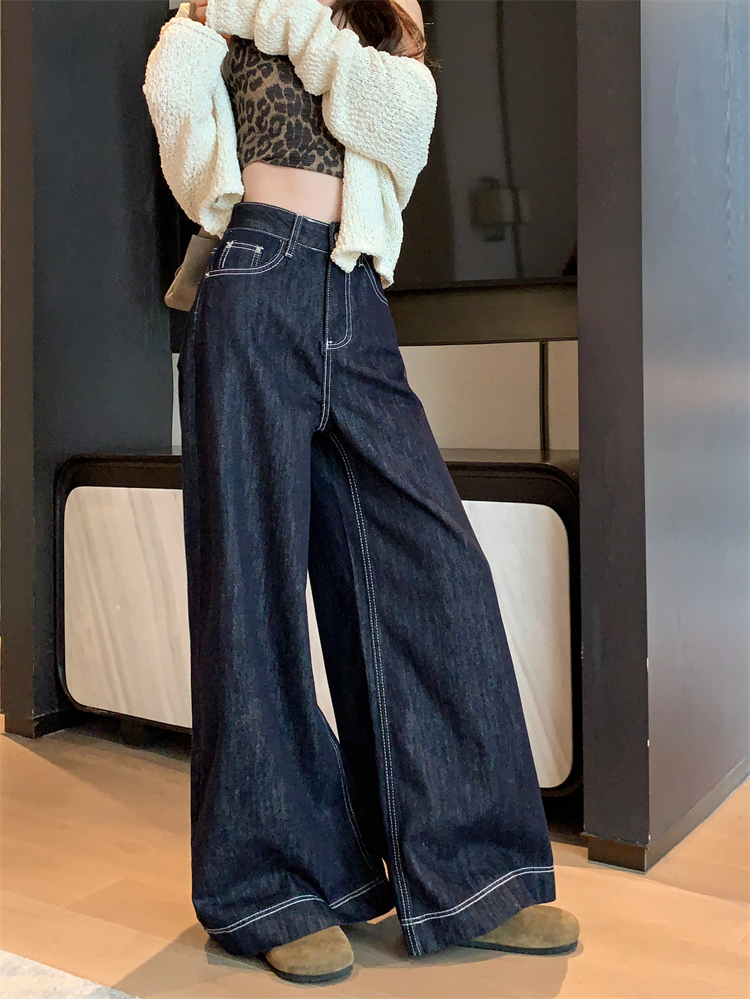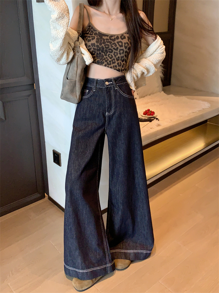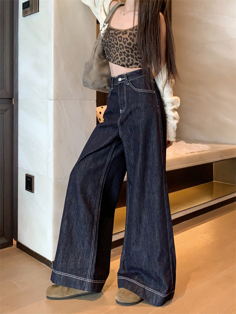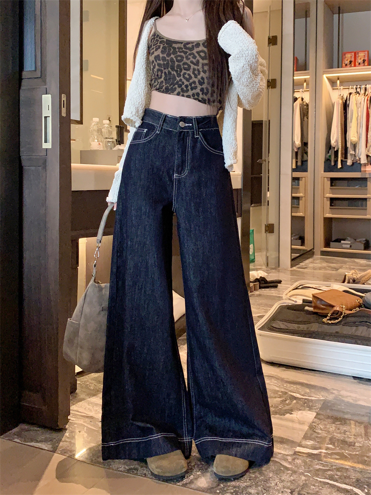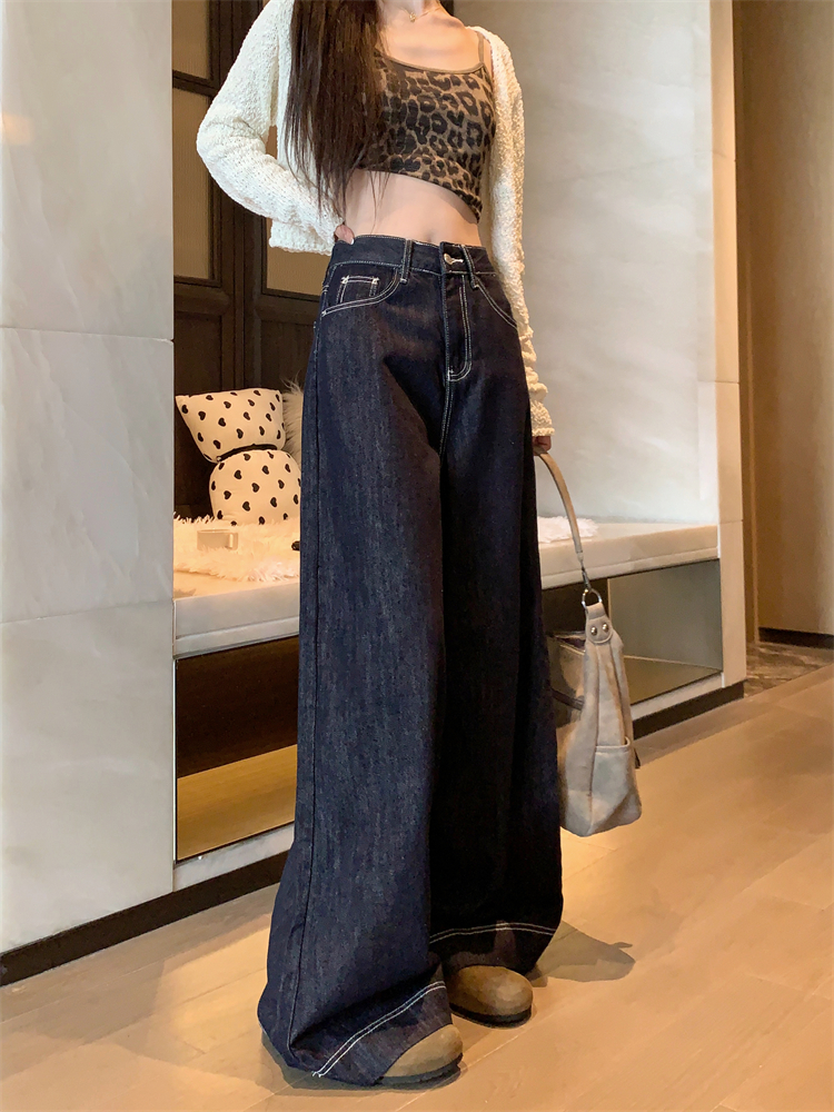 실사 새로운 빅 사이즈 여성 의류 아메리칸 레트로 루즈핏 대 나팔 청바지 핫걸 넓은 다리 스트레이트 바닥 청소 바지
