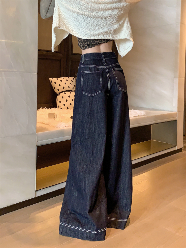 실사 빅 사이즈 여성 의류 주머니 디자인 센스 미니멀리즘 청바지 한국 스타일 스트레이트 도루 센스 바닥 청소 와이드 레그 팬츠