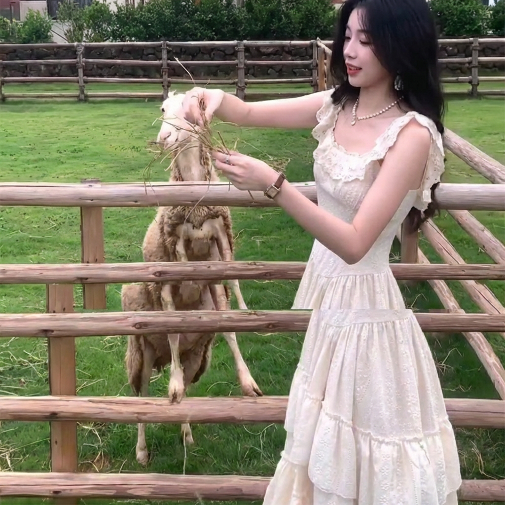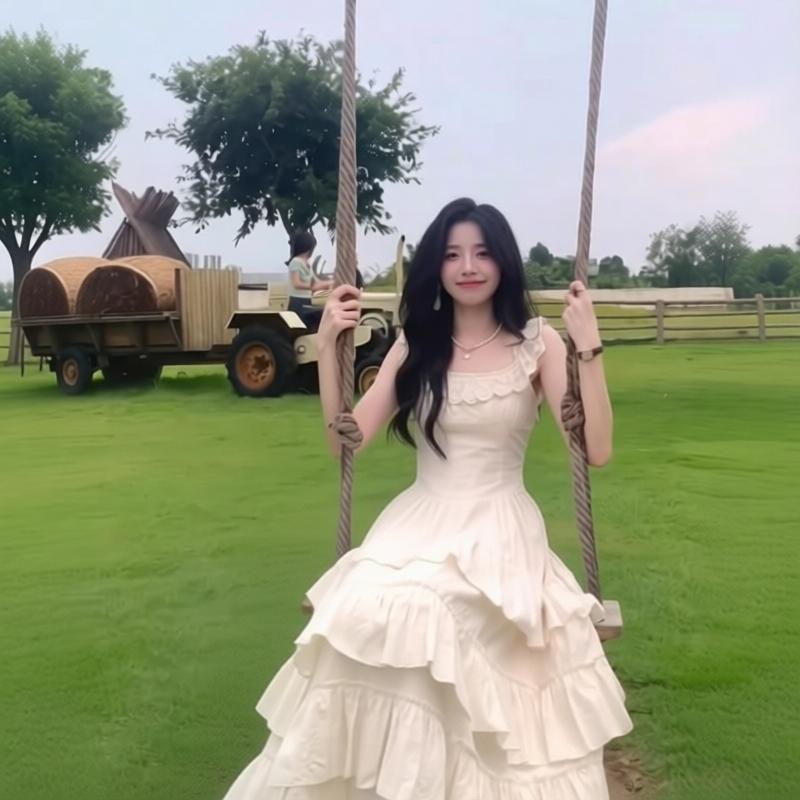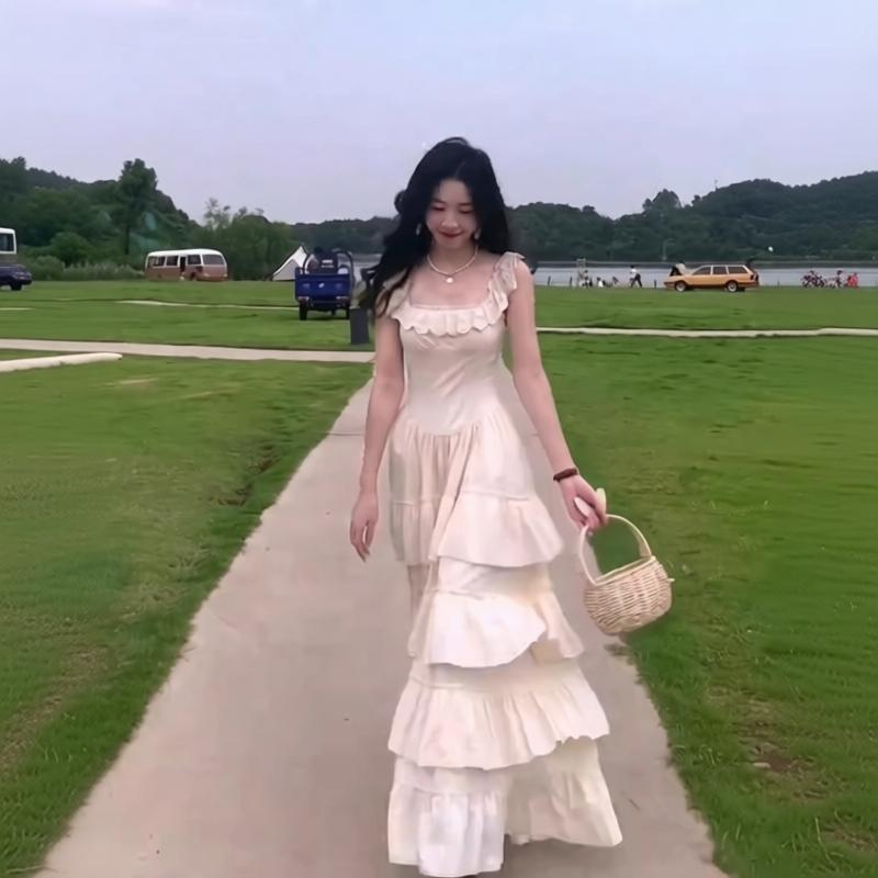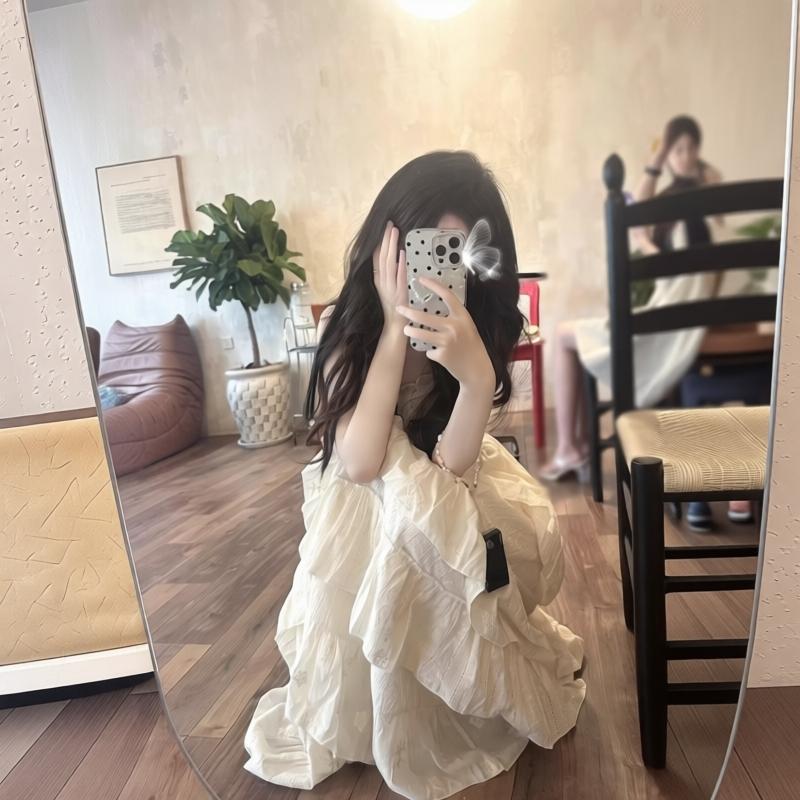 cloudsweet 흰 구름 달콤한 Breeze 향수 품격 행침 목 쉬폰 여성 드레스 플리츠 스커트 민소매 롱 스커트