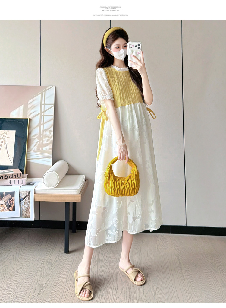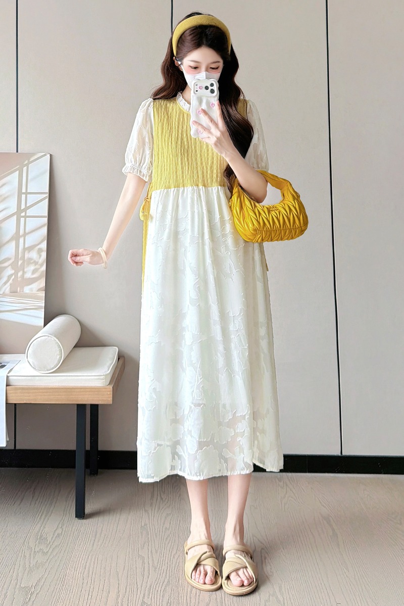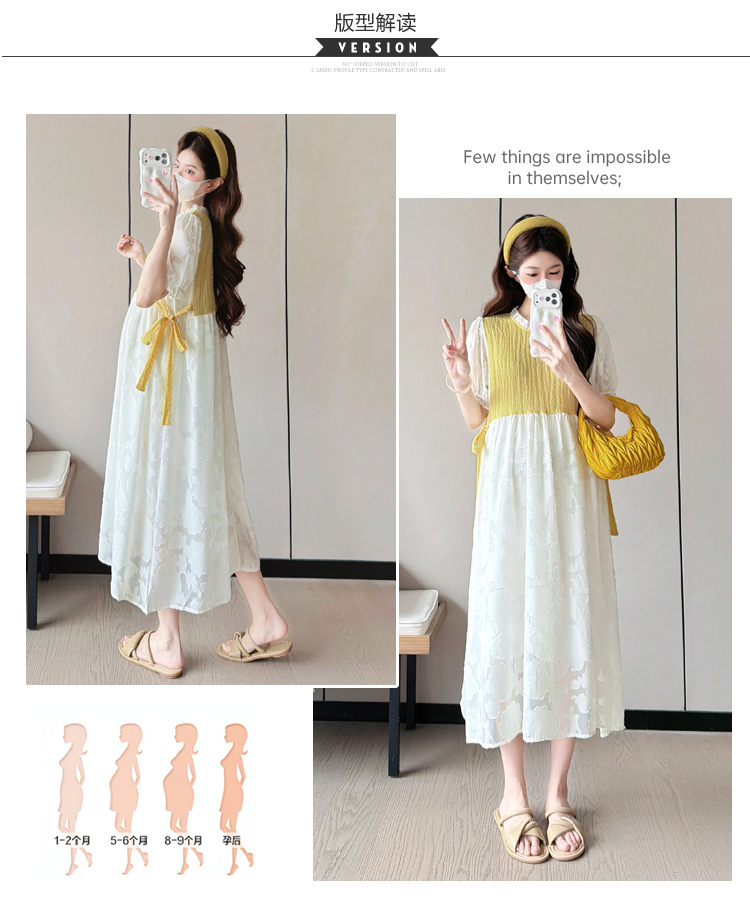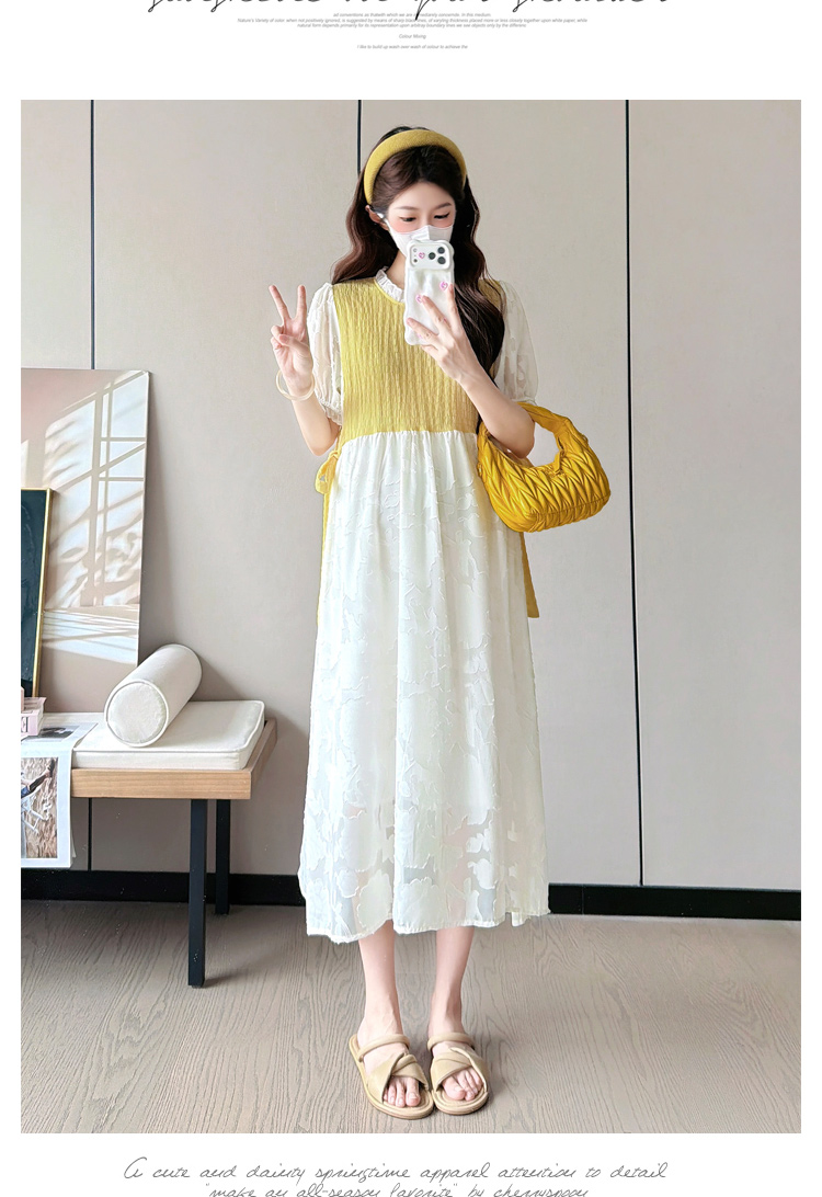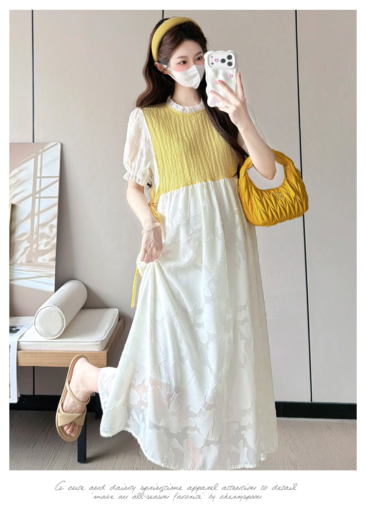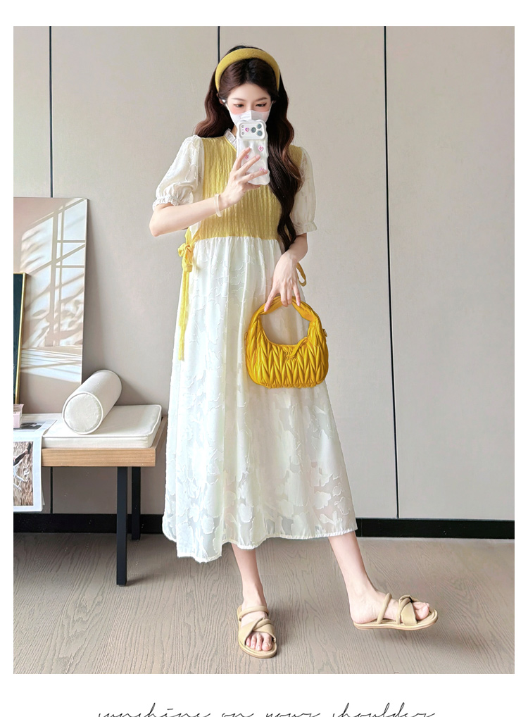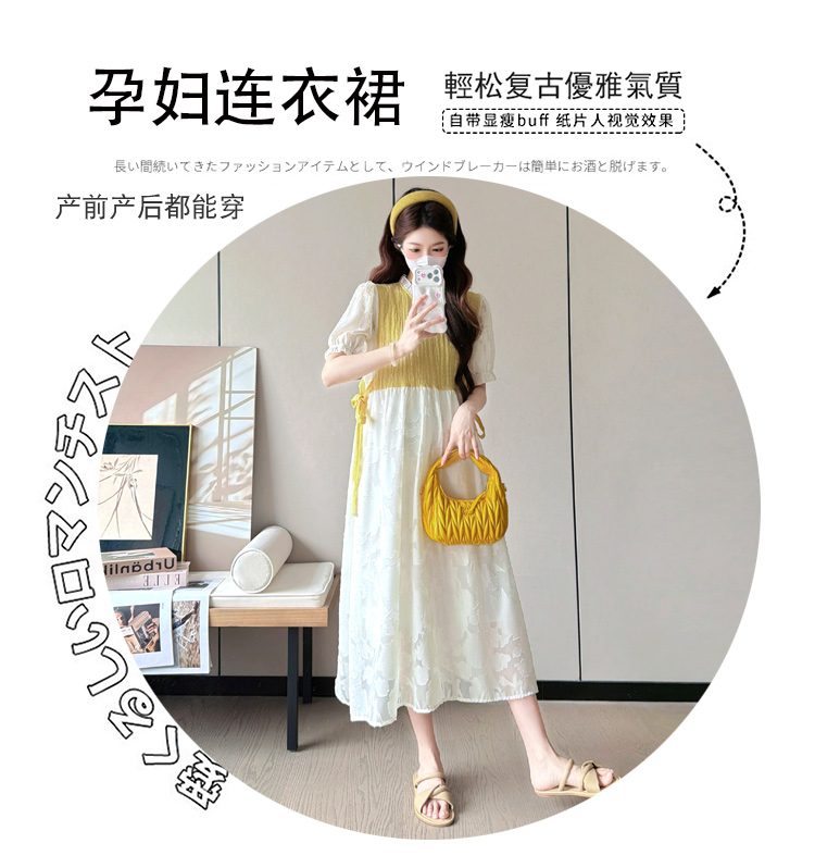 실사 2026 출산 착용 여름 새로운 패치워크 색상 임산부 드레스