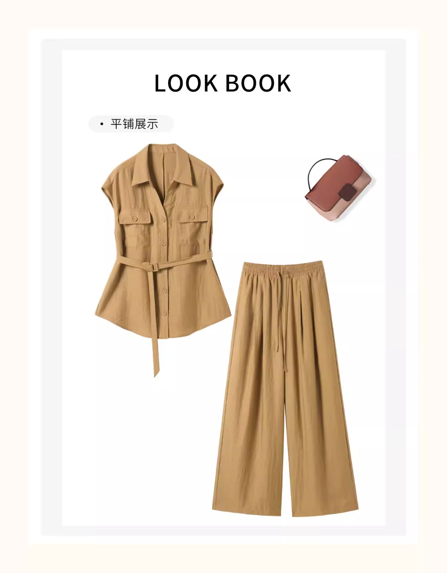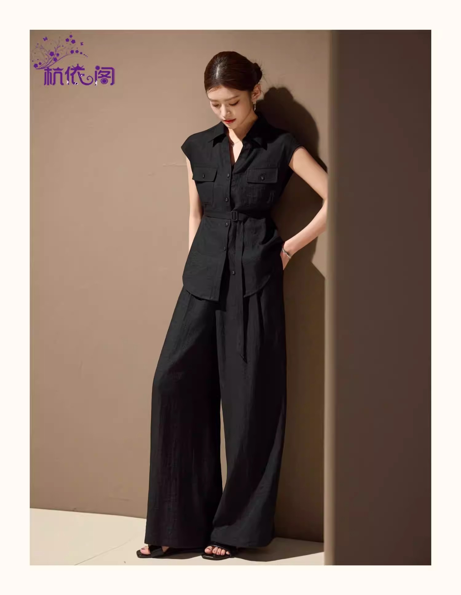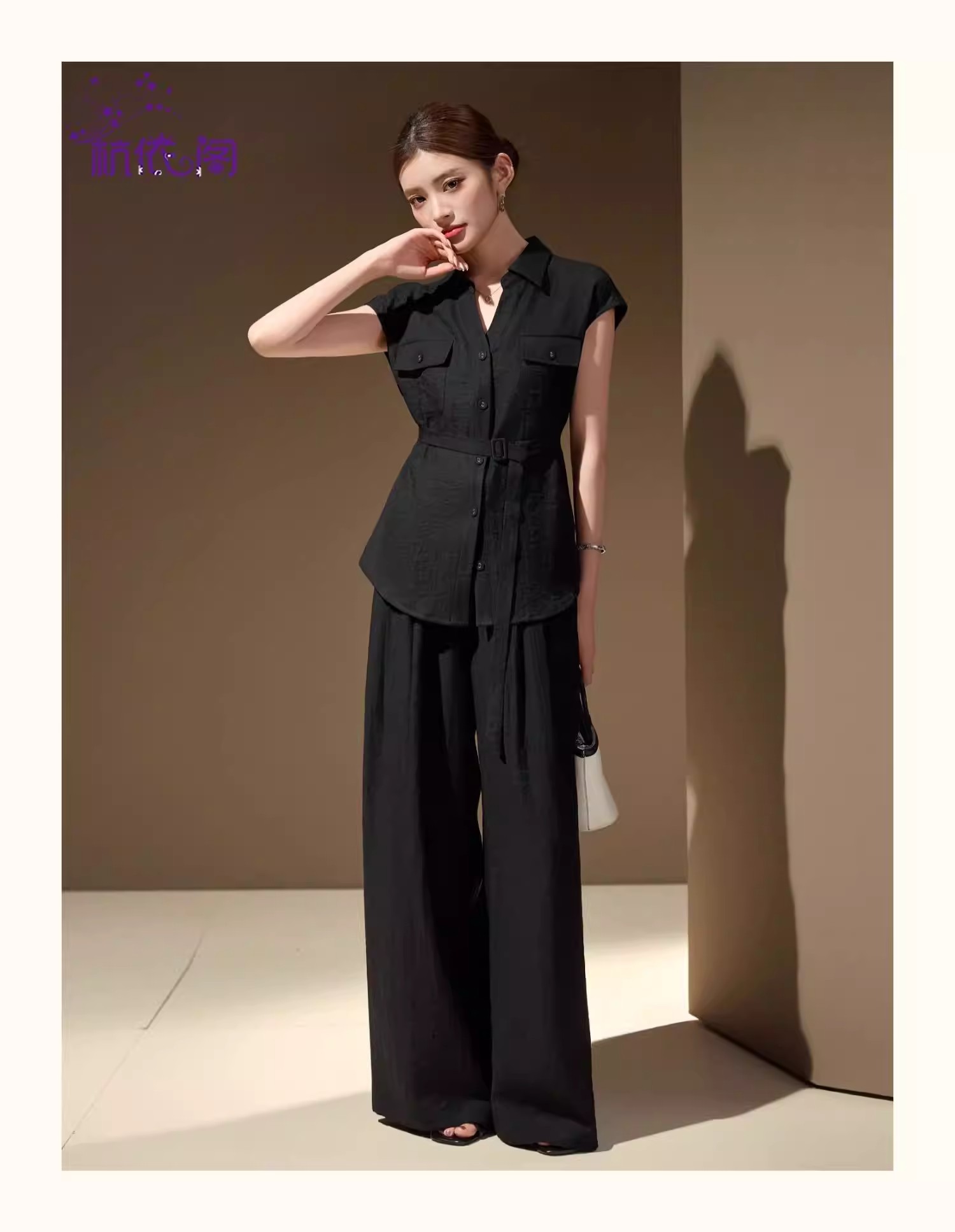 민소매 셔츠 와이드 레그 팬츠 두 조각 여성 세트 여름 2026 새로운 패션 캐주얼 품격 외국 가스 연령 감소 착용 가져 가라. 세트