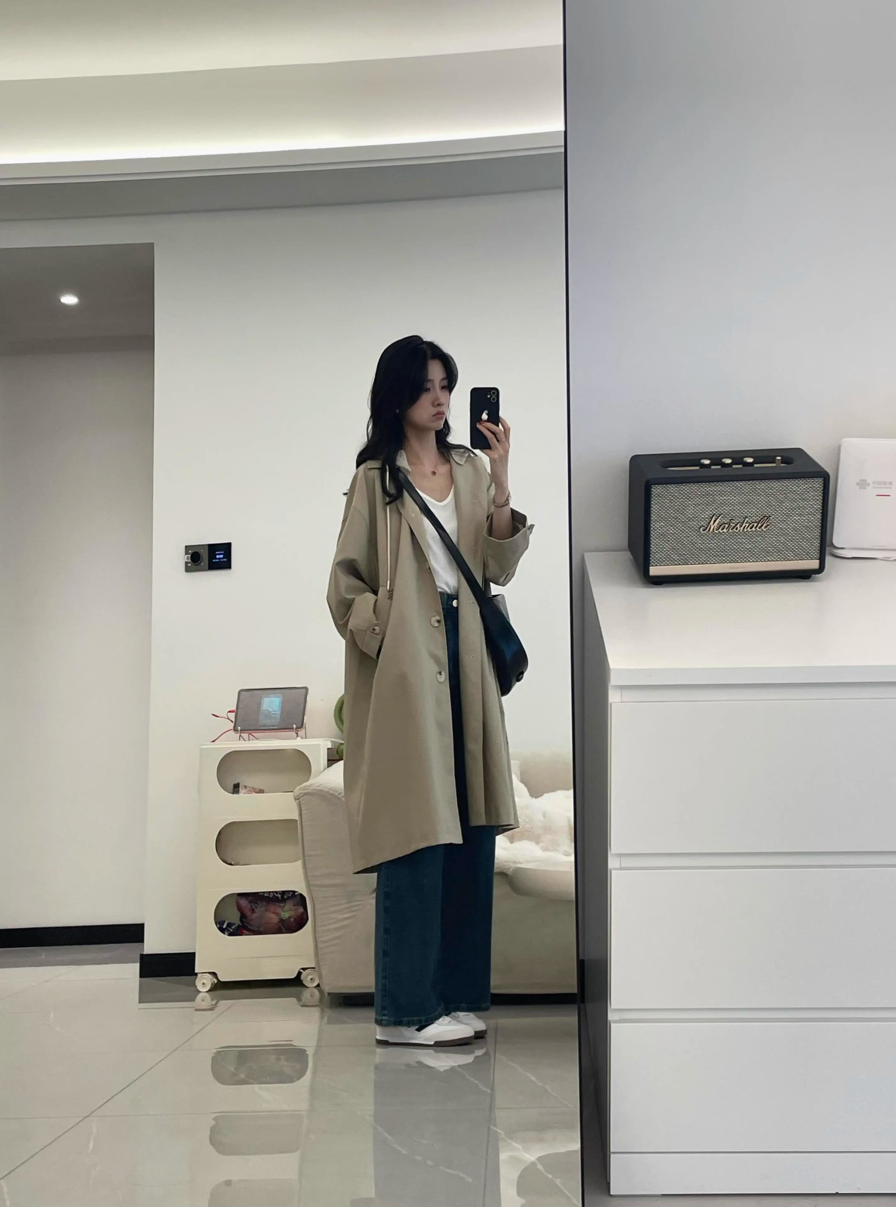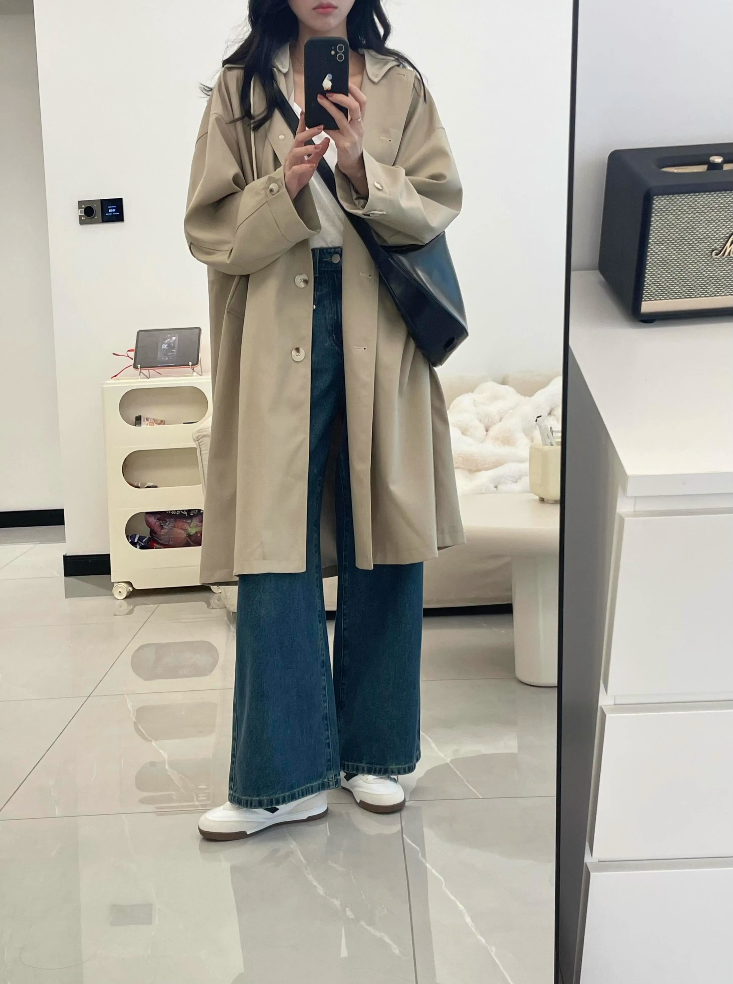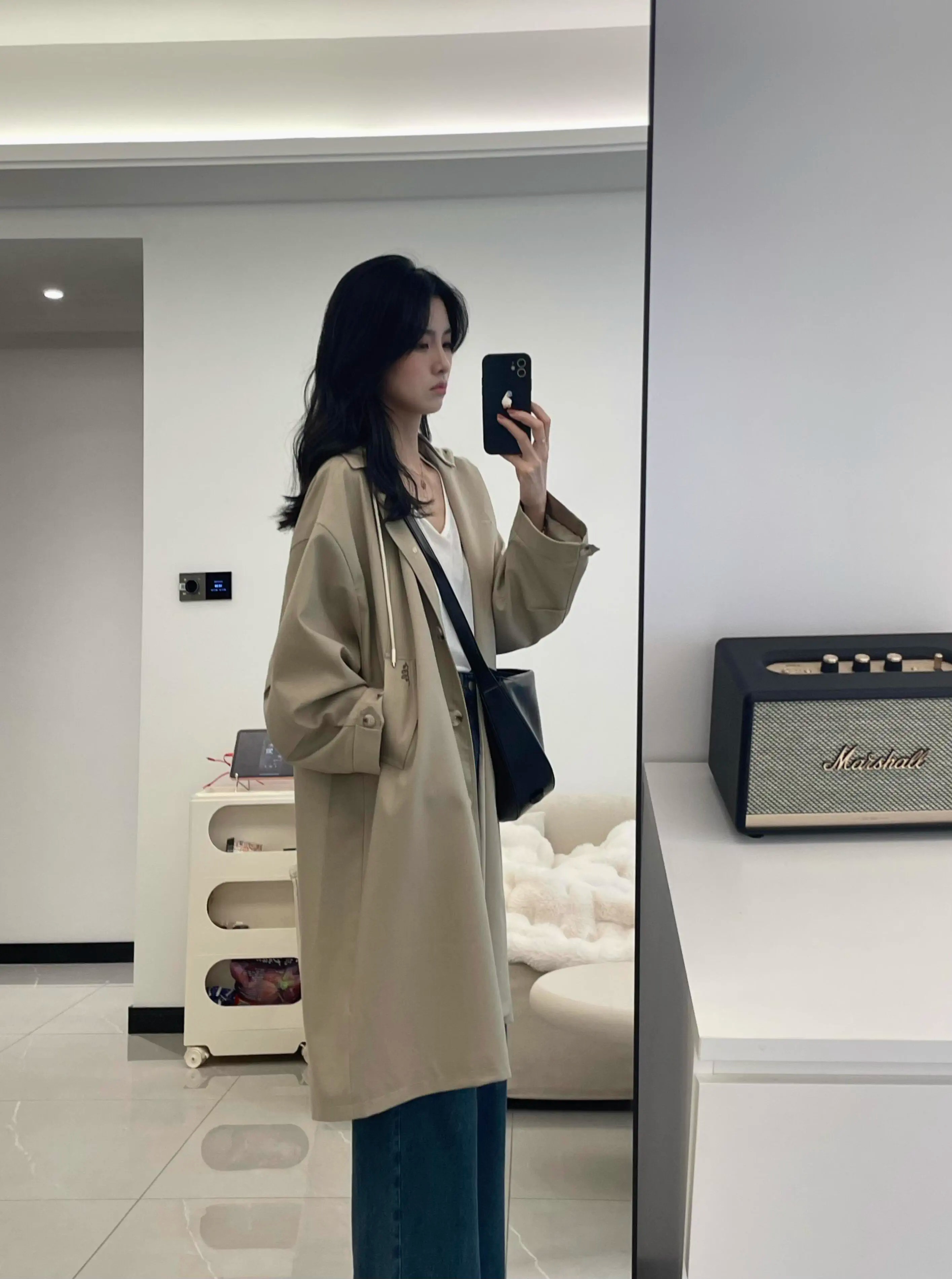 카키 색 중간 길이 후드 바람막이 여성 코트 봄 드레스 빅 사이즈 지방 mm 고급 루즈핏 다용도 영국식 바람 코트