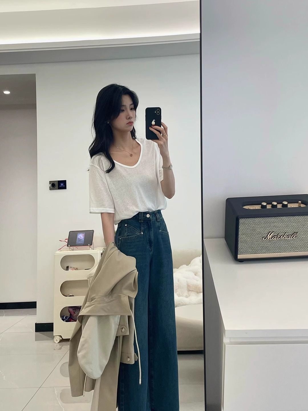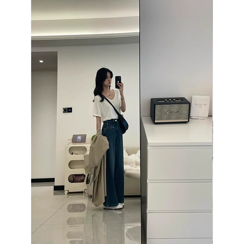 한국 스타일 미니멀리즘 화이트 루즈핏 아니요 막대기 다리 넓은 다리 다용도 청바지 여성 2026 작은 대중 외출용 출퇴근 섹션 바지