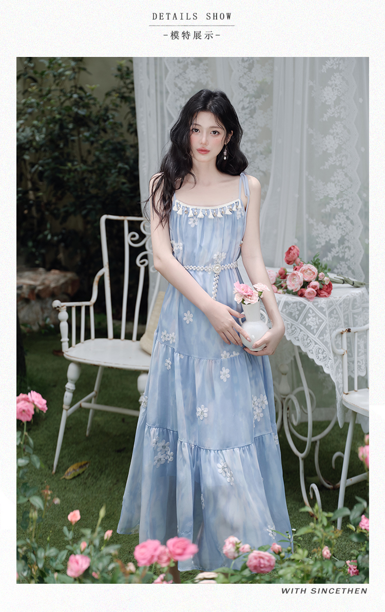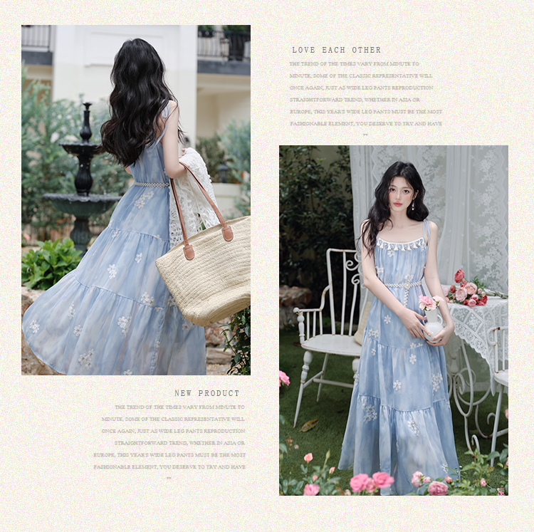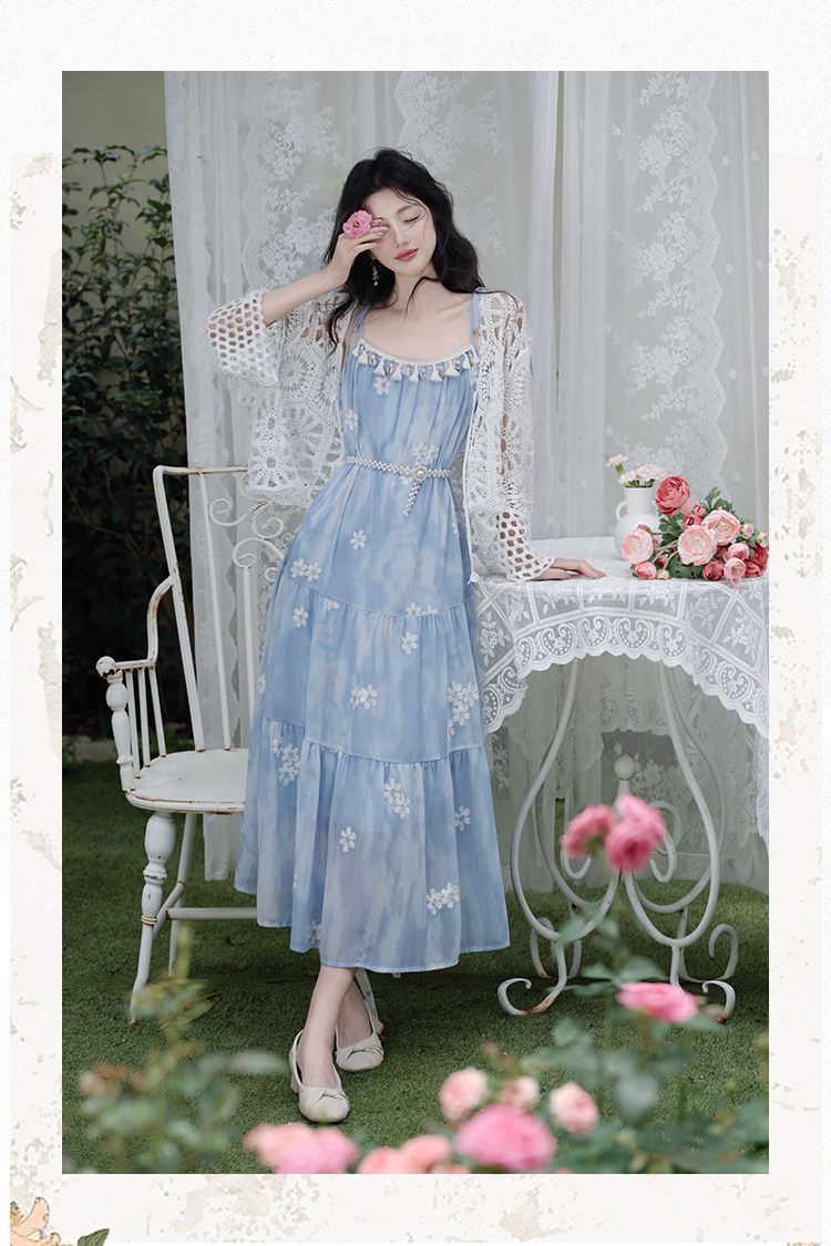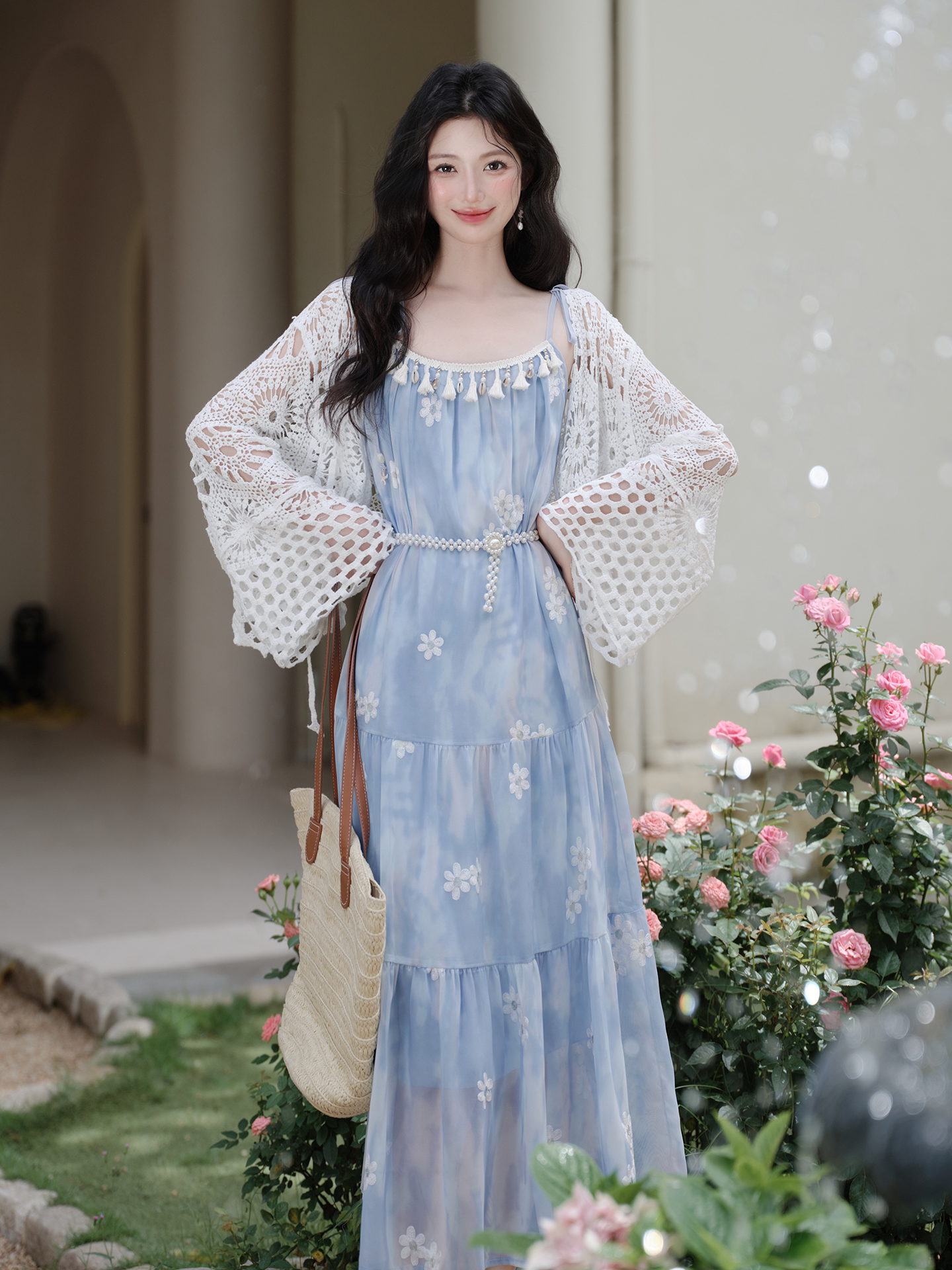 꽃 객실 주리예 줄려엽 여름 새로운 부드러운 품격 홀로우 아웃 레이스 민소매 쇼트 스타일 드레스