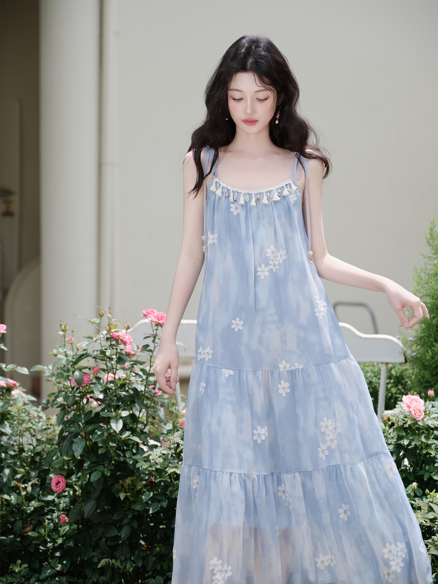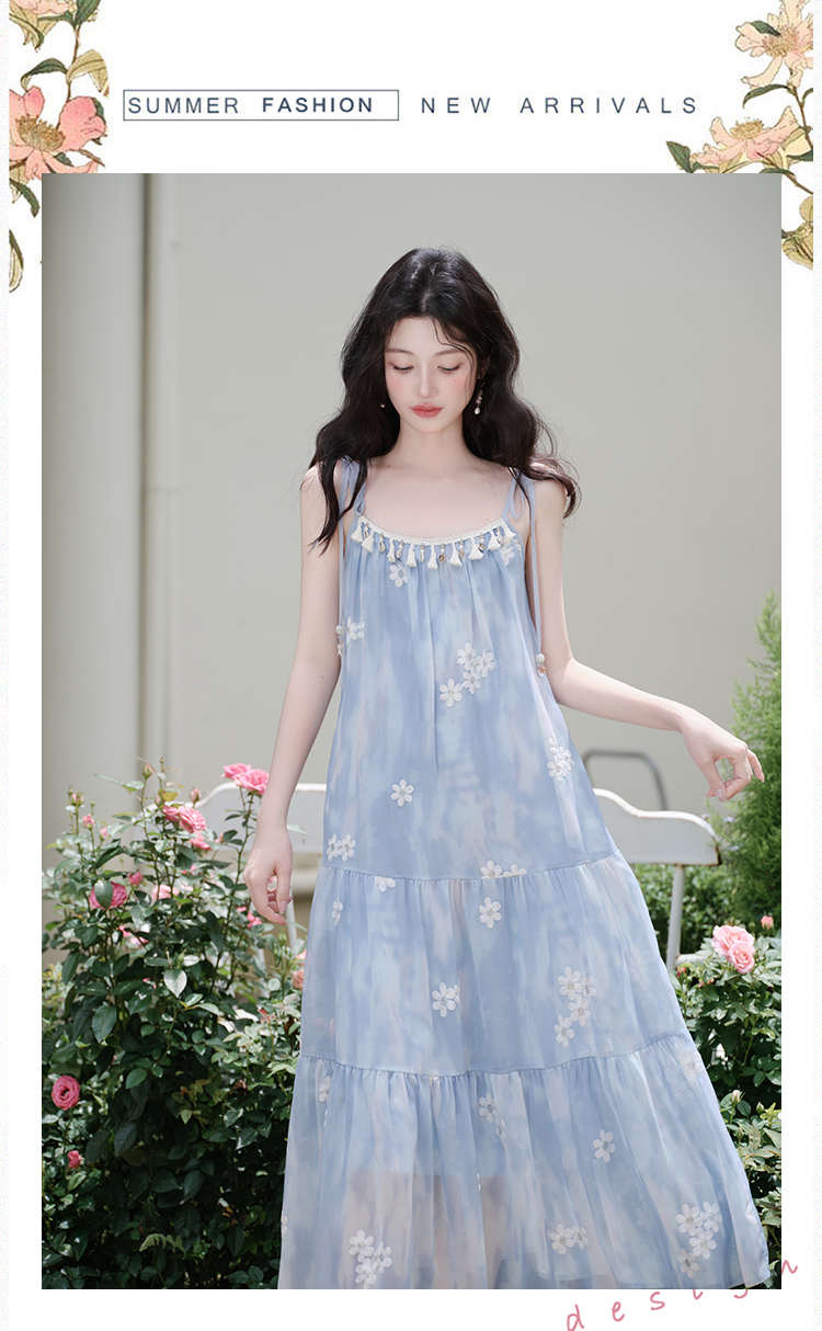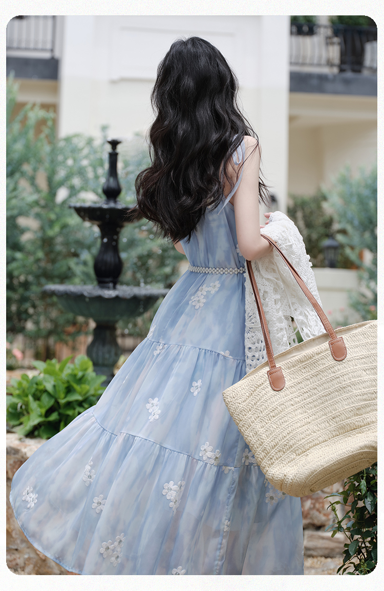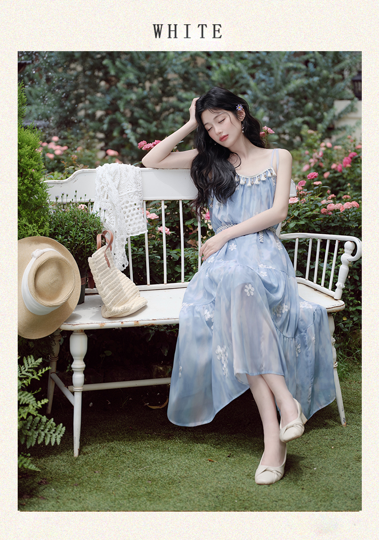 꽃 객실 주리예 줄려엽 여름 새로운 부드러운 품격 홀로우 아웃 레이스 민소매 쇼트 스타일 드레스