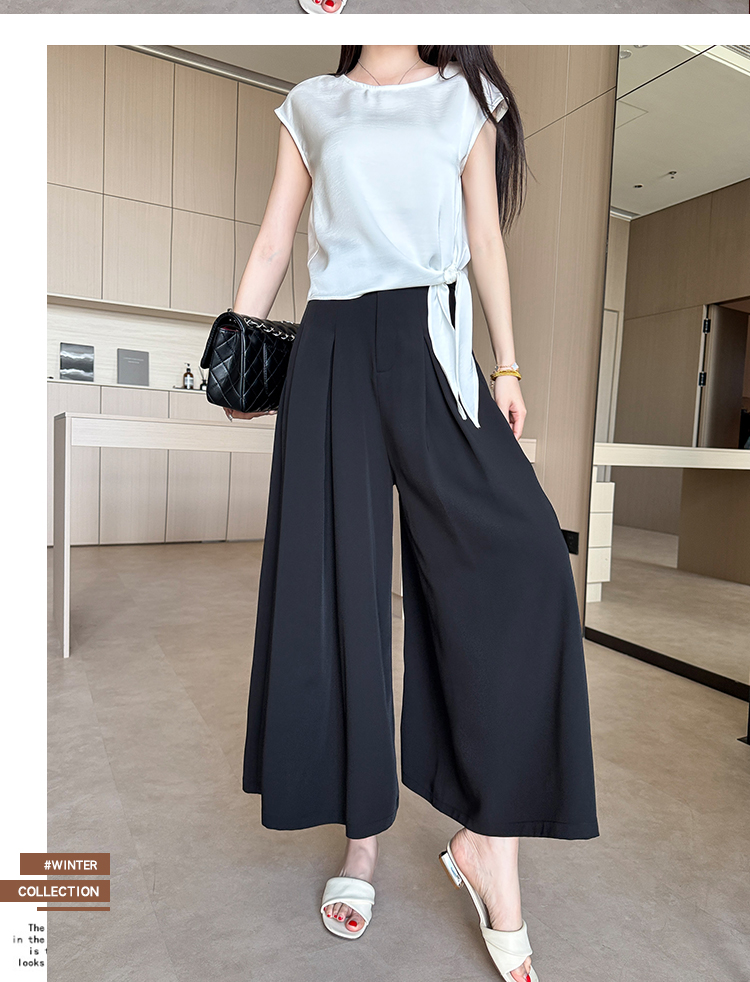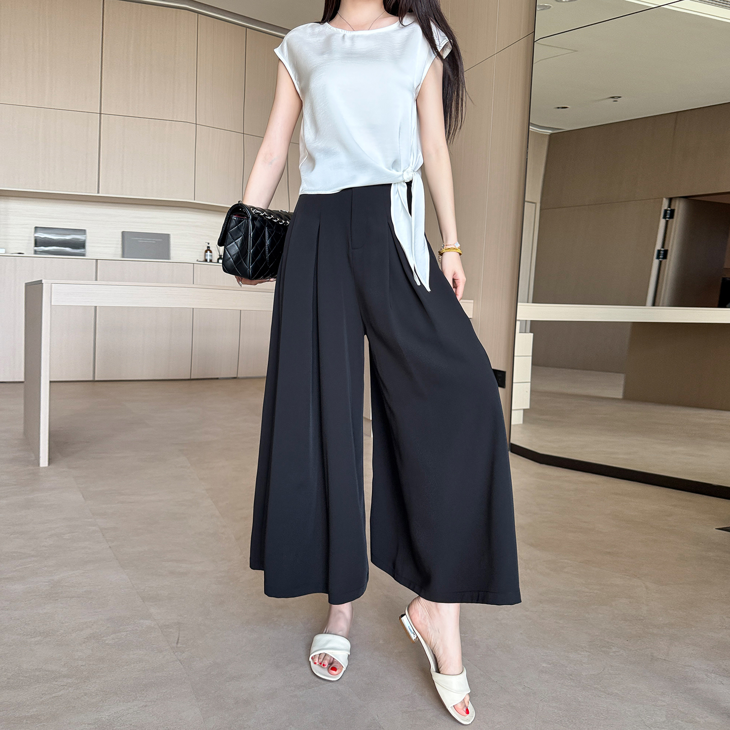 작은 키 느슨함 센스 베스트 세트 여성 2026 여름 새로운 하이웨이스트 넓은 다리 9 포인트 긴 바지