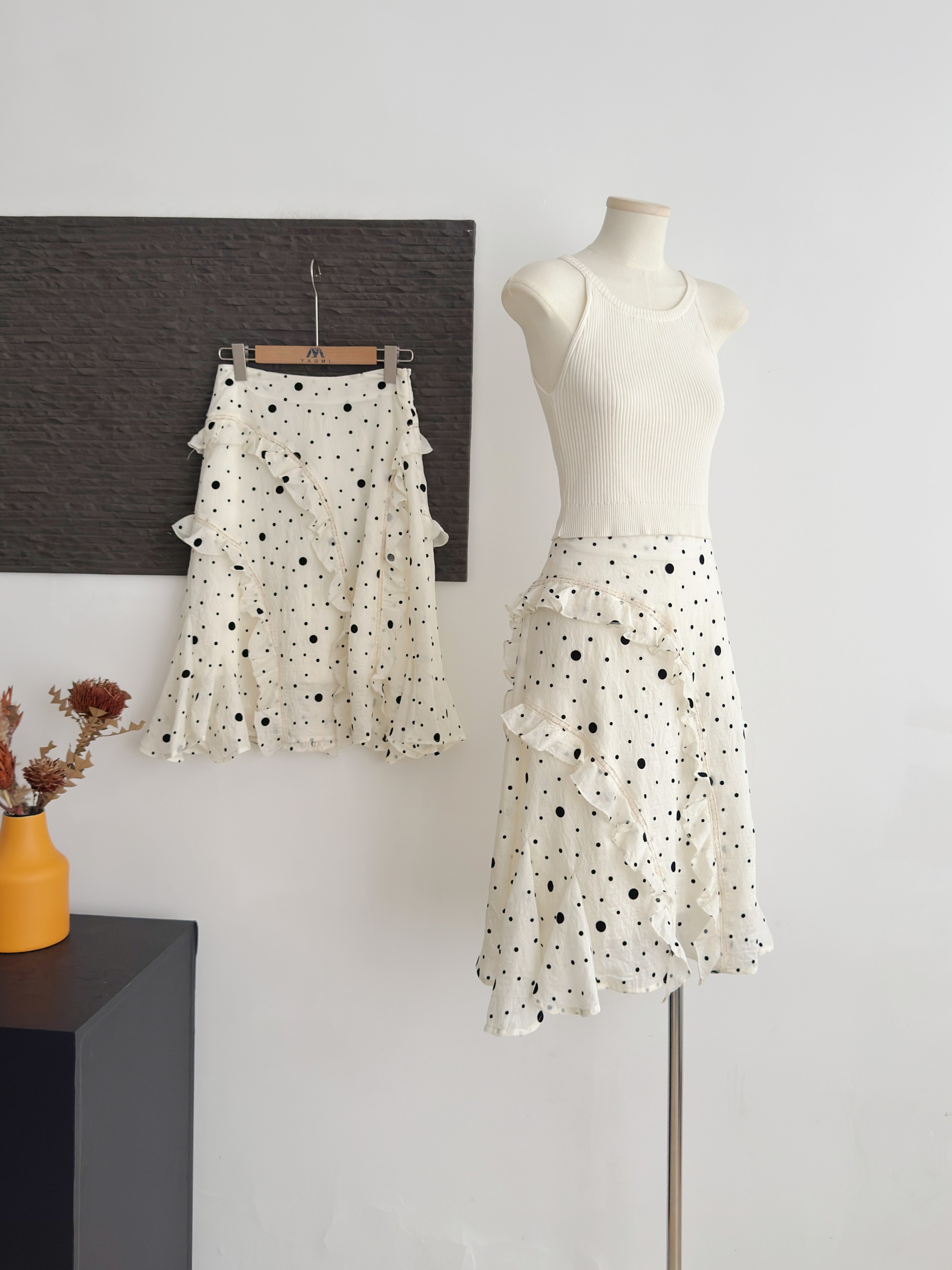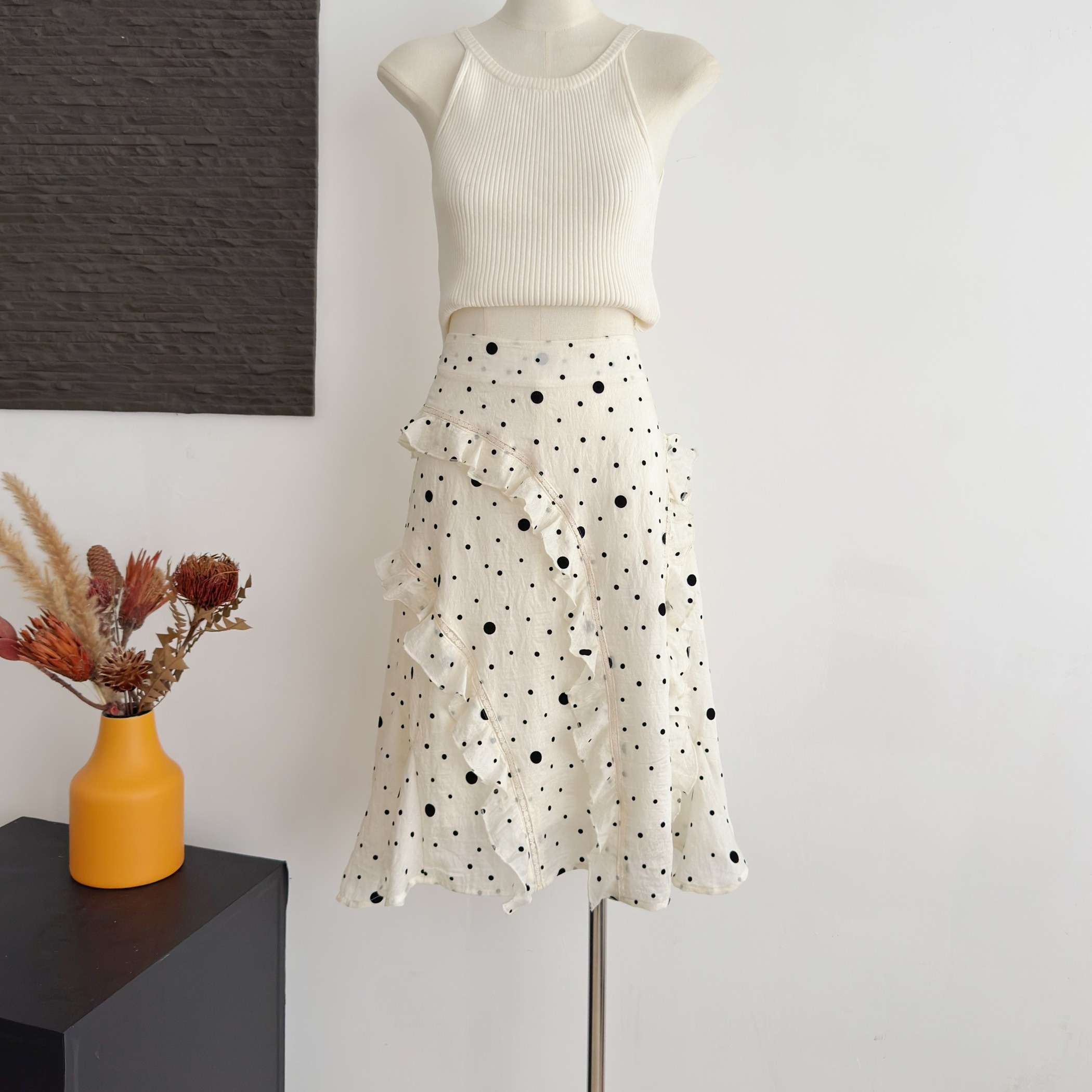 기러기 돌아 가기 높음 그램 무거운 도루 센스 반신 스커트 여성 봄 여름 레트로 비스듬한 자르다 품격 한 마디 반 스커트