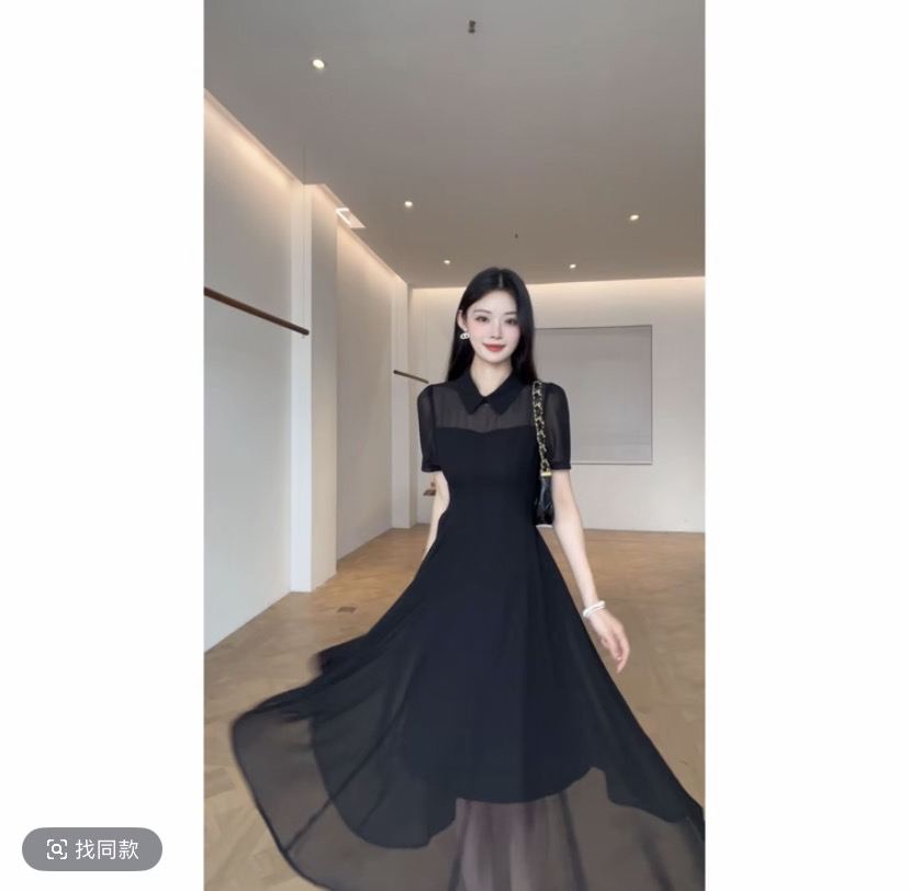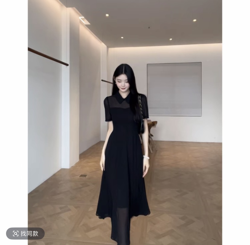 2026 여름 레트로 반팔 검정색 작은 검은 드레스 슬림해 보이는 품격 패션 디자인 센스 드레스 c0224