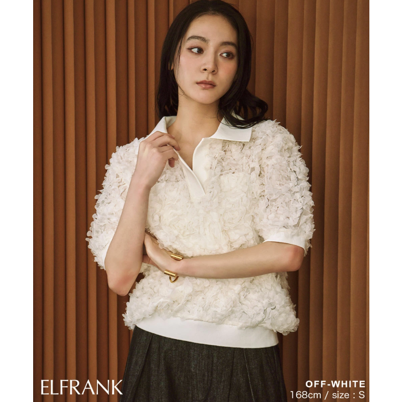 일본식 고급 센스 3 차원 꽃잎 POLO 칼라 맨위 거품 소매 루즈핏 니트 스웨터 부드러운 바람 다용도 슬림해 보이는
