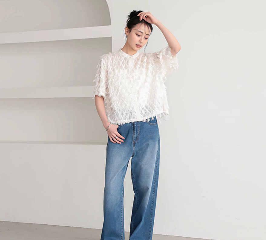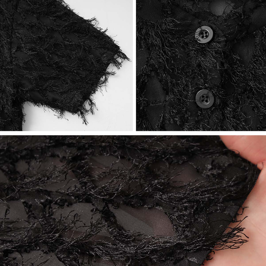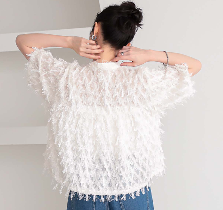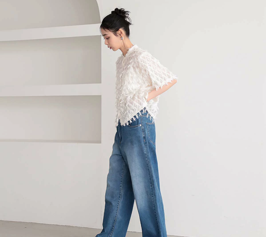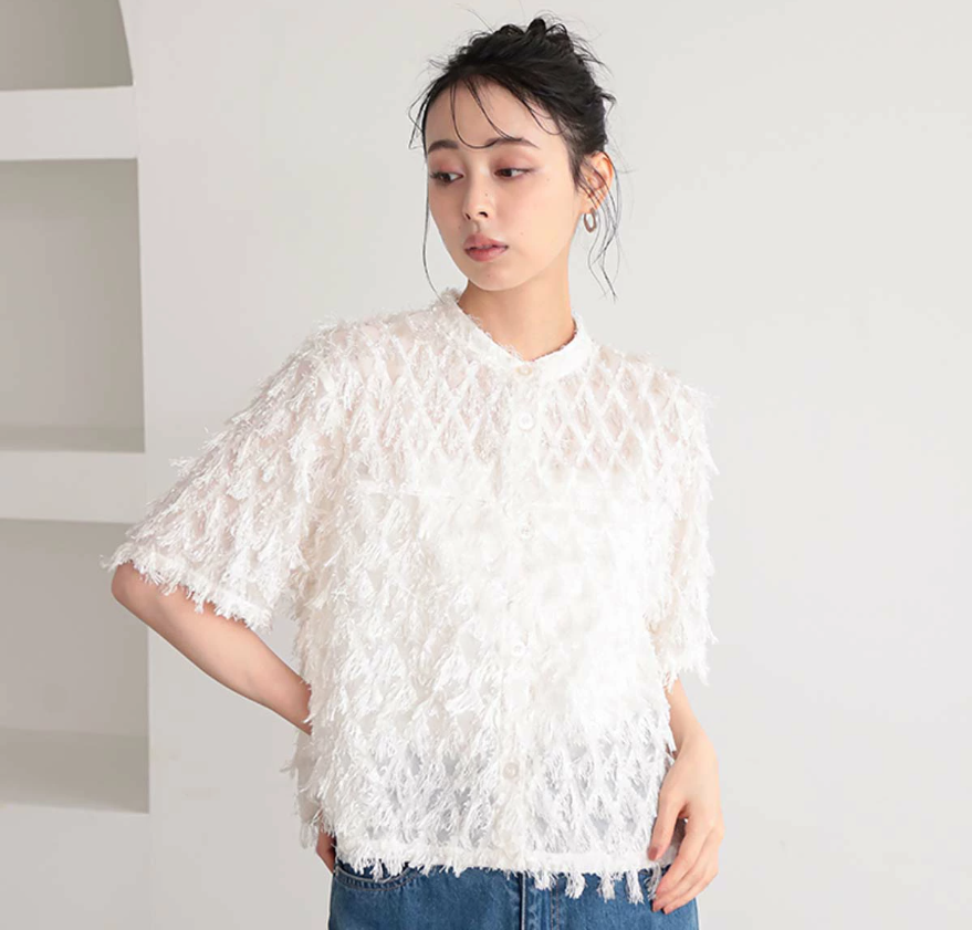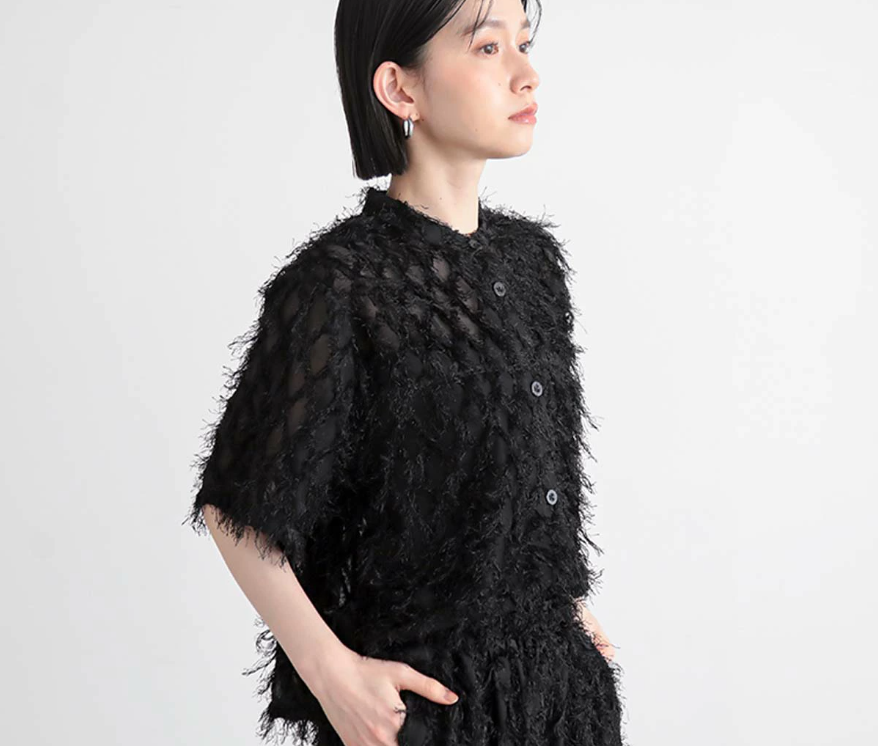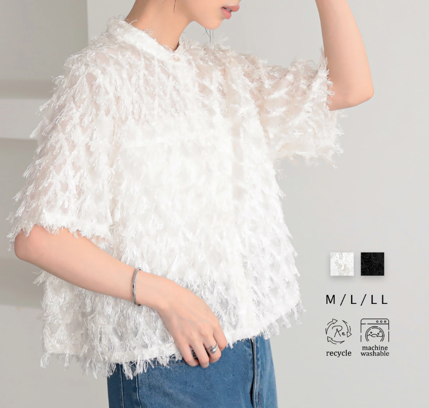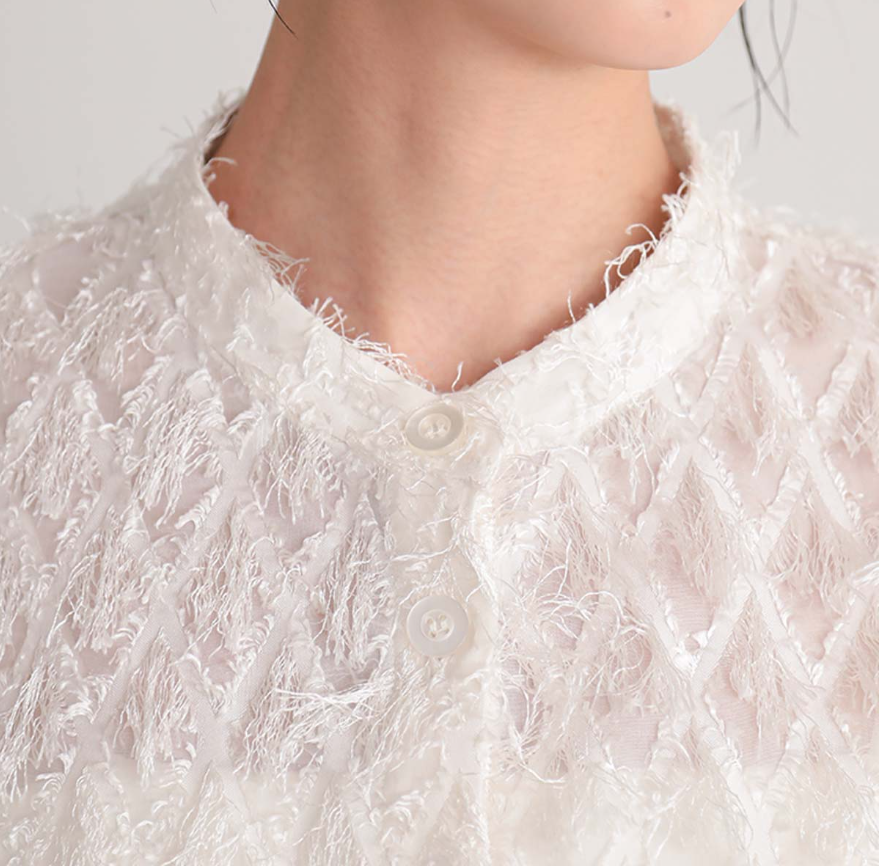 일본식 2026 새로운 깃털 술 하프 ~을 통해 스탠드 칼라 쇼트 스타일 셔츠 부드러운 분위기 센스