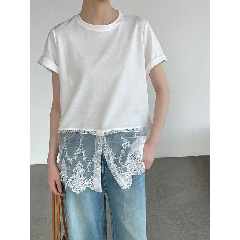 국경 간 일본식 디자인 센스 레이스 조각 반팔 맨위 여성 2026 여름 새로운 다용도 티셔츠